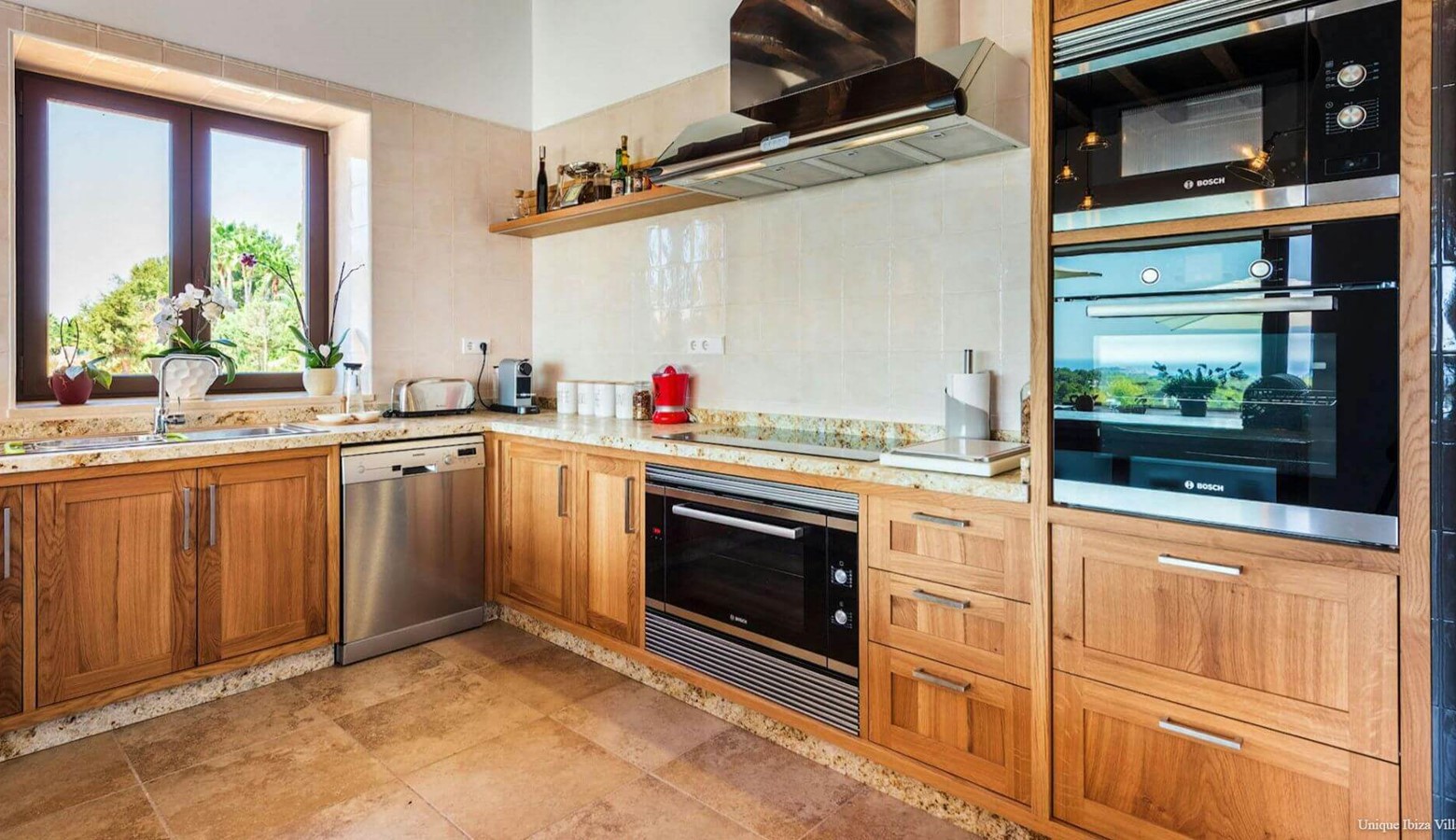 Beautiful fully equipped modern kitchen with, air conditioning and (mostly) Bosch appliances, wooden ceilings, TV and dining table for 12.