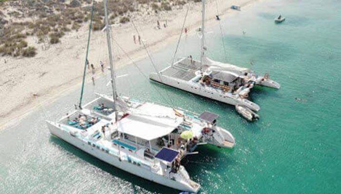 For the large catamaran you can choose a 4.5 or 5.5 hour sunset cruise, 5 or 6 hour day cruise or 8.5 or 10 hour all day cruise around the coastline of Ibiza or to Formentera