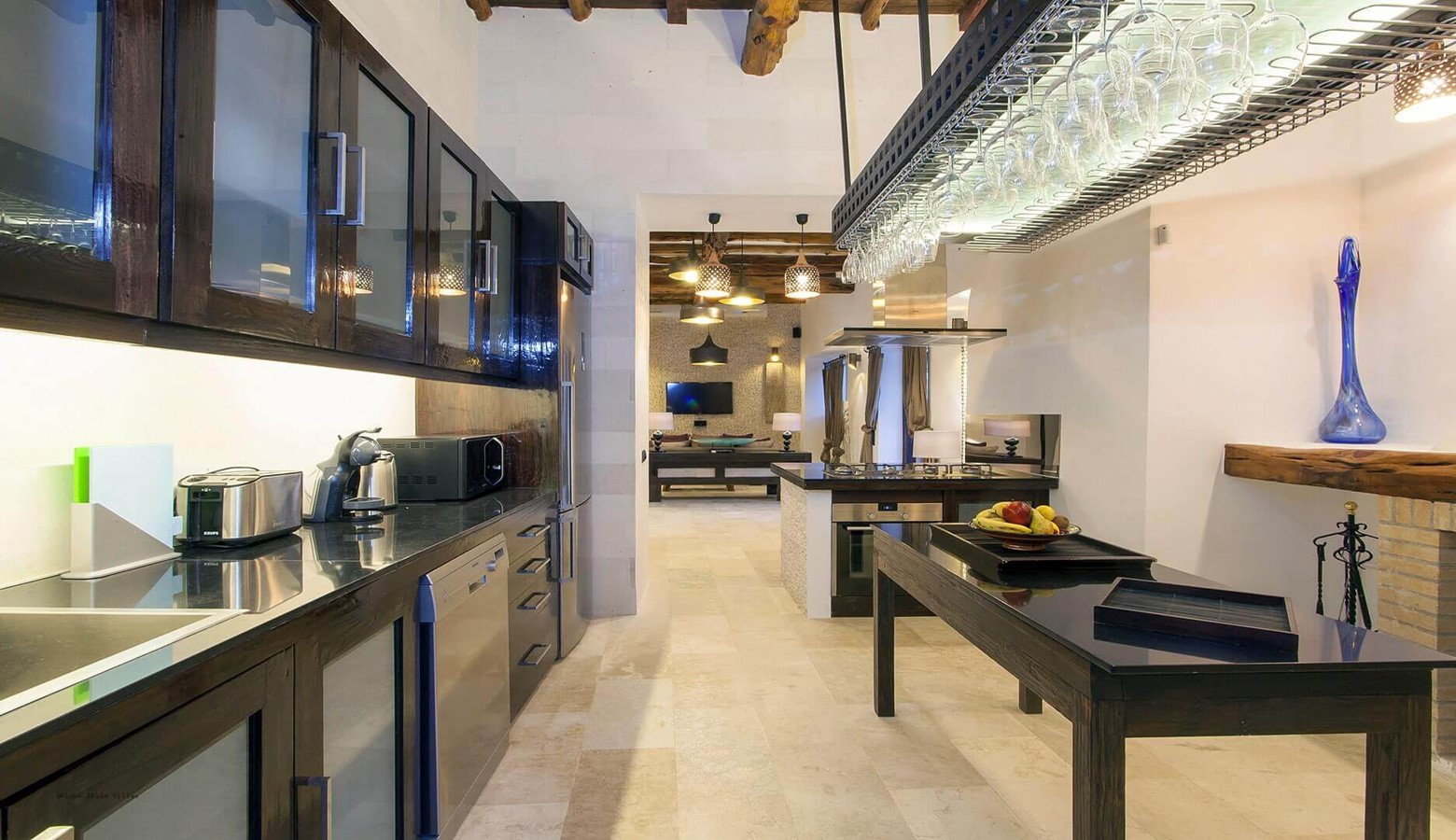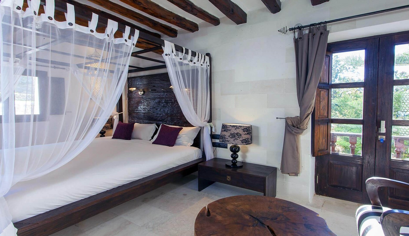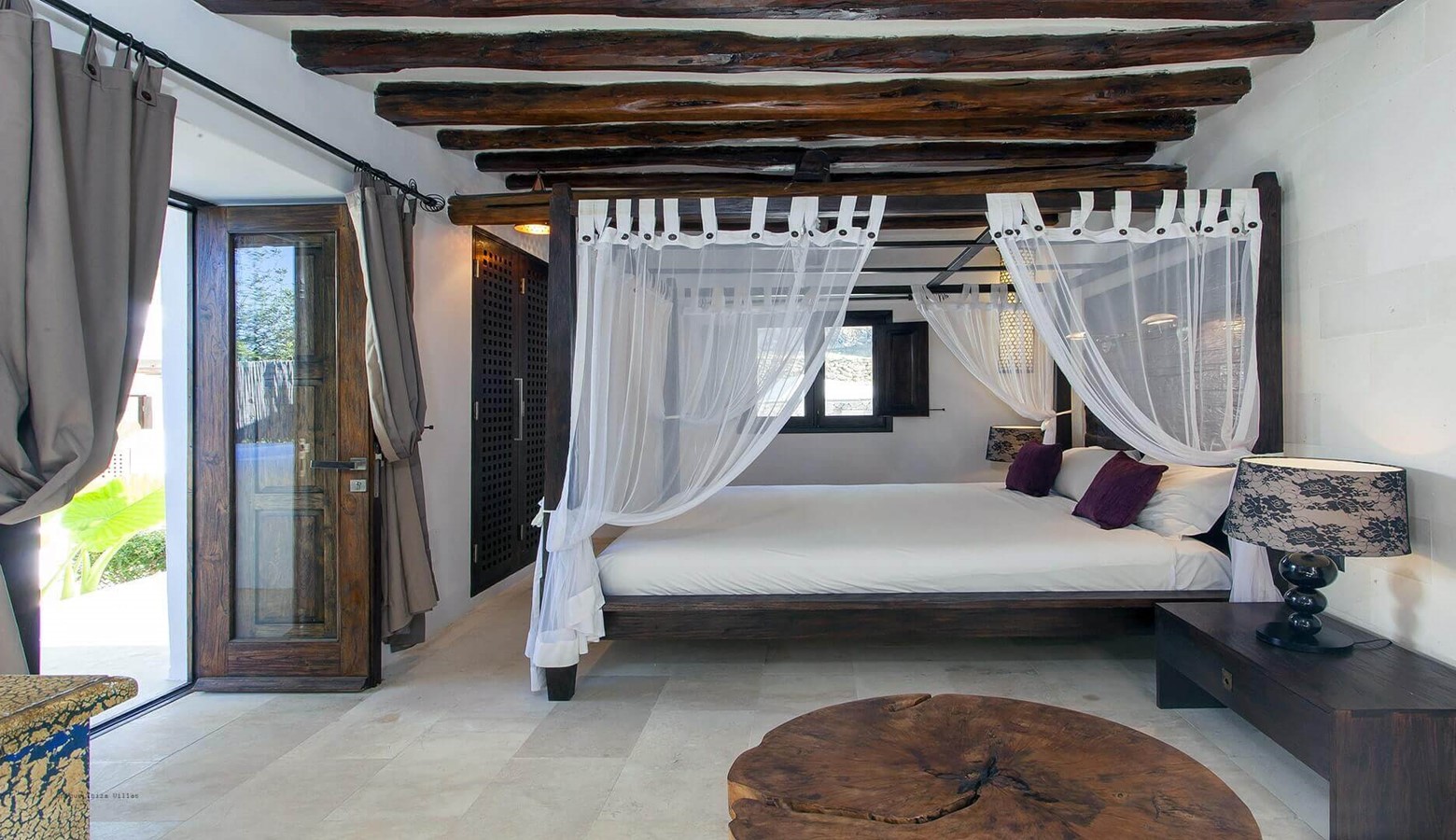 traditional Ibiza and Balinese design; with wooden ceilings in most