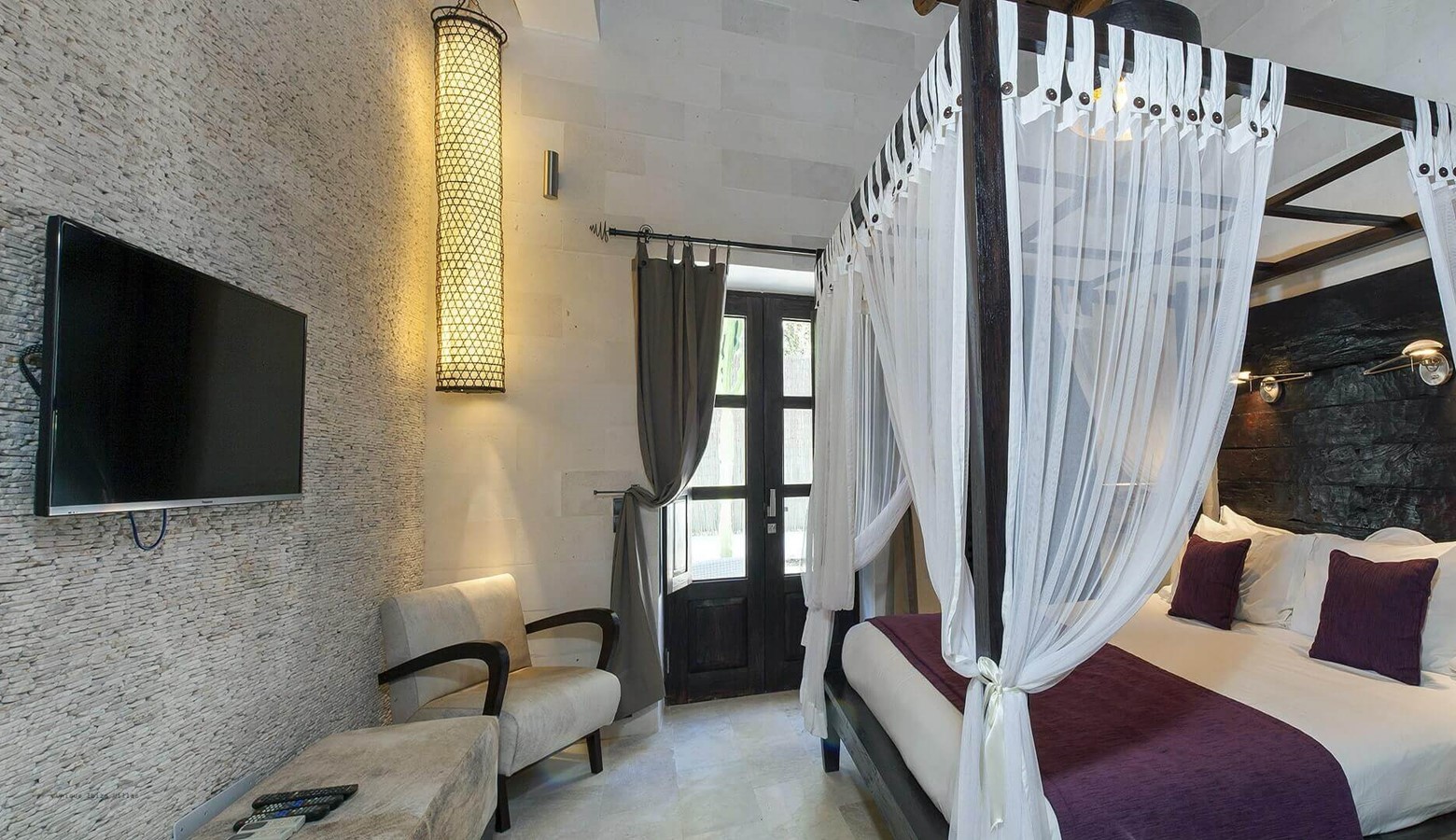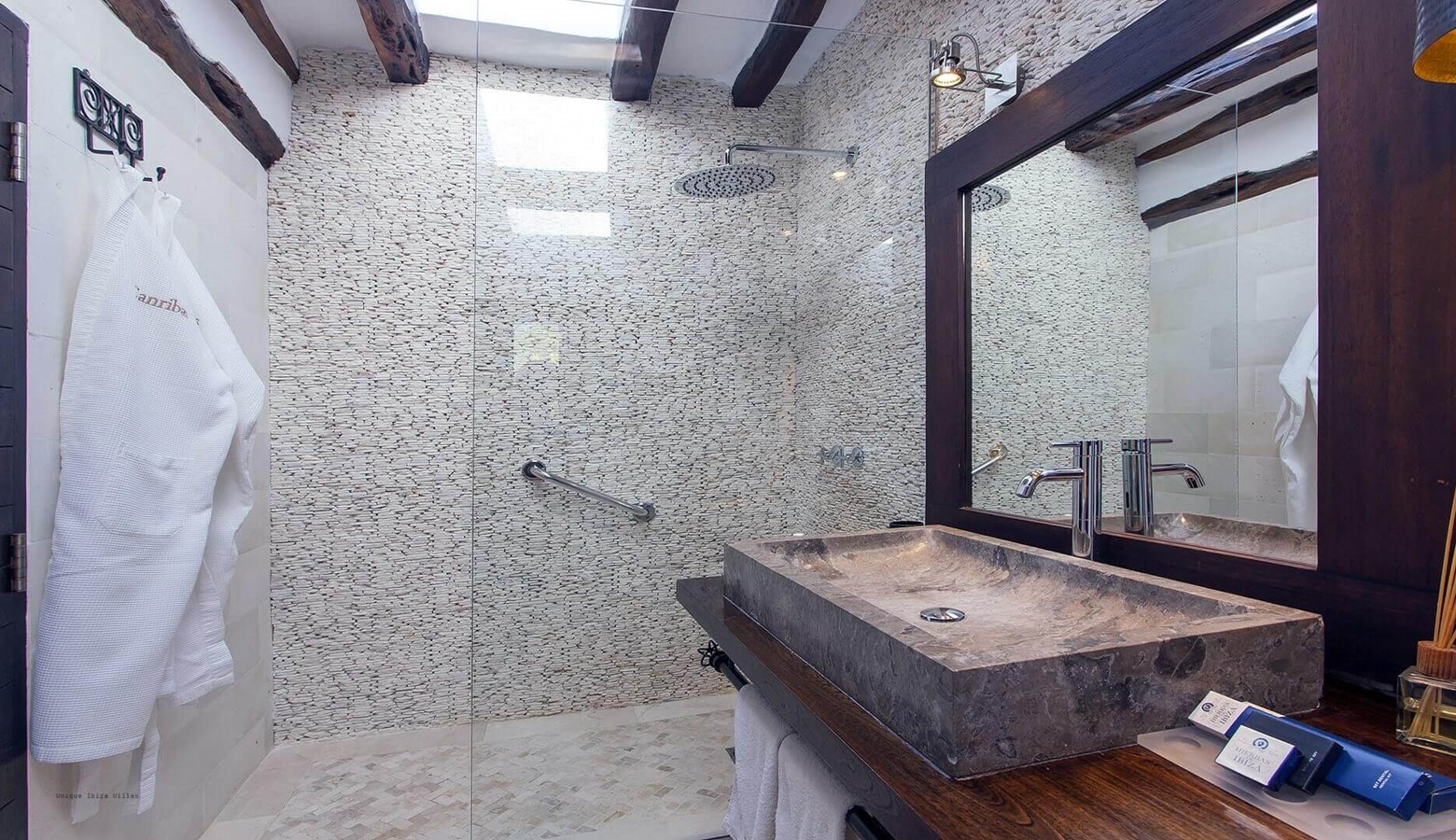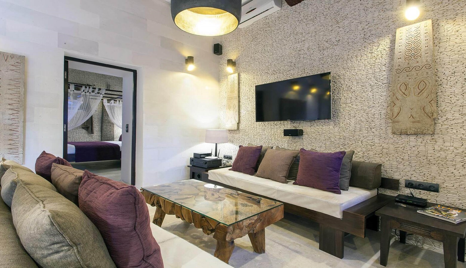 traditional Ibiza and Balinese design; with wooden ceilings in most