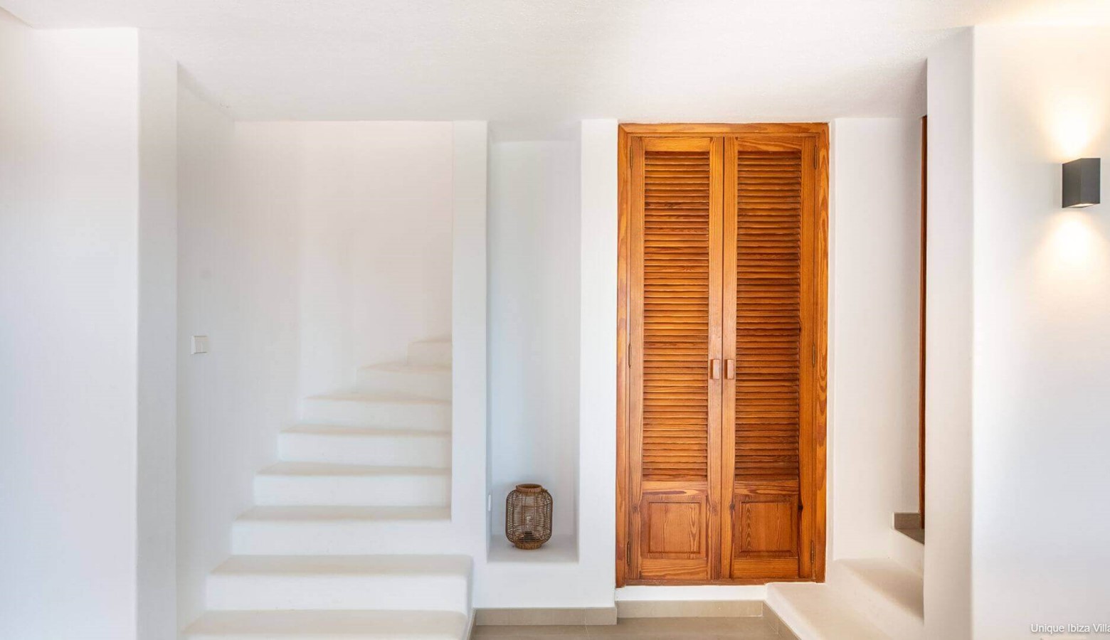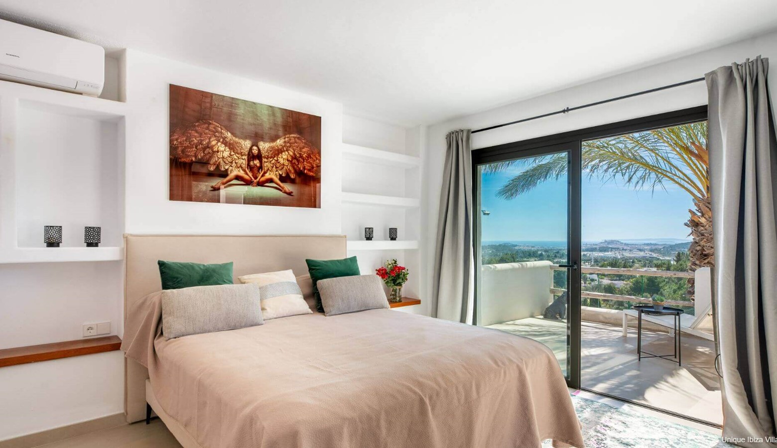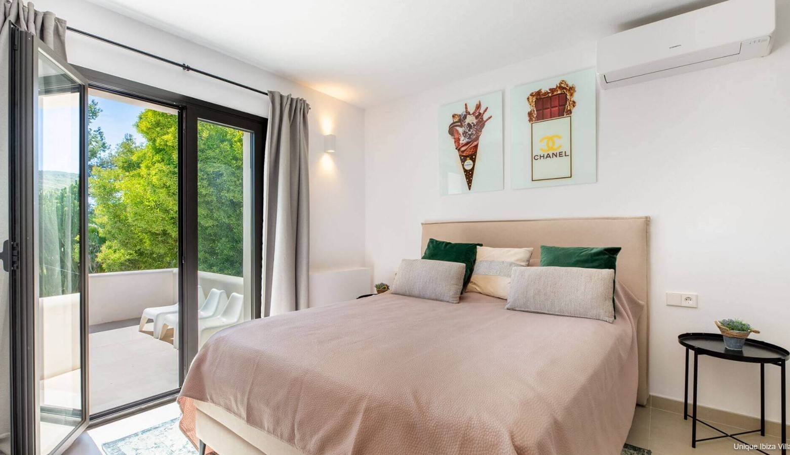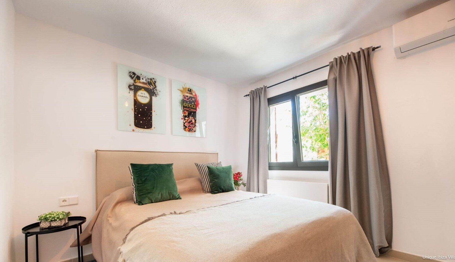 On the first floor are 2 bedrooms of similar size that share a terrace furnished with loungers with distant sea views and views to the old town of Ibiza (Dalt Vila)