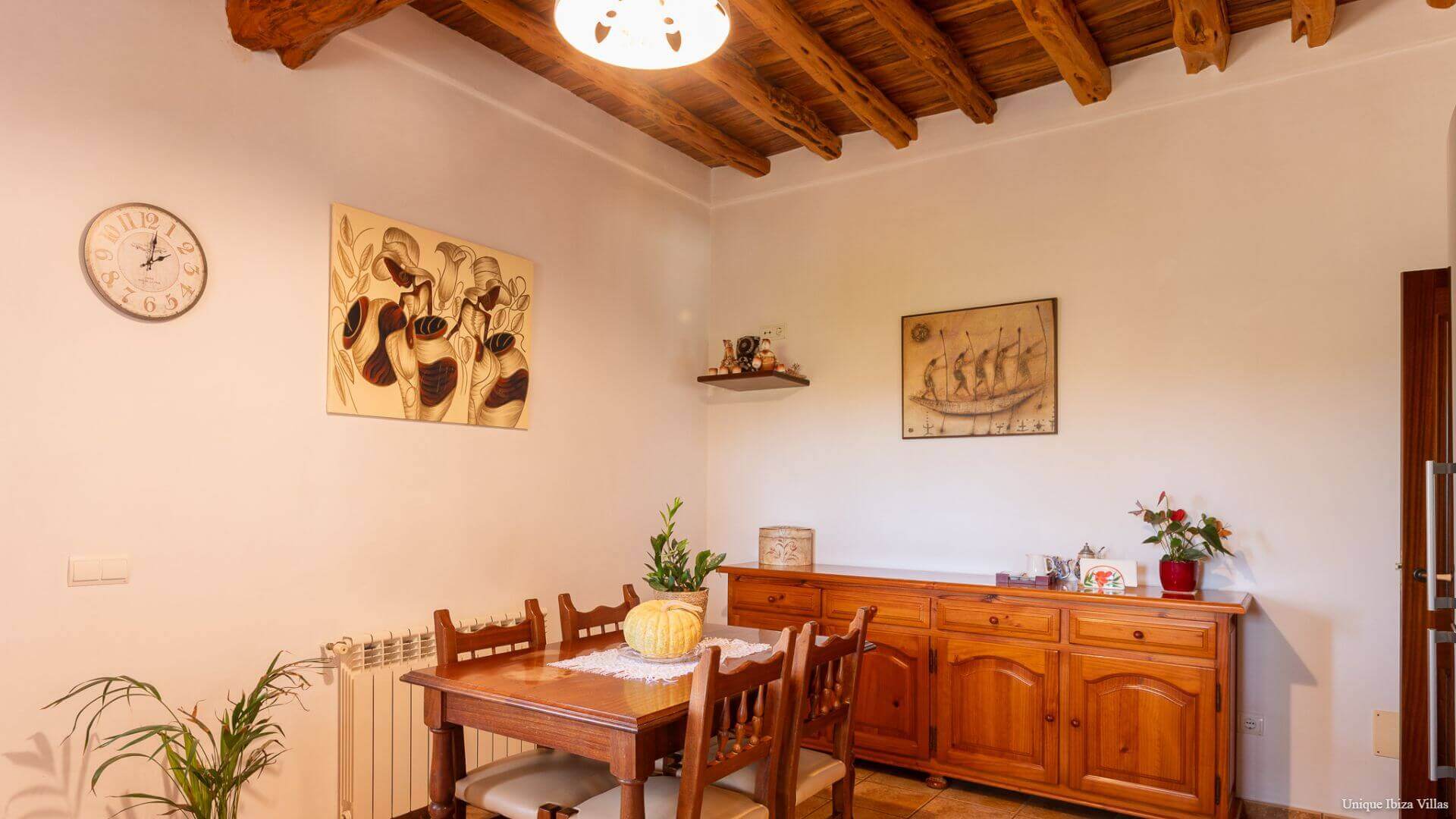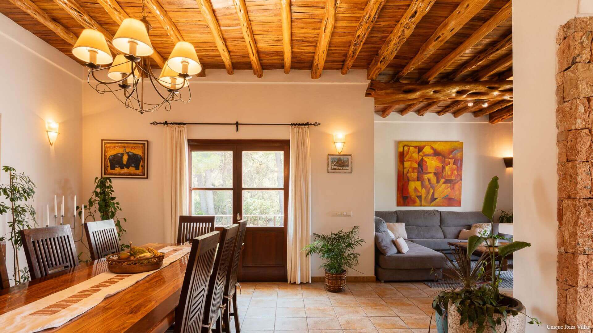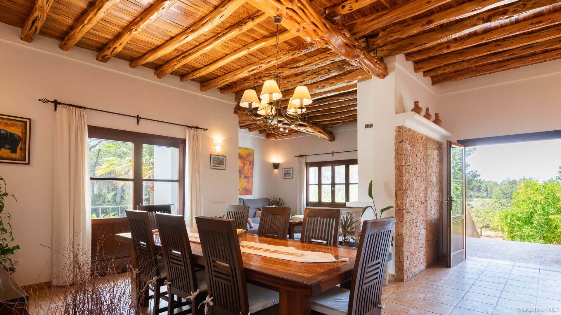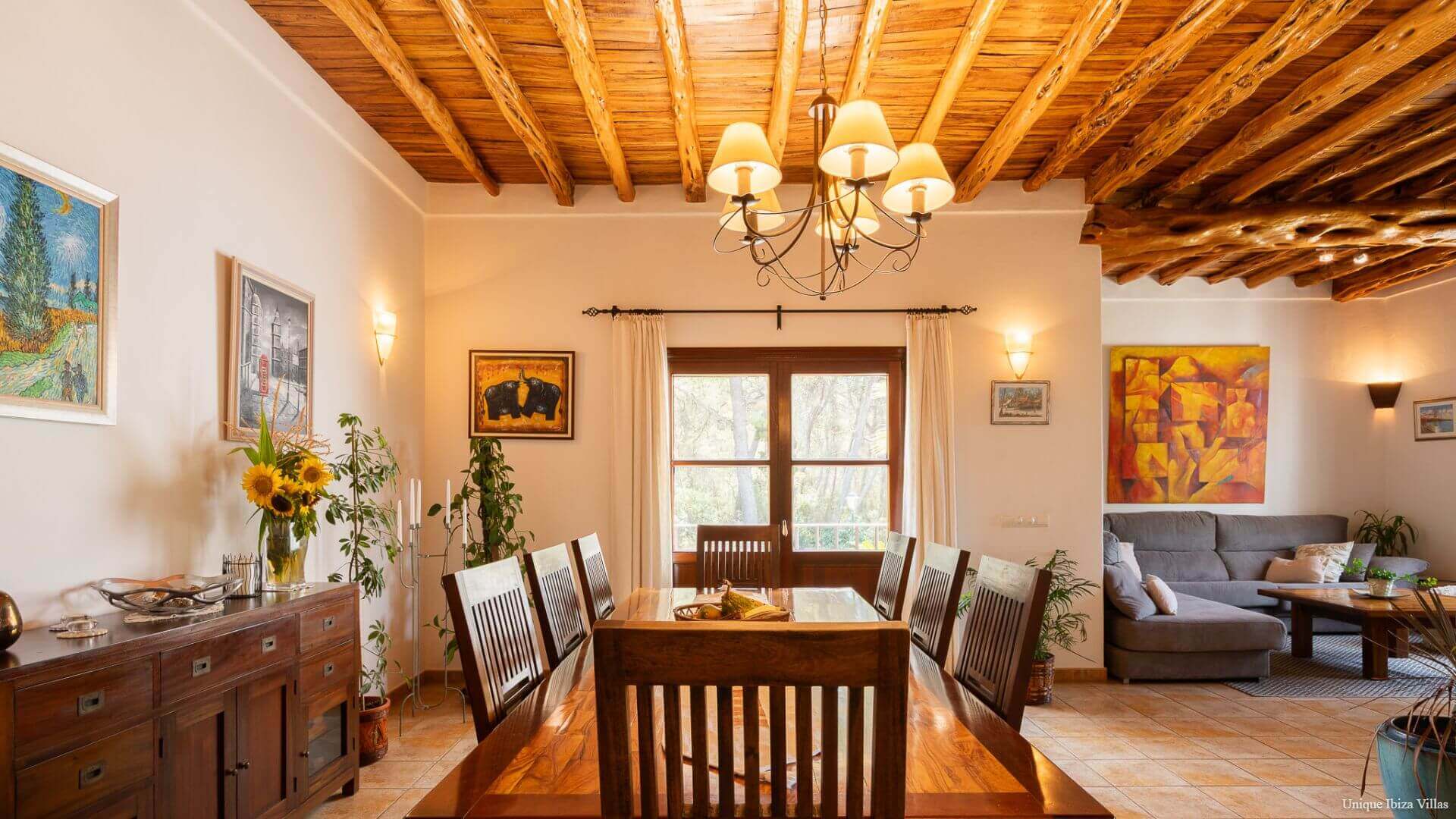 Dining table for 8 and traditional Sabina wood ceiling