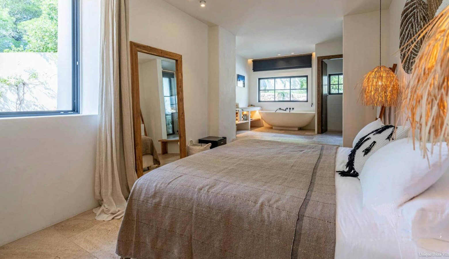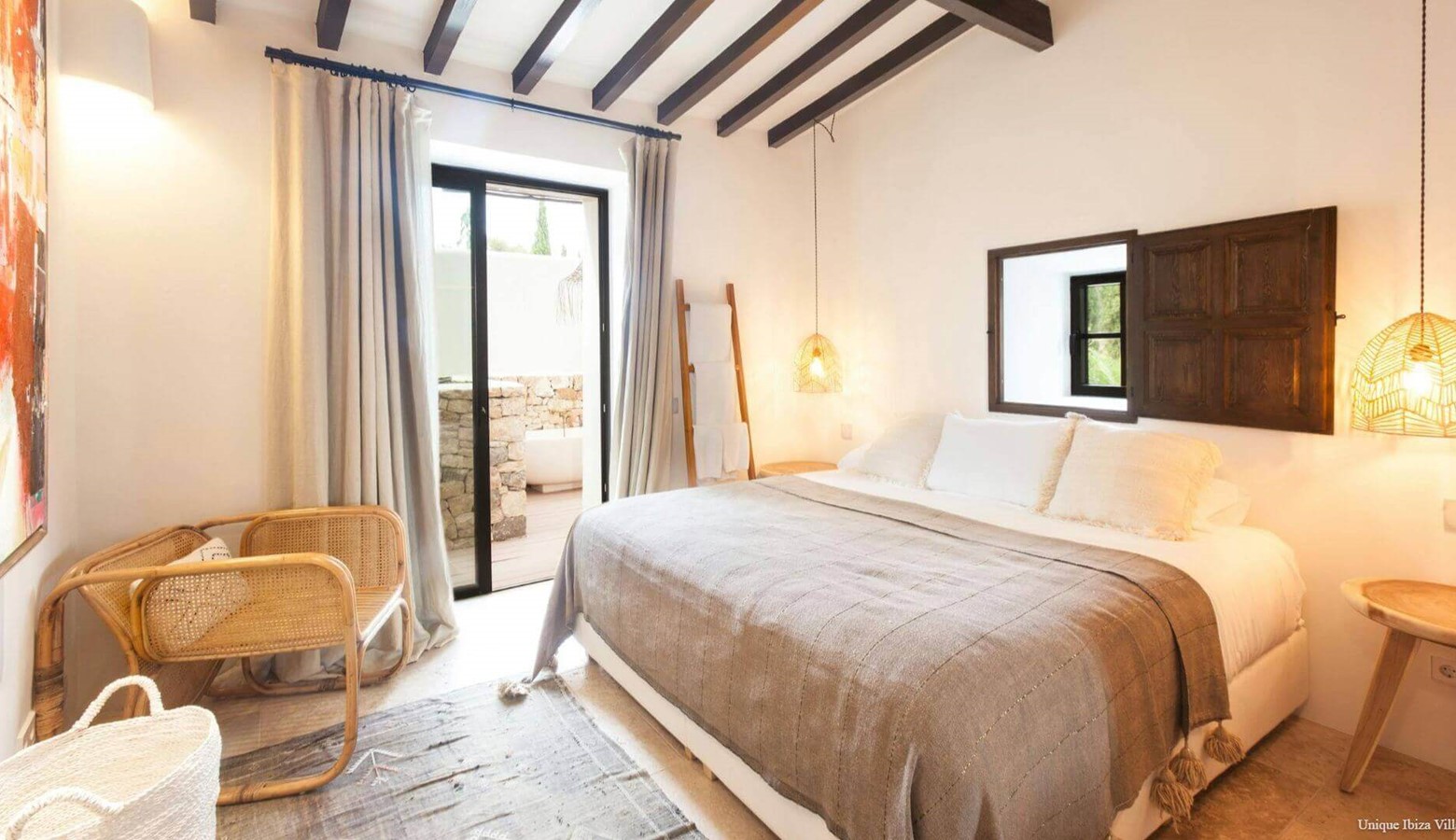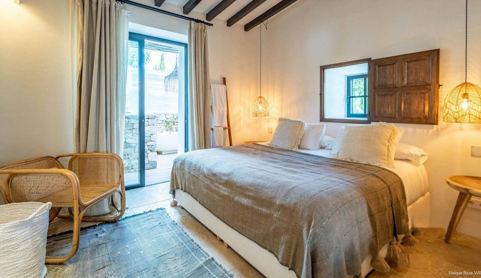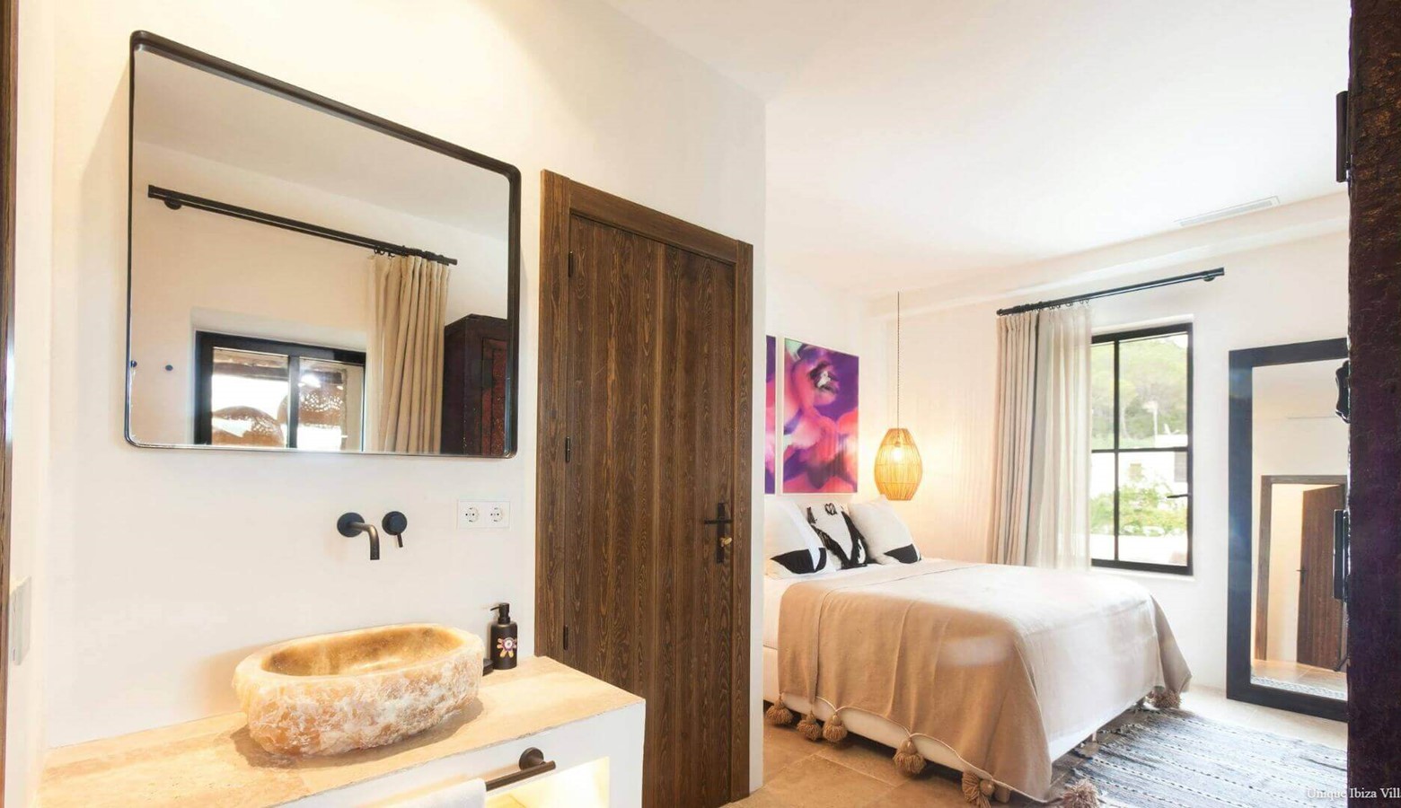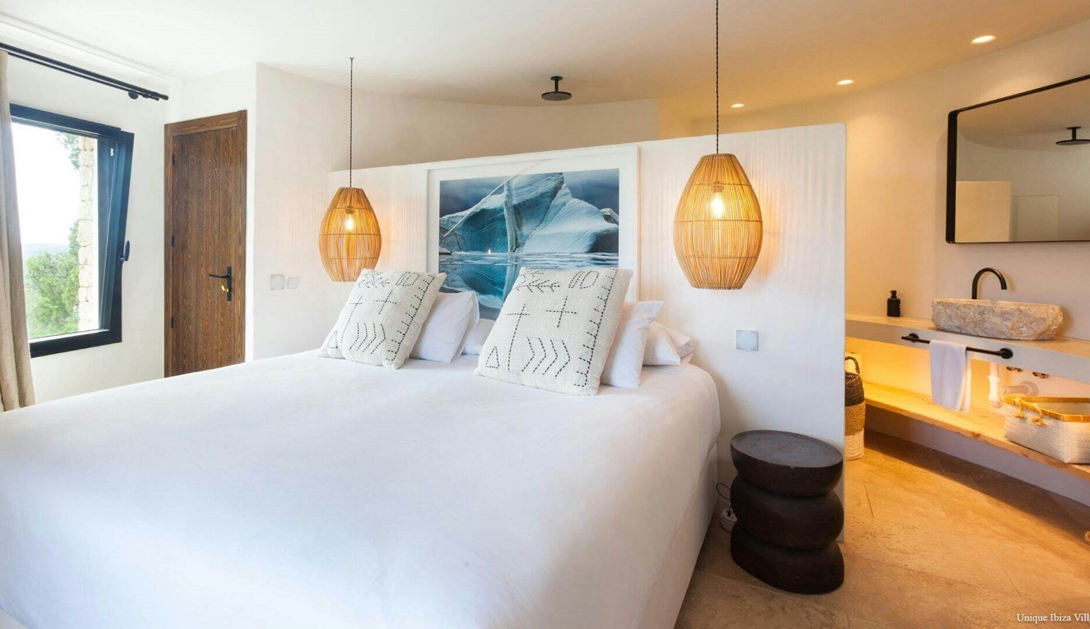 ✅ Private pool | ✅ Air con in all bedrooms |✅ 6 Bedrooms (all double)| ✅ Sleeps 12 | ✅ 6 Bathrooms (all en suite) | ✅ Tennis court |✅ Yoga | ✅ Sauna | ✅ Rural location & views | ✅ Large plot | ✅ 9 kms to Ibiza Town | ✅ 6 kms to Santa Gertrudis village