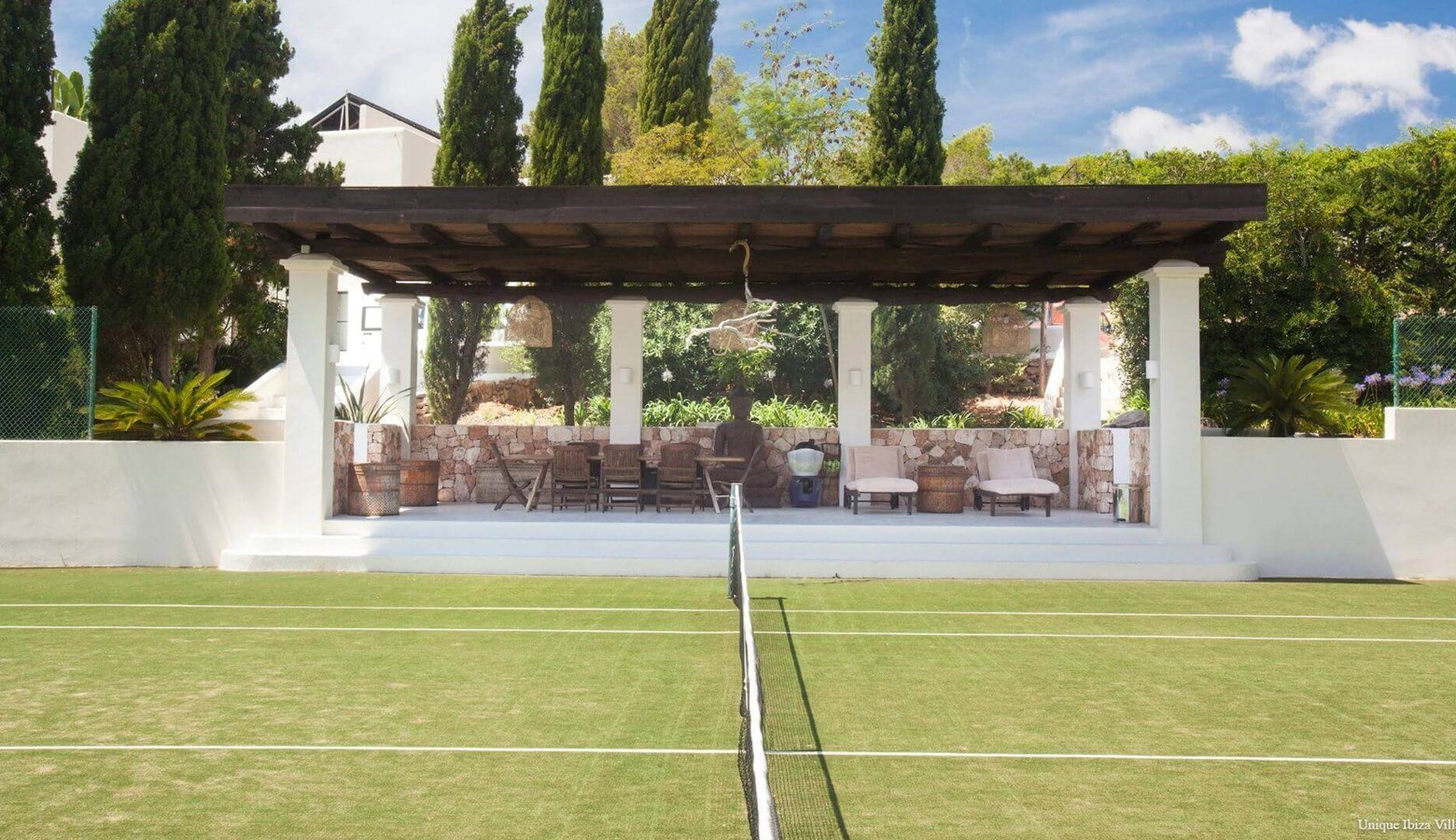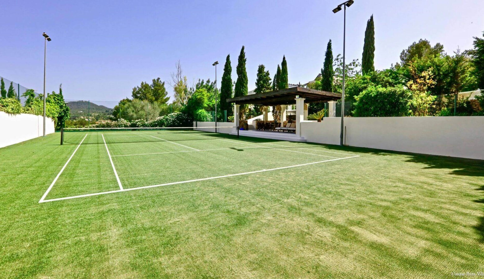 Villa Can Gerbera is a 6-bedroom countryside retreat which comes equipped with a tennis court, yoga area and sauna