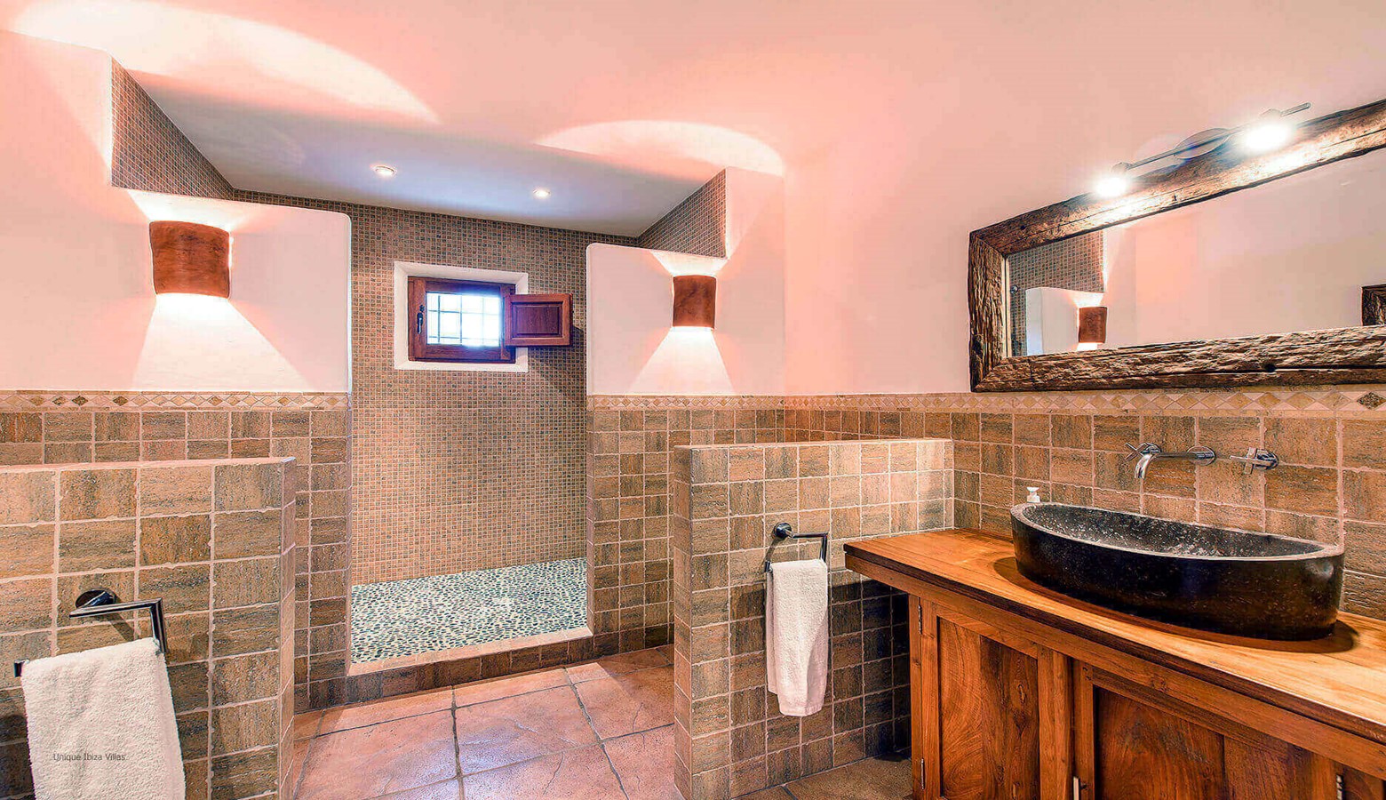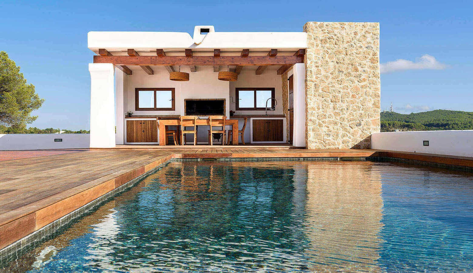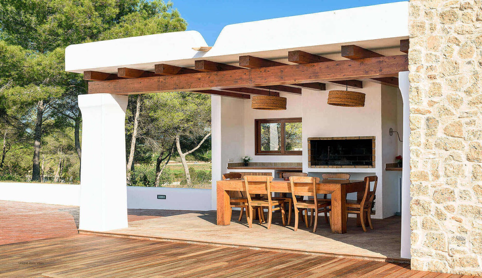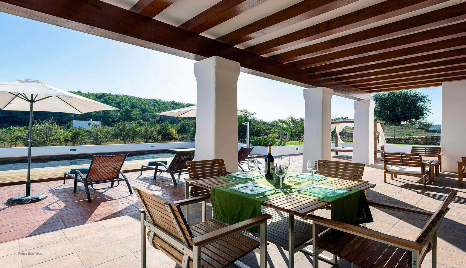 Villa Dalt S'Era is a high-end villa sleeping 5 (6 on request) in the heart of Ibiza which is ideal for families and couples. Built in 2013 this lovely villa has modern decor, a very well equipped kitchen, spacious living room and very nice bathrooms! The location is ideal; rural with a large 15,000 square metre plot and views across the lush fields to the hills beyond and very close to Santa Gertrudis village which is 2.1 kilometres away (reached partly via an unmade and slightly bumpy road as you would expect in rural Ibiza) and where you will find a great selection of restaurants and bars in the quaint and traditional village square. There are also some very nice boutique shops to tempt you! Access to the rest of the island is really easy and most points can be reached within a 20 minute drive.