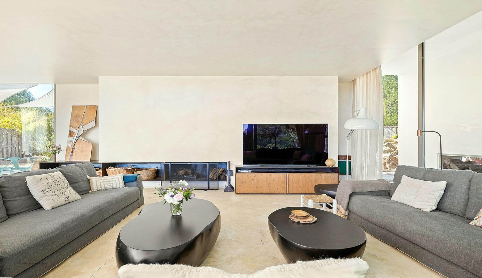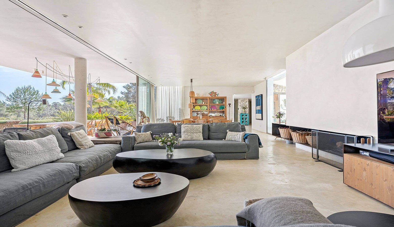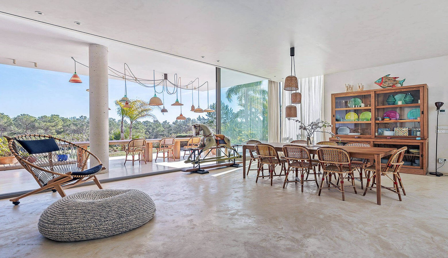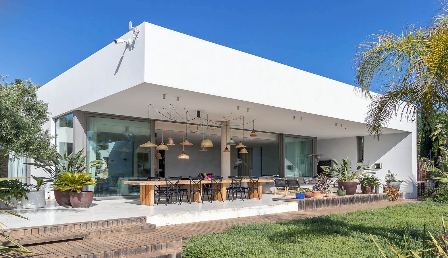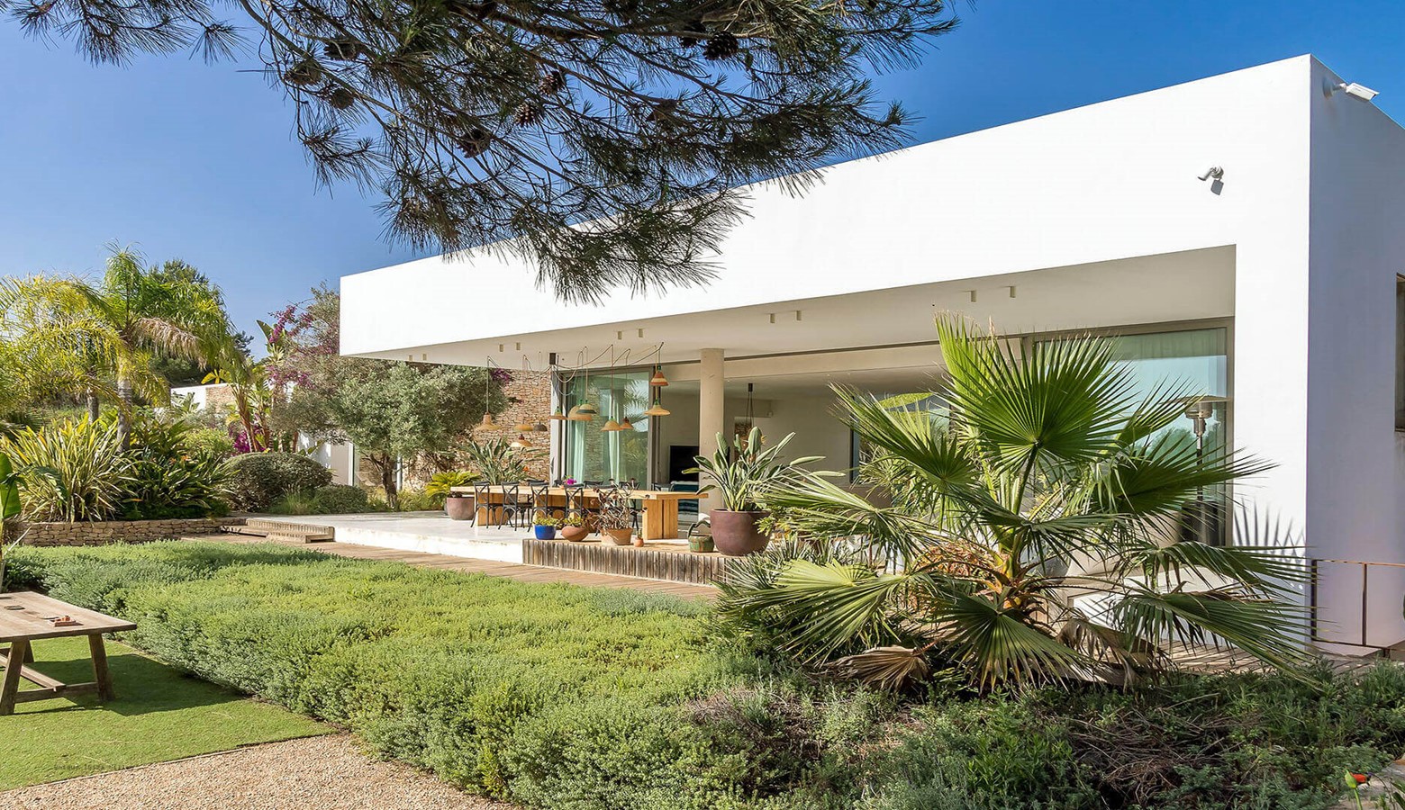 Villa Greenacres is a high-end modern villa in the countryside of Ibiza near the villages of Santa Gertrudis and San Lorenzo (Sant Llorenc de Balafia) with an indoor heated pool to complement the outdoor pool