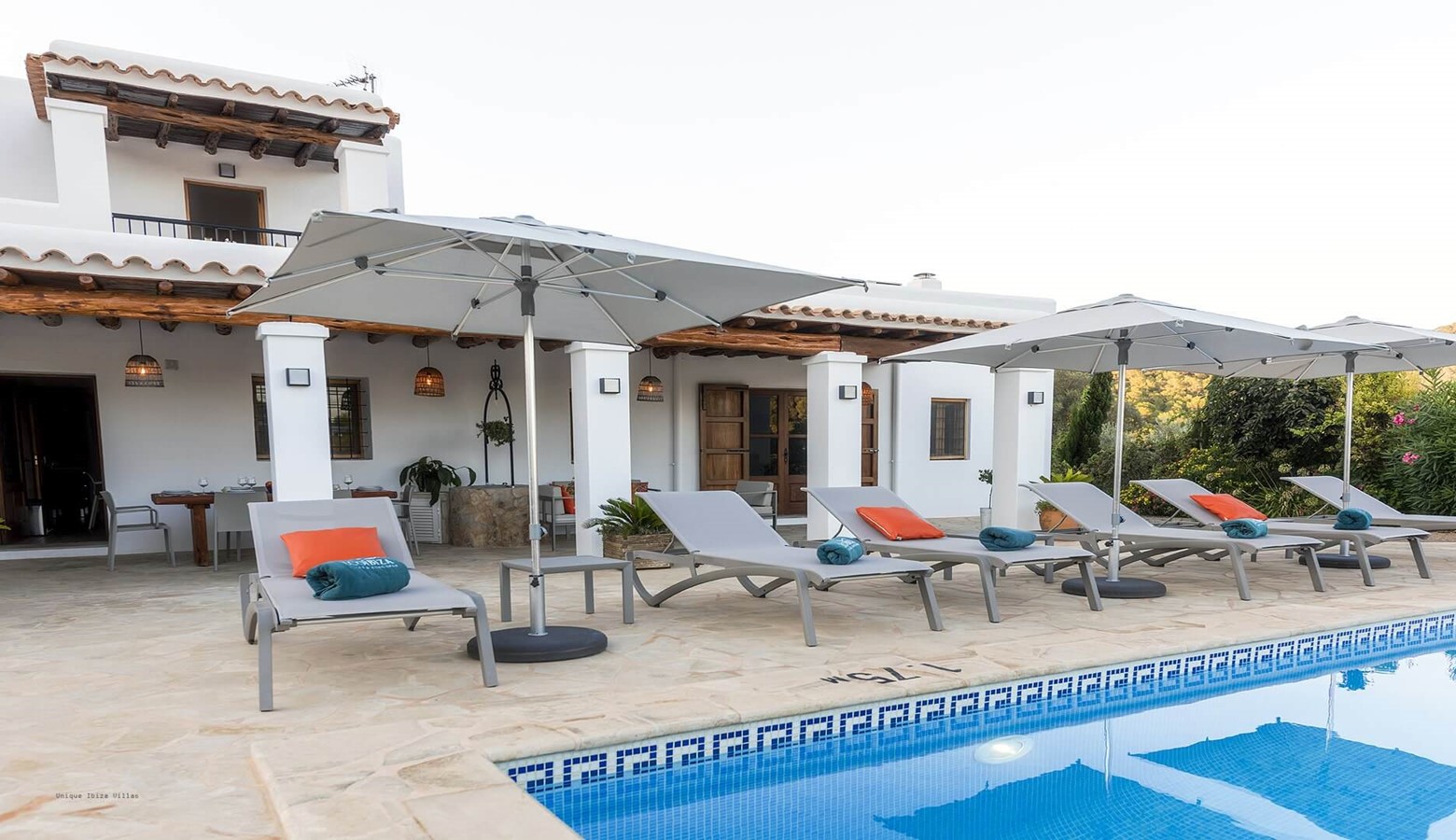 Villa Los Naranjos is walking distance (800 metres) to the family friendly sandy beach of Cala Llonga on the east coast of Ibiza (4 kilometres from Santa Eulalia), and less than 1 kilometre from Amante Beach Club.
