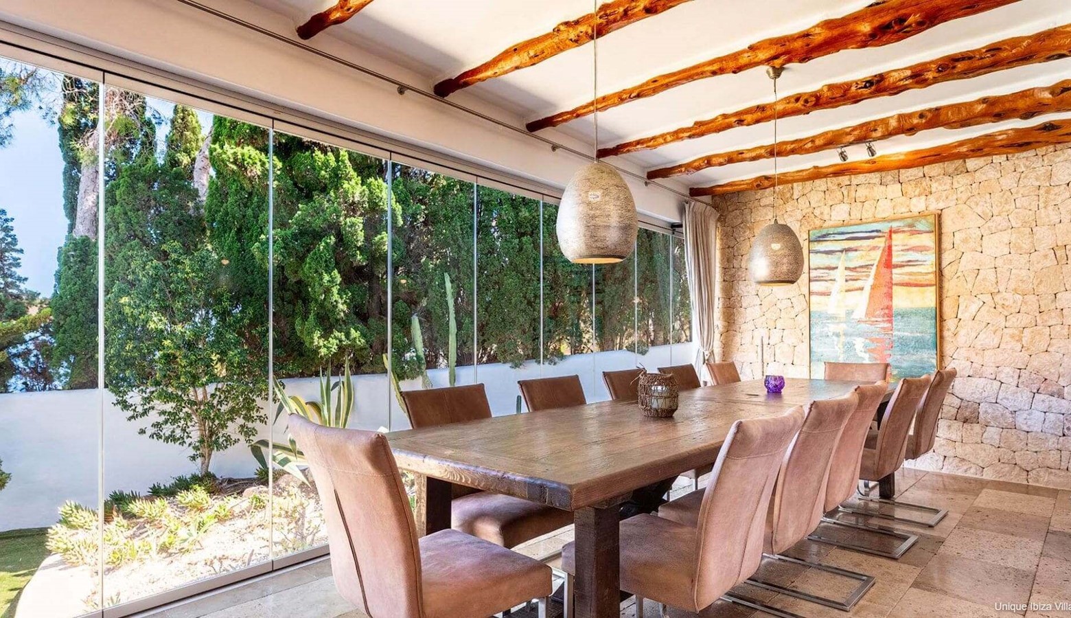 The villa is a fusion of traditional and modern with many original features including wooden beam ceilings contrasting with dynamic floor to ceiling doors/ windows to offer the perfect view