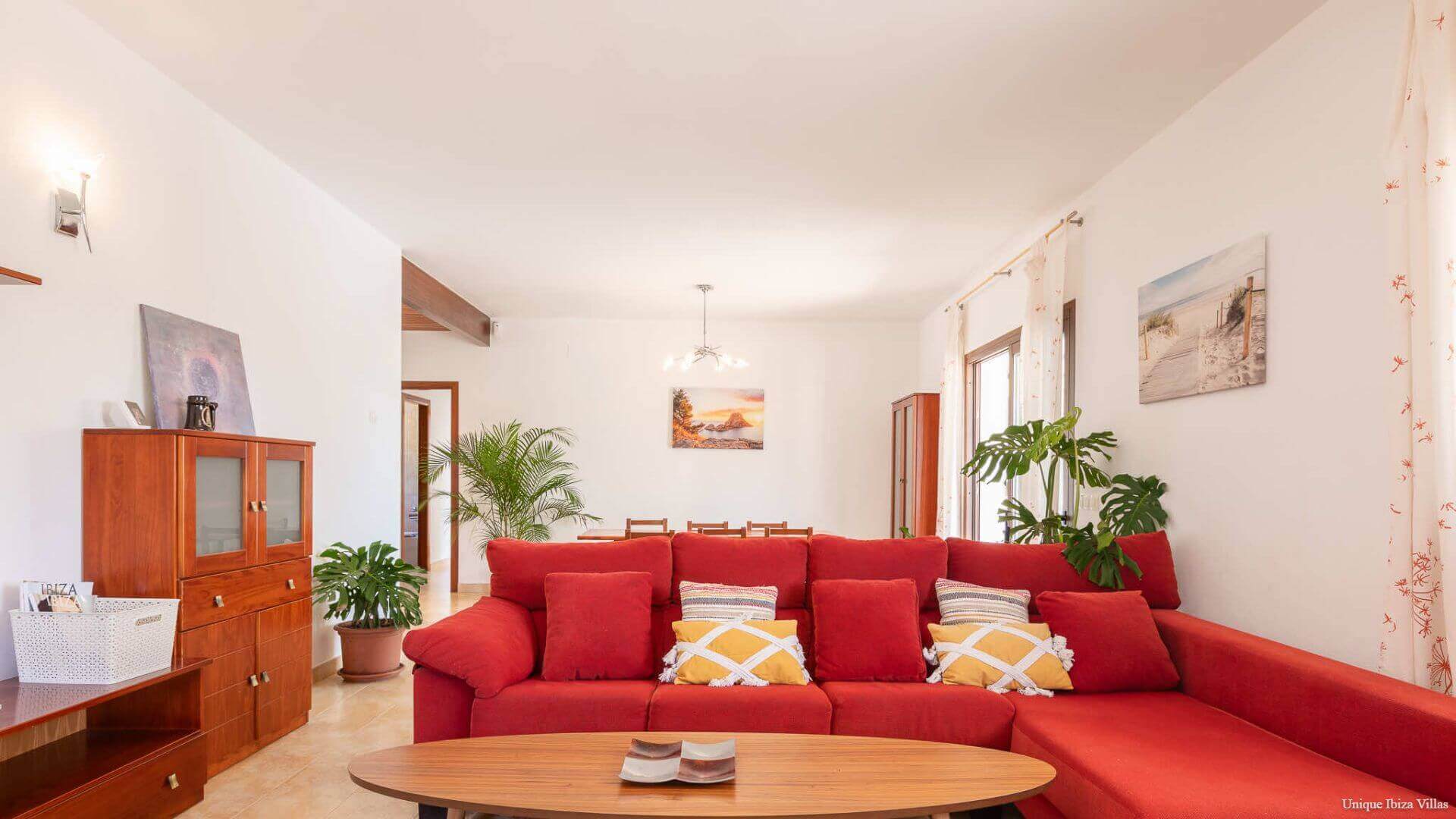 Great villa, close to beaches and San Carlos village in this traditional corner of Ibiza. The villa is next to the road the runs to Aguas Blancas so you can expect there will be some traffic during the day