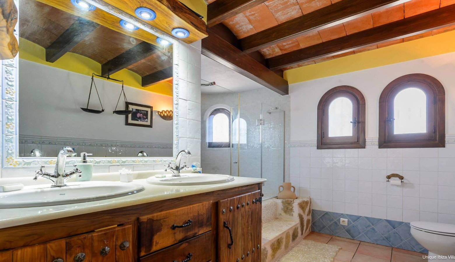 The villa has many traditional features including the wooden ceilings (some with Sabina wood) and is ideal for this seeking the authentic and original version of Ibiza