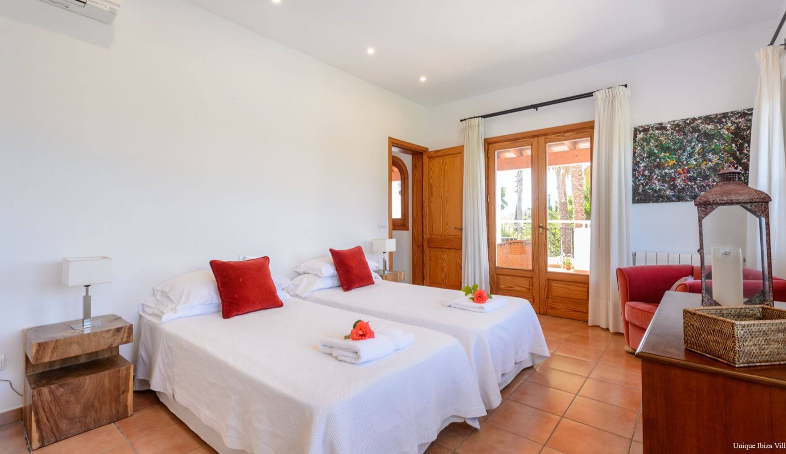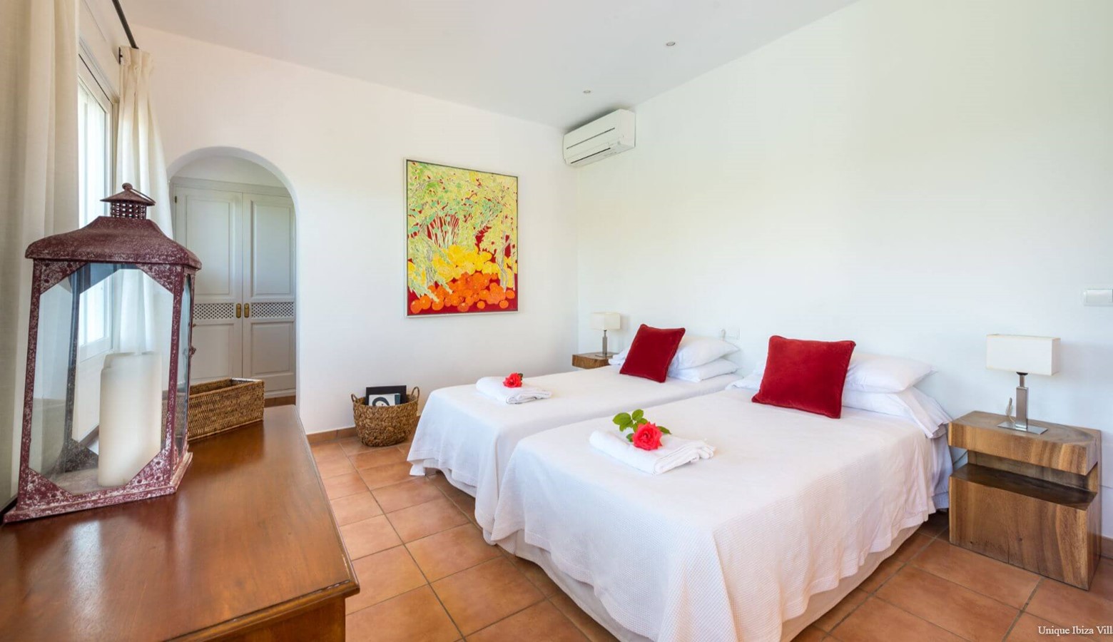 Bedroom with twin beds and air conditioning