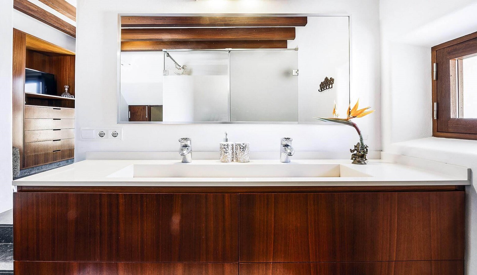 Adjoining the main house is a bedroom with double bed, air conditioning and en suite bathroom with separate entrance that leads to the gardens
