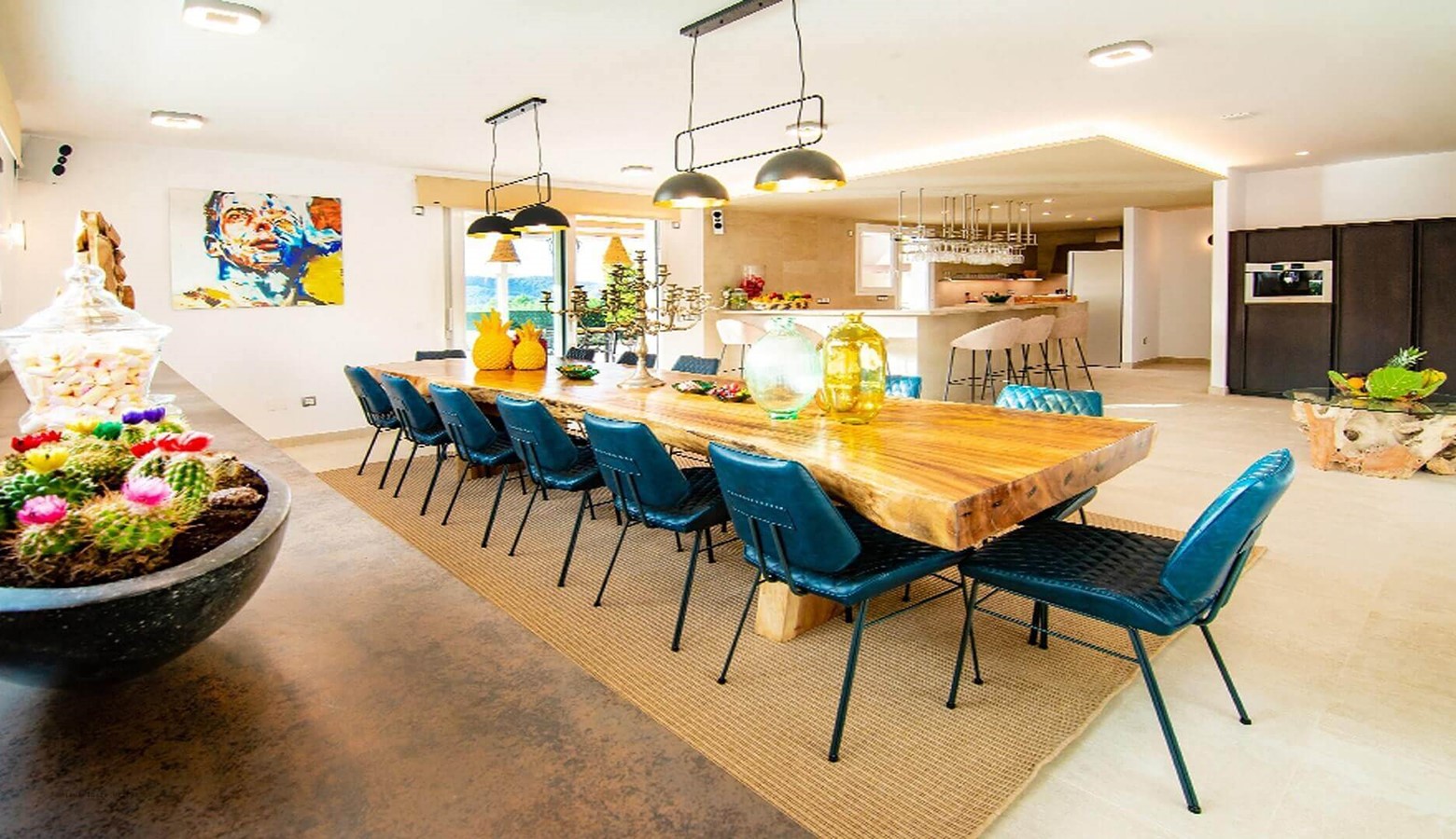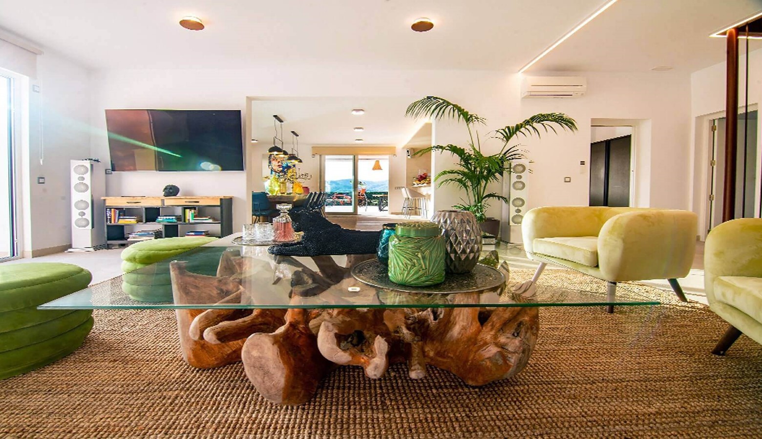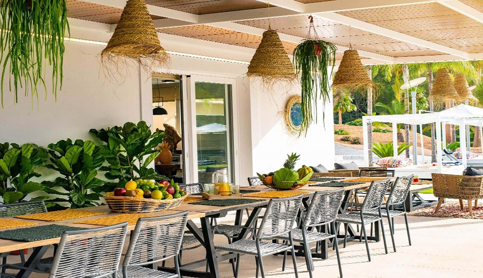 Living area leading to the large outside dining space to seat 18