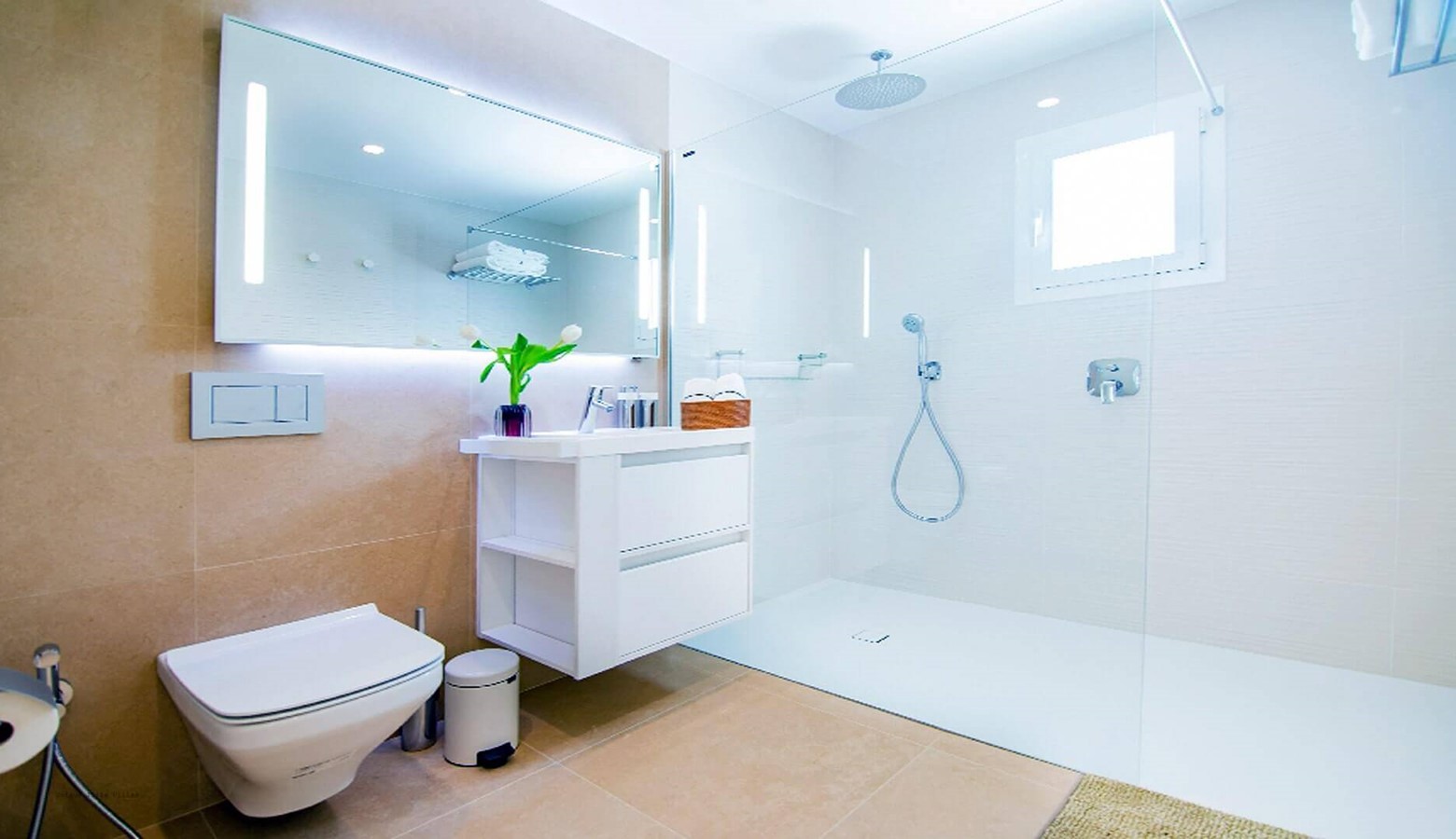 All bedrooms have a double bed, air conditioning and en suite bathroom (the master bedroom has a bathtub and separate shower)