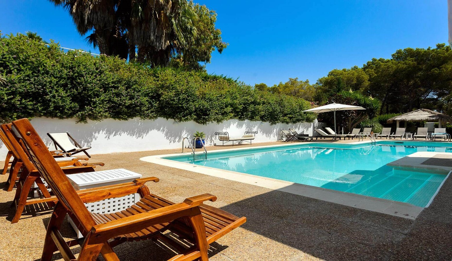 Opposite the pool house is the swimming pool