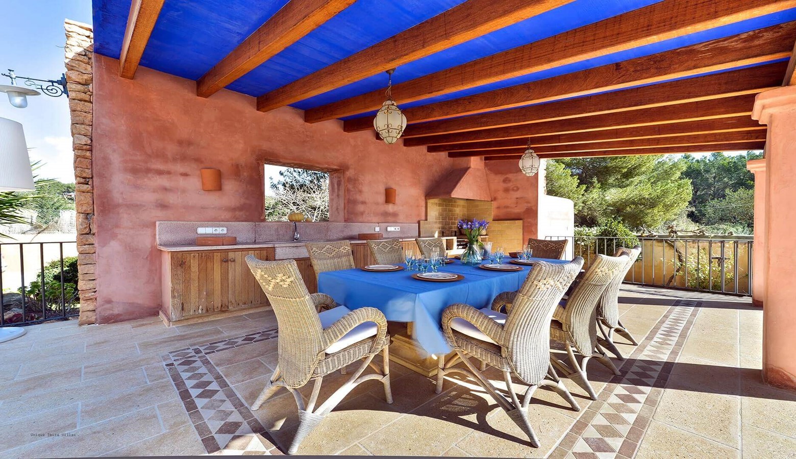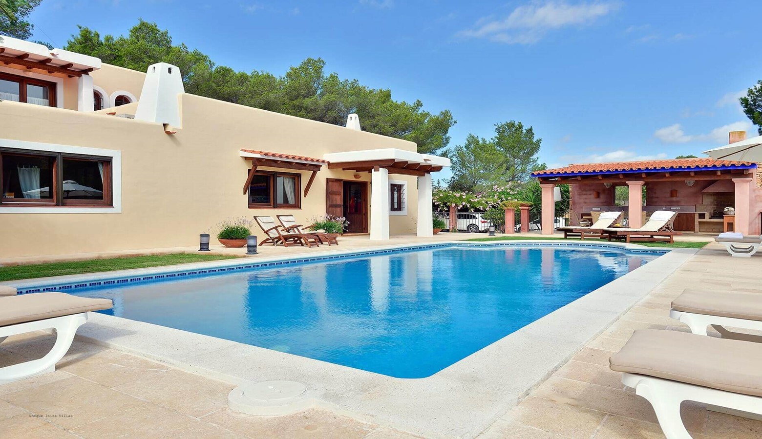El Abuelo is a great 5 bedroom Ibiza villa for a family. There are 4 bedrooms in the main building and a separate bungalow next to the main house with the additional bedroom. Quite simply it's a really great villa only 3 kilometres from Santa Eulalia, San Carlos & also Las Dalias Hippy Market