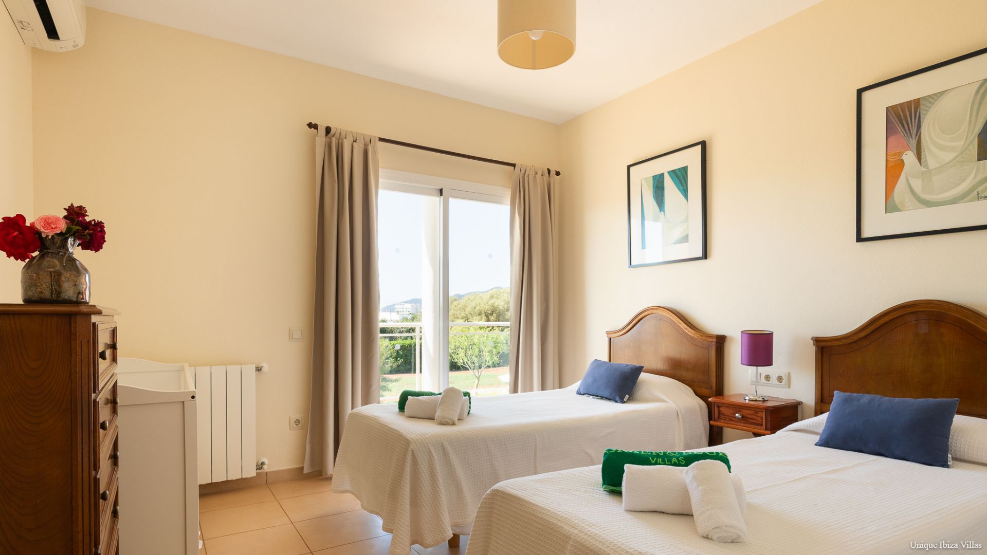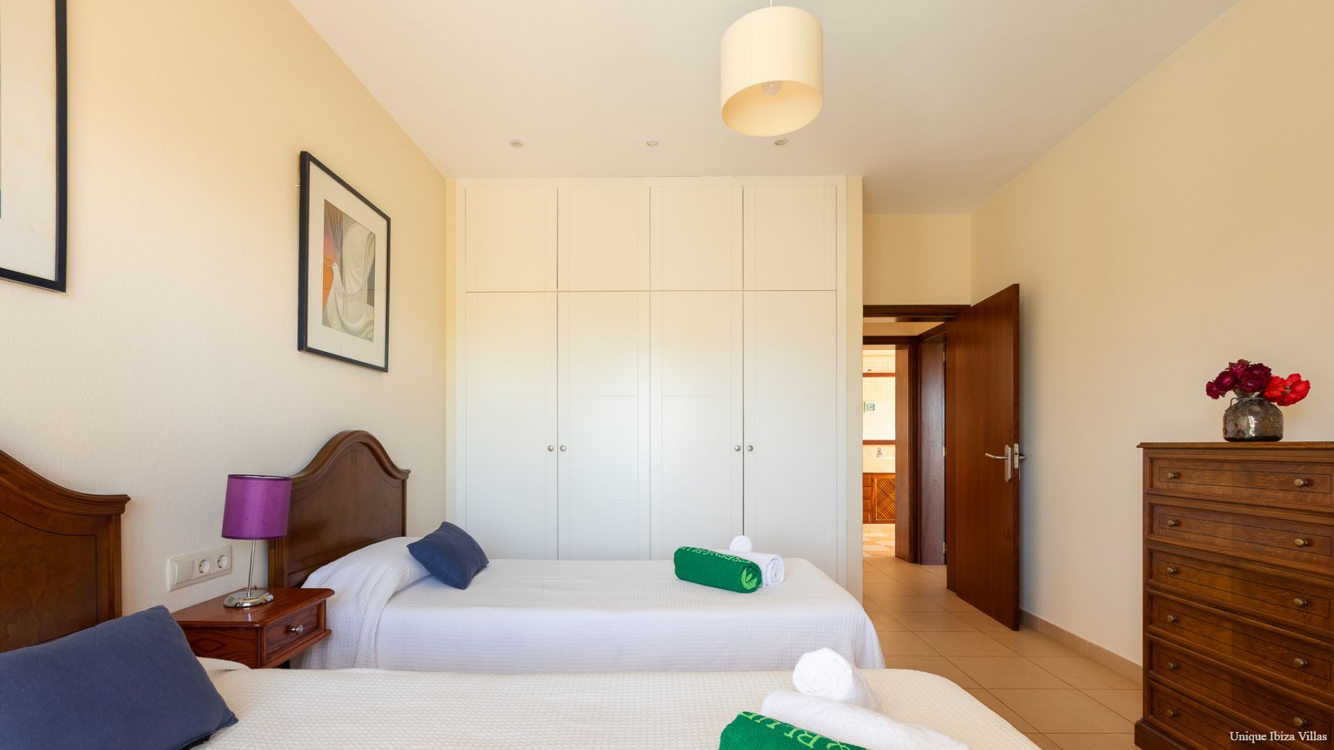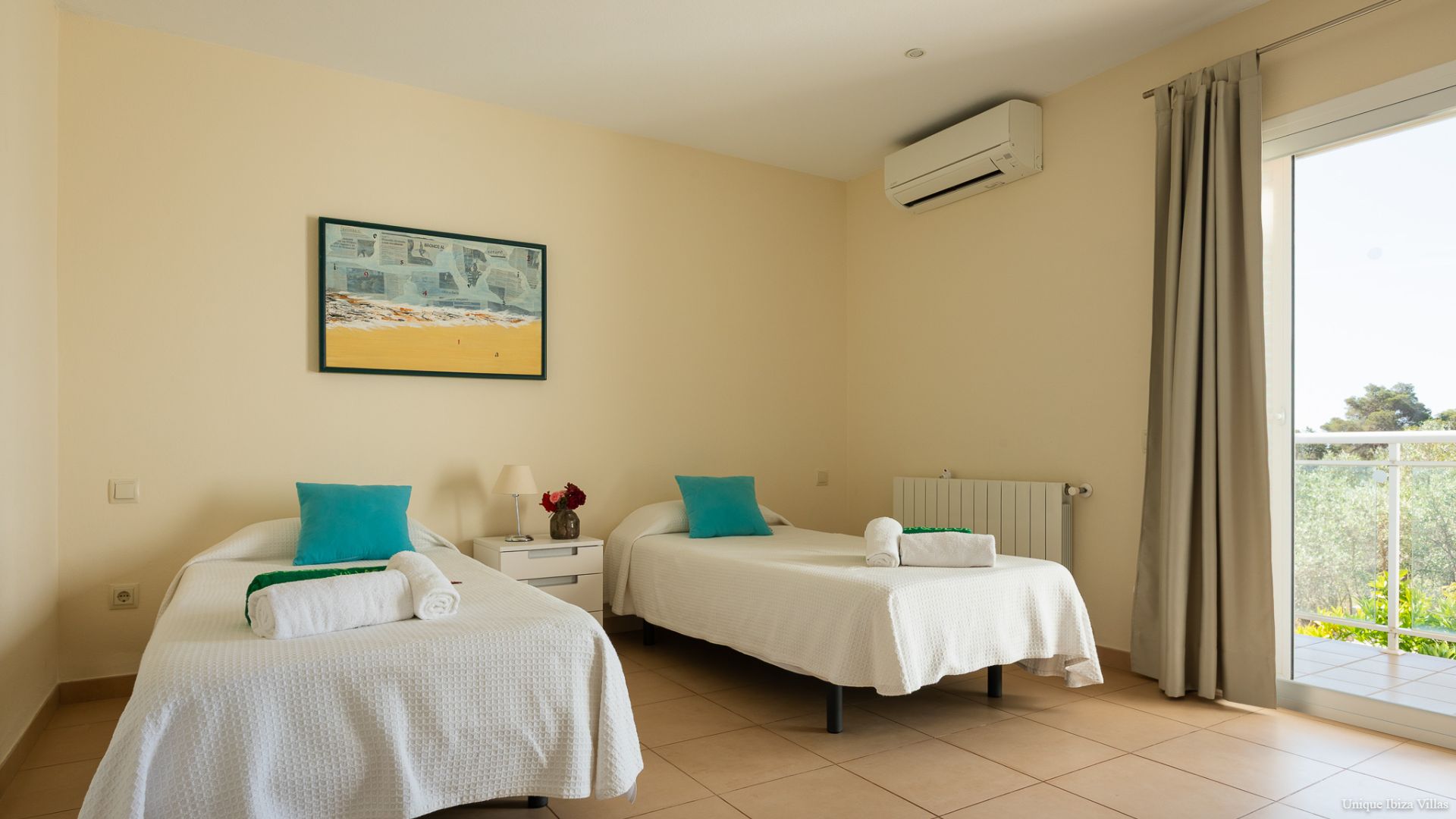 Two bedrooms with twin beds, air conditioning and terrace shared