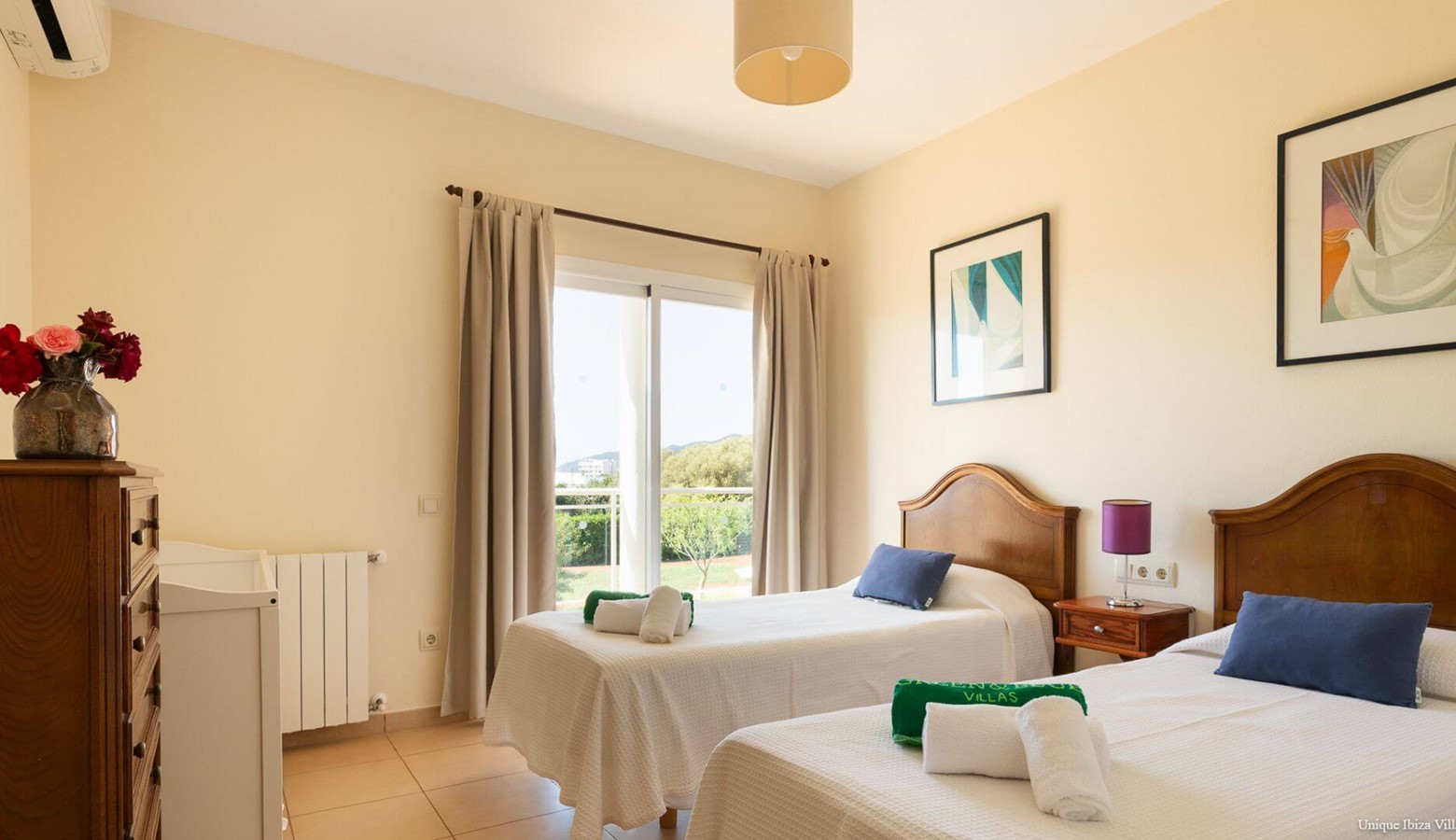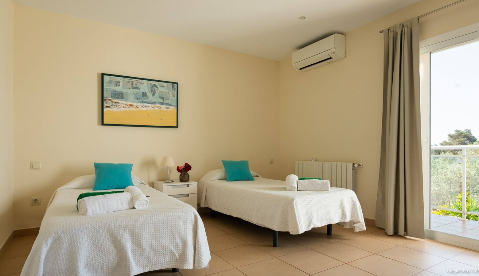 Two bedrooms with twin beds, air conditioning and terrace shared