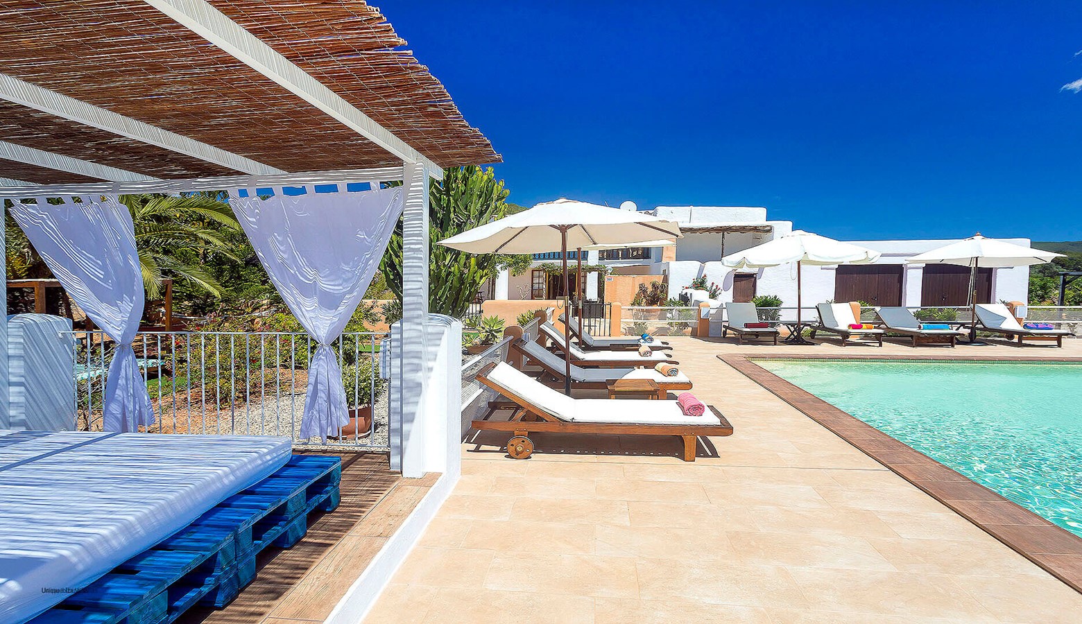 Cana Marina is a 4 bedroom Ibiza villa in a rural setting close to Santa Eulalia. This is a traditional style villa but all 4 bedrooms have air-conditioning, and the swimming pool is fenced making it a great family villa. The price is amazing, so this villa always gets booked up quickly