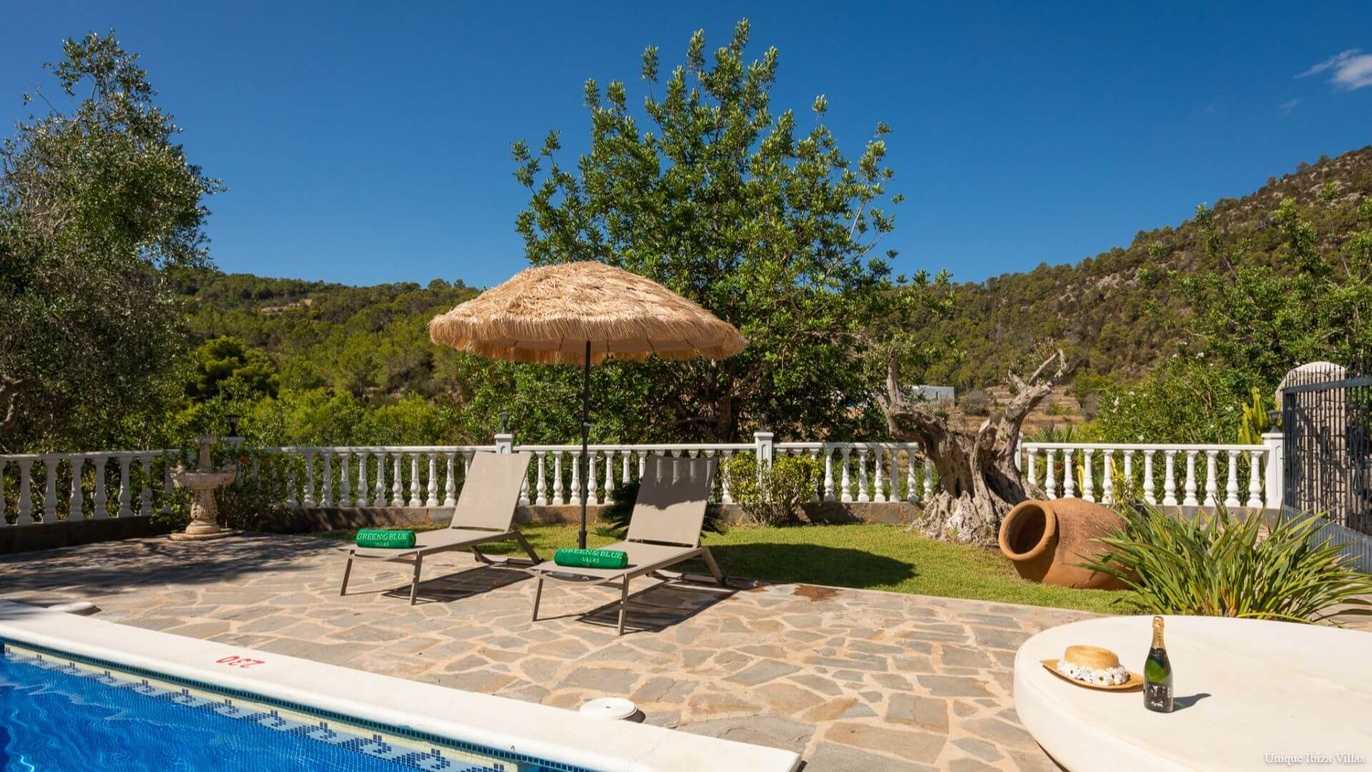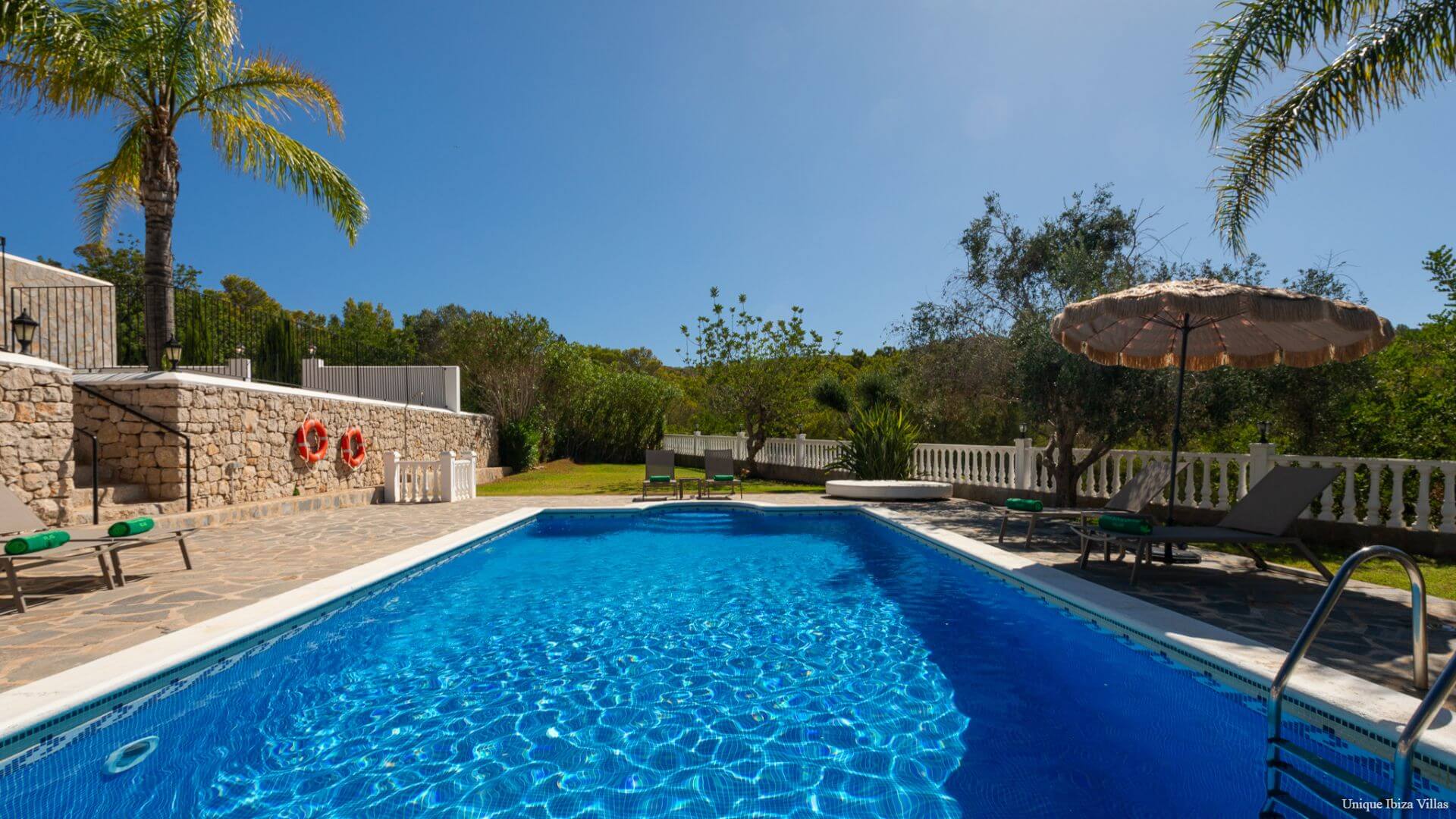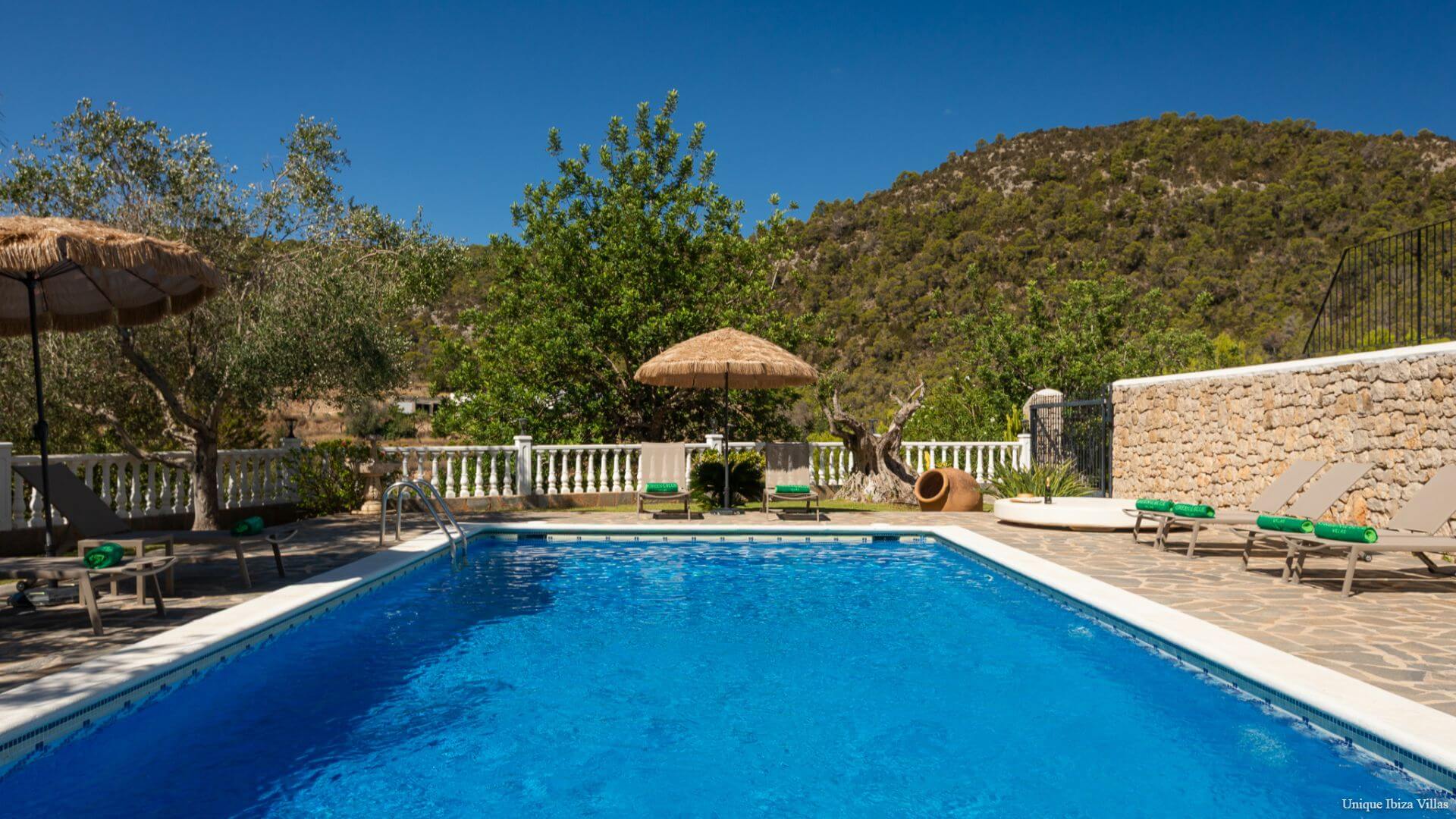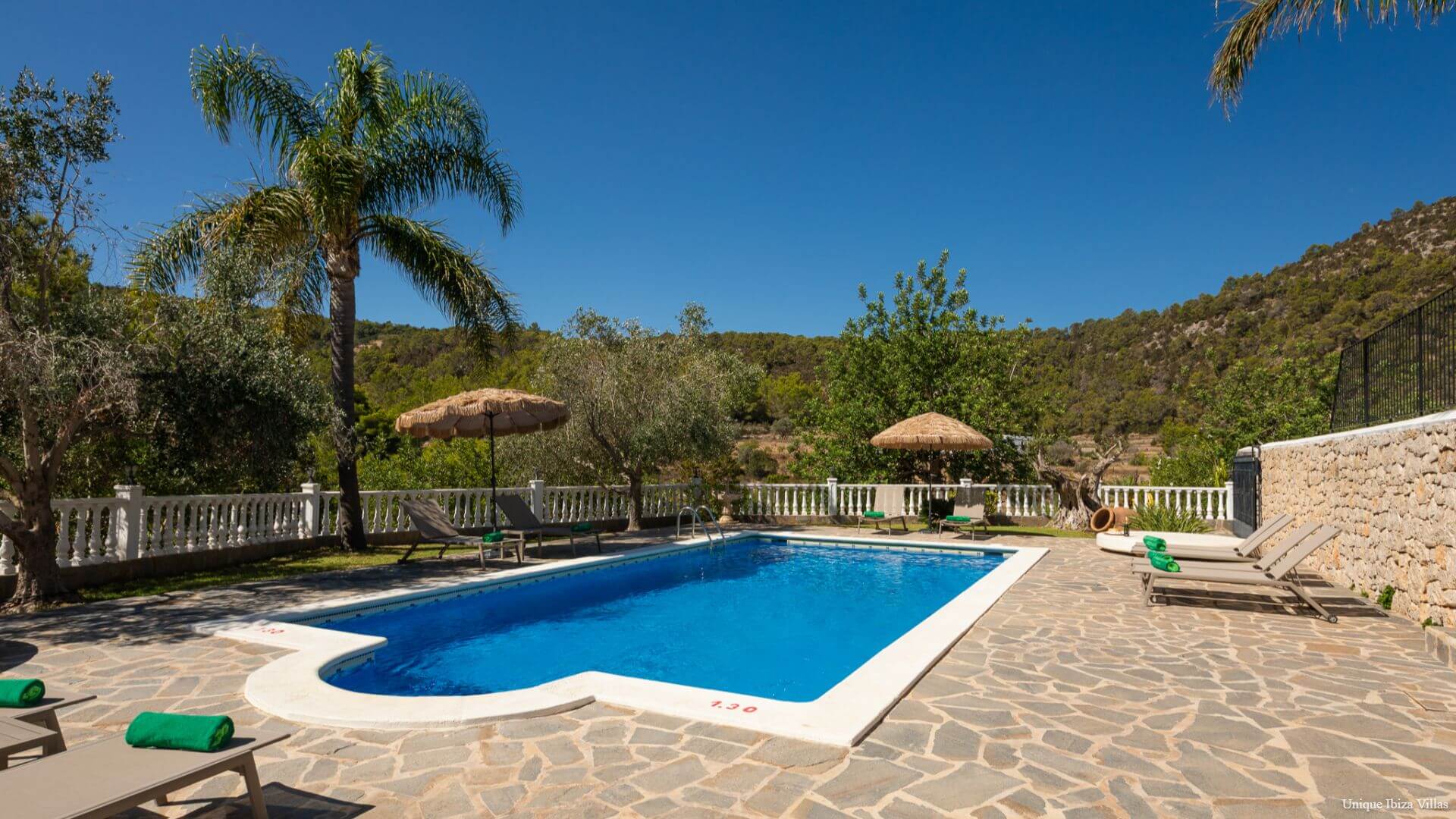 ✅ Private pool with gate | ✅ Air con in all bedrooms | ✅ 5 Bedrooms (2 double & 3 twin) | ✅ Sleeps 10 | ✅ 2 Bathrooms | ✅ Mountain views | ✅ North Ibiza | ✅ 5.8 kms to Sant Joan village | ✅ 2.6 kms to Portinatx beach