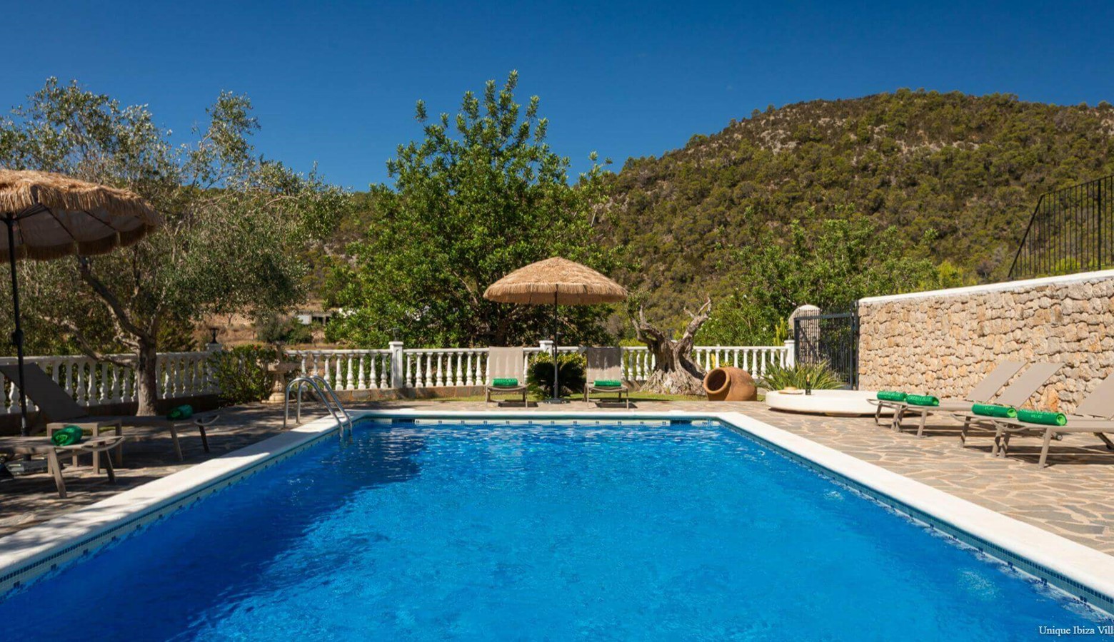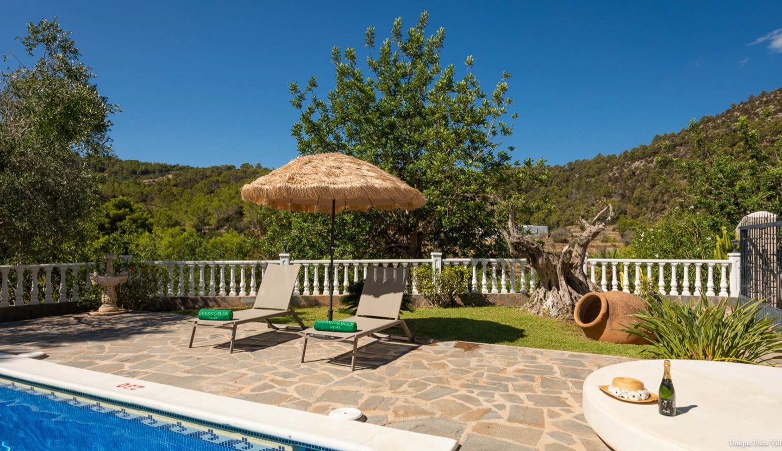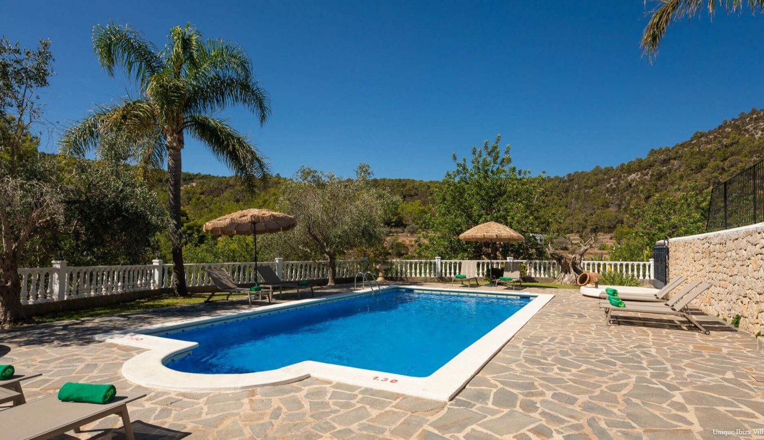 ✅ Private pool with gate | ✅ Air con in all bedrooms | ✅ 5 Bedrooms (2 double & 3 twin) | ✅ Sleeps 10 | ✅ 2 Bathrooms | ✅ Mountain views | ✅ North Ibiza | ✅ 5.8 kms to Sant Joan village | ✅ 2.6 kms to Portinatx beach