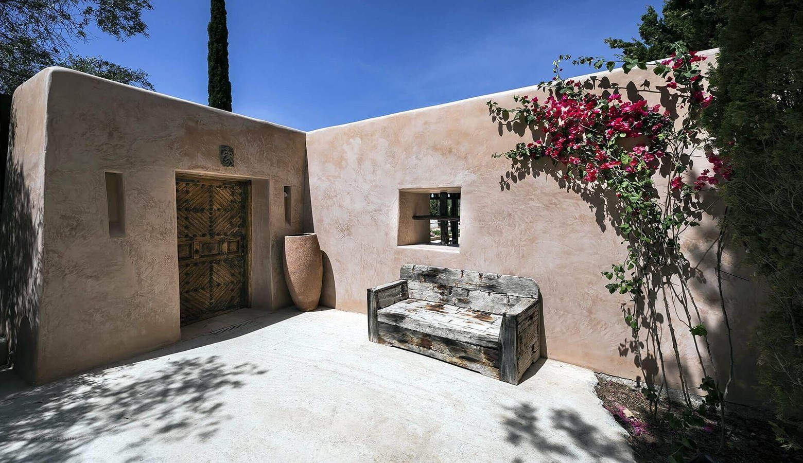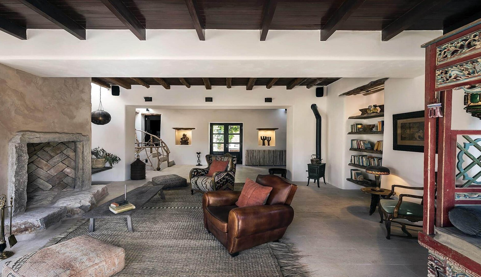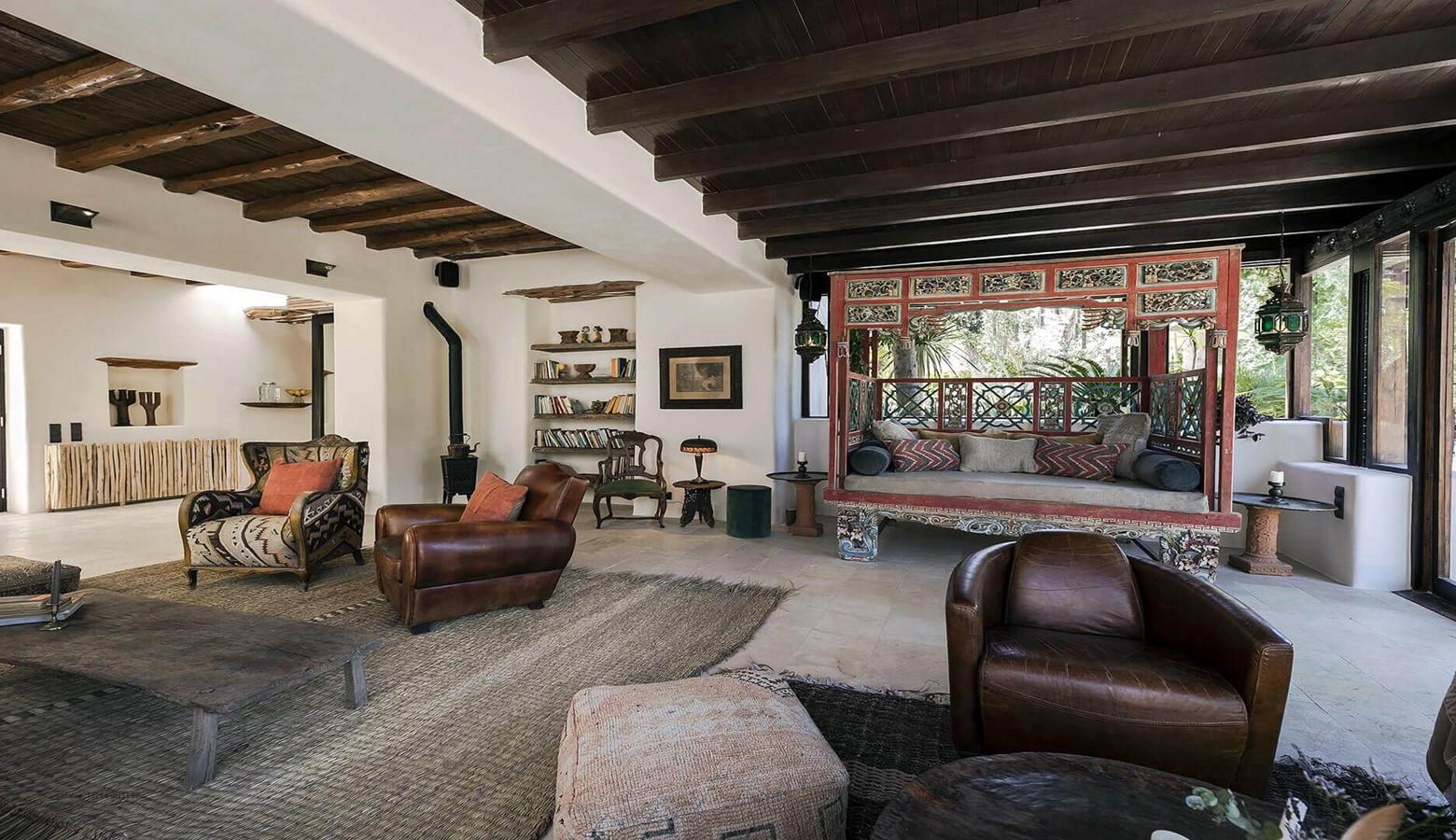 The living room has traditional Sabina wood ceiling and whitewashed walls
