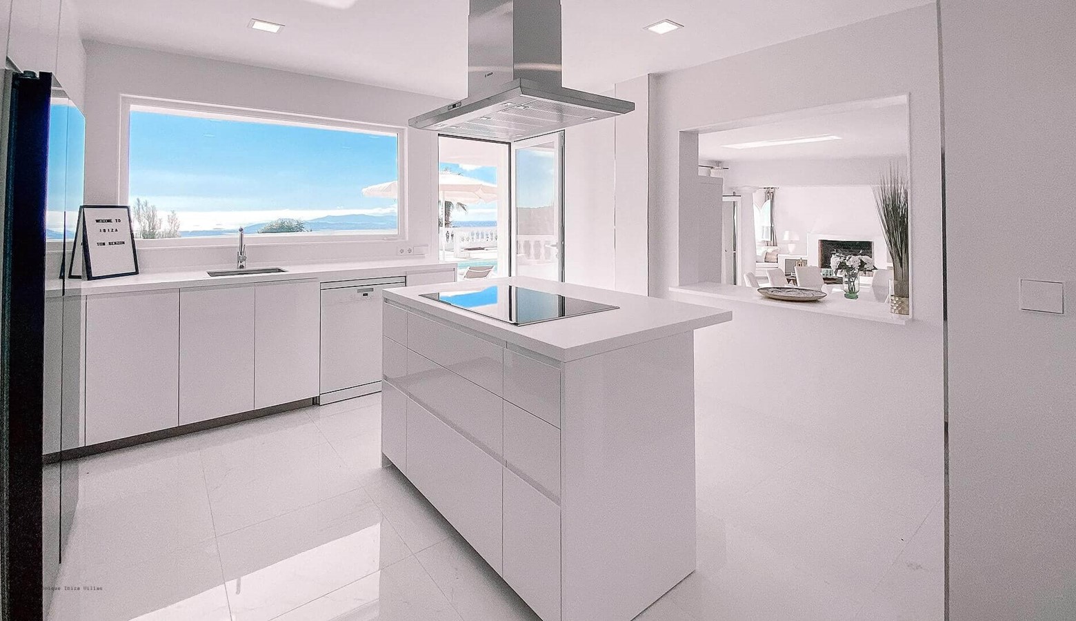 Villa The White Pearl is a modern villa located in the upmarket gated residential area of Can Furnet, (Can Fornet) close to Ibiza Town and with wonderful panoramic views sweeping across to the Mediterranean and coastline of Ibiza