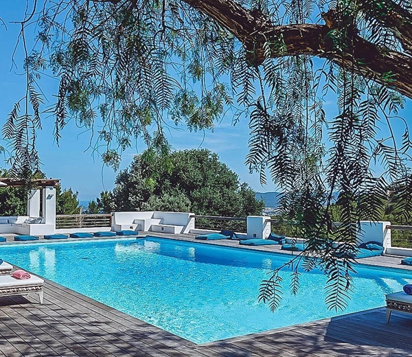 Views, views, views, at Villa Allison; a 6-bedroom modernised finca in the area upmarket residential area of Cap Martinet close to Ibiza Town (and even closer to Destino Ibiza /Five Ibiza) with Panoramic sea views (and views to the neighbouring island of Formentera) as well as the old town of Ibiza (known as the Dalt Vila and where with the magnificent 14th Century Gothic church sits)
