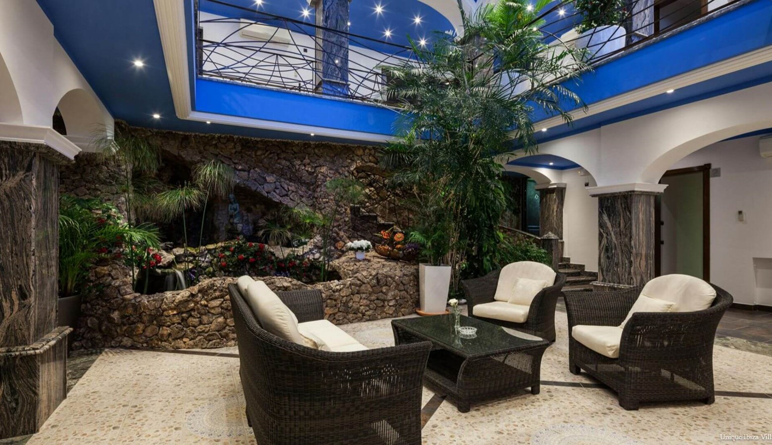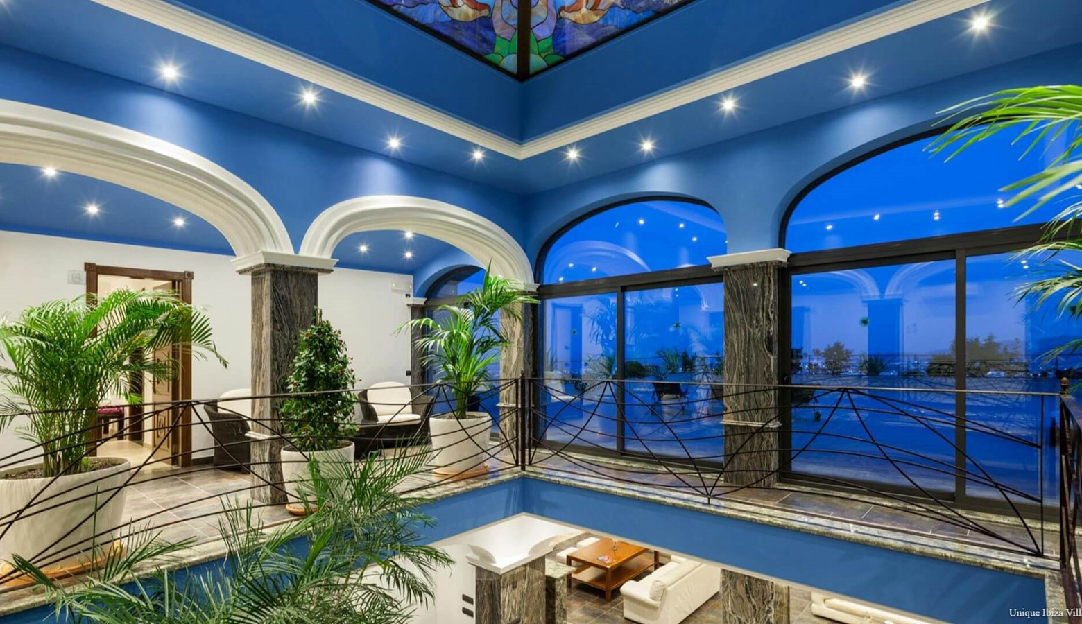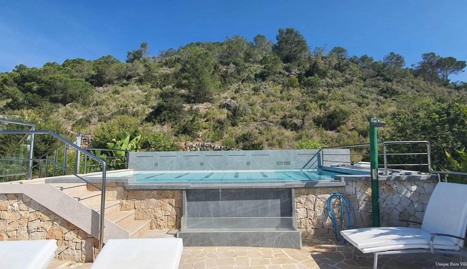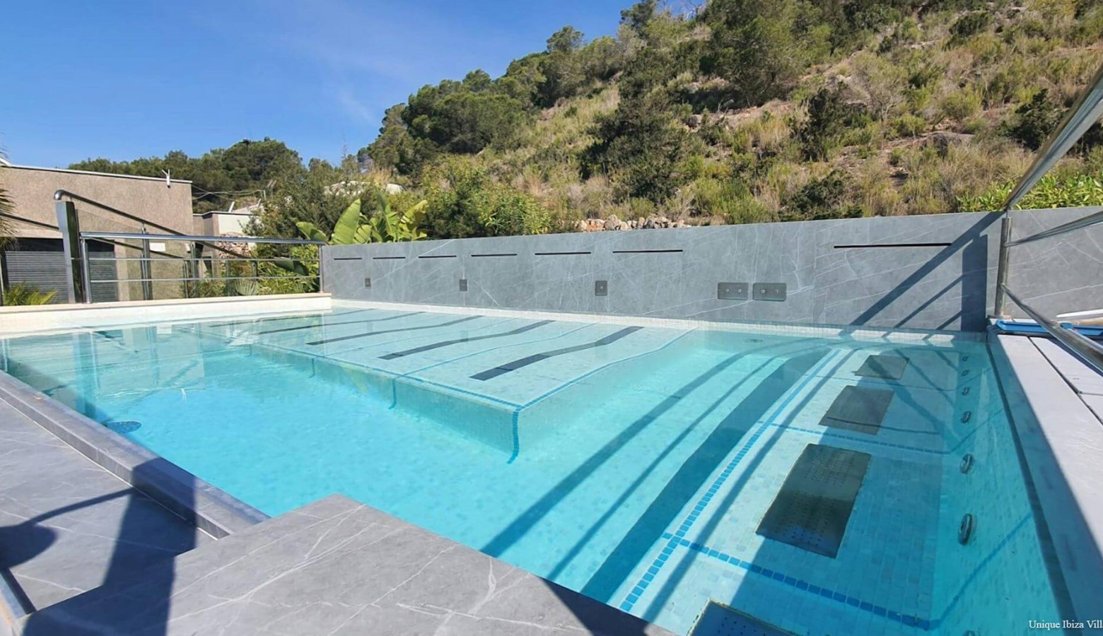 Villa Fuente de Ibiza is situated on the hillside near Ibiza Town and Playa den Bossa with wonderful panoramic sea views. This private high-end uniquely styled villa sleeps 12 and is located close to the Sa Carroca area which is located between Ibiza Town & Playa den Bossa. From the pool area and most of the bedrooms you can enjoy panoramic sea views, down to Playa den Bossa and across to the historic Dalt Vila (old Ibiza Town).