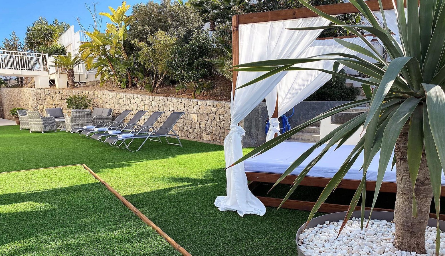 Villa Romeo has 5 bedrooms and is located in the quiet residential area near Can Pep Simo, Talamanca beach, Jesus village, near Lio & Pacha (2 kms) and around the bay from Ibiza Town (2.5 kms)