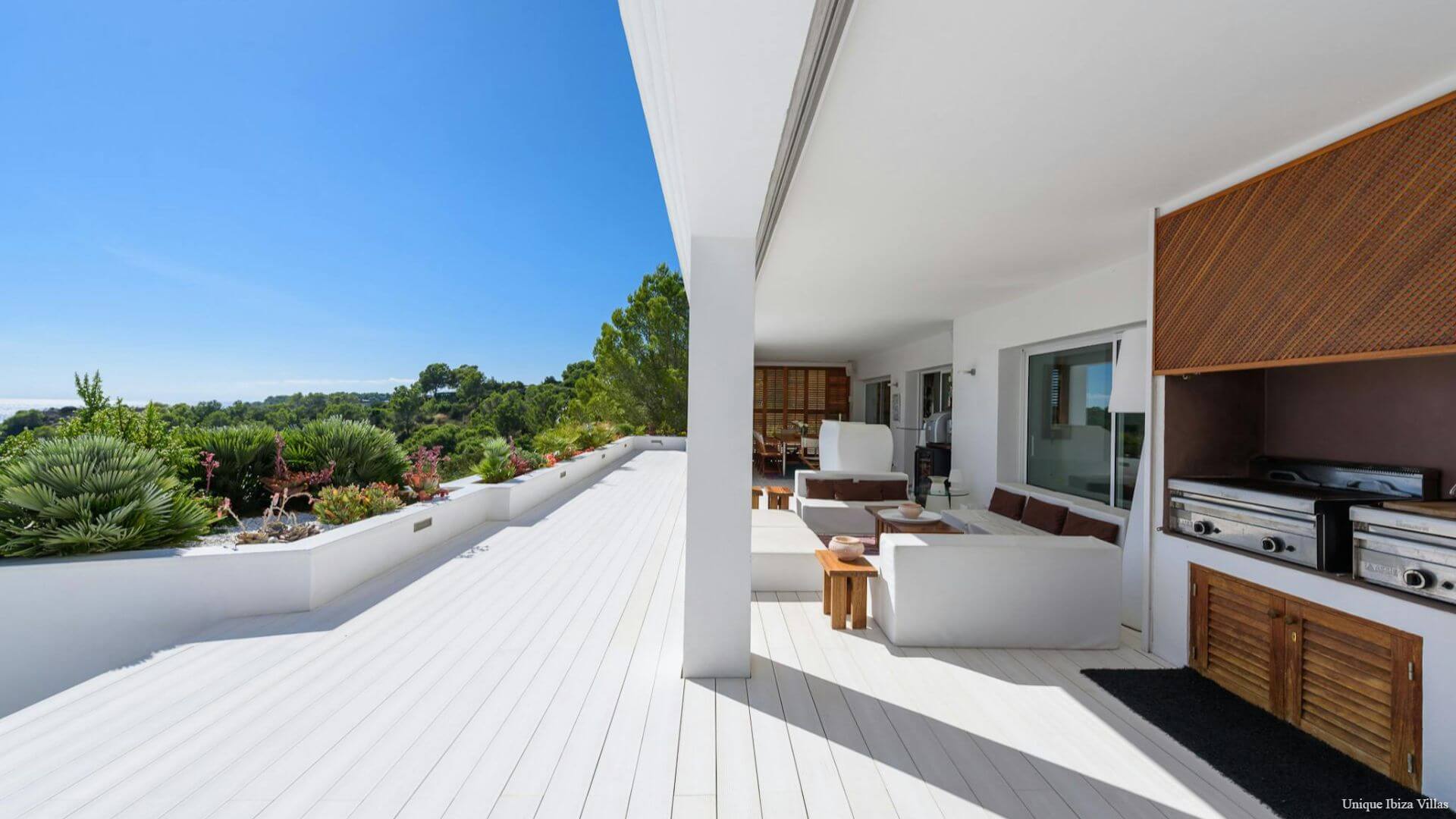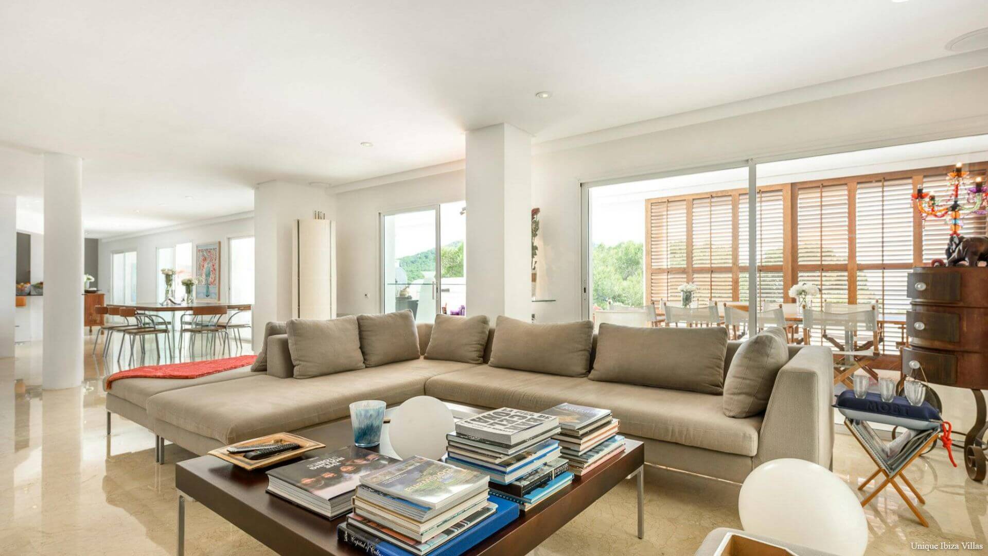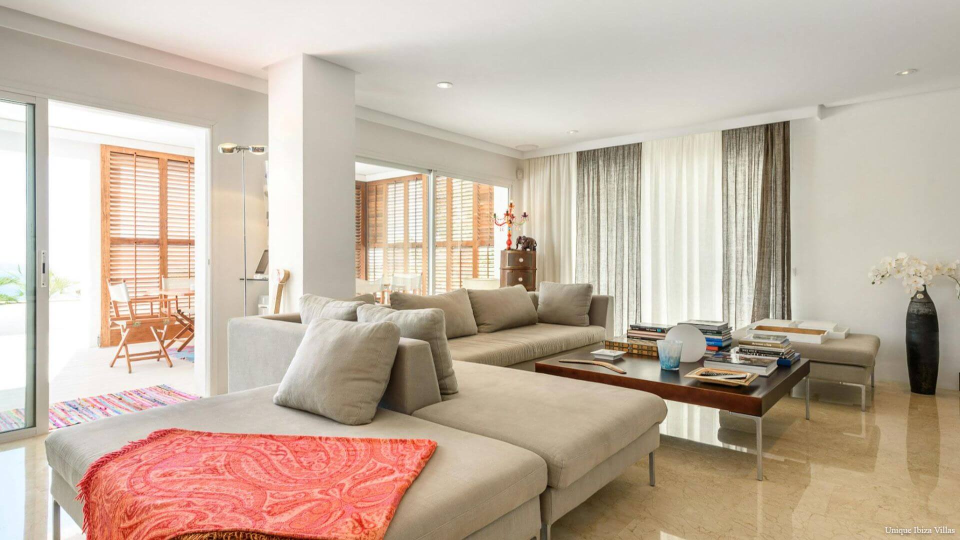 Doors lead to the terrace that runs along the front of the villa