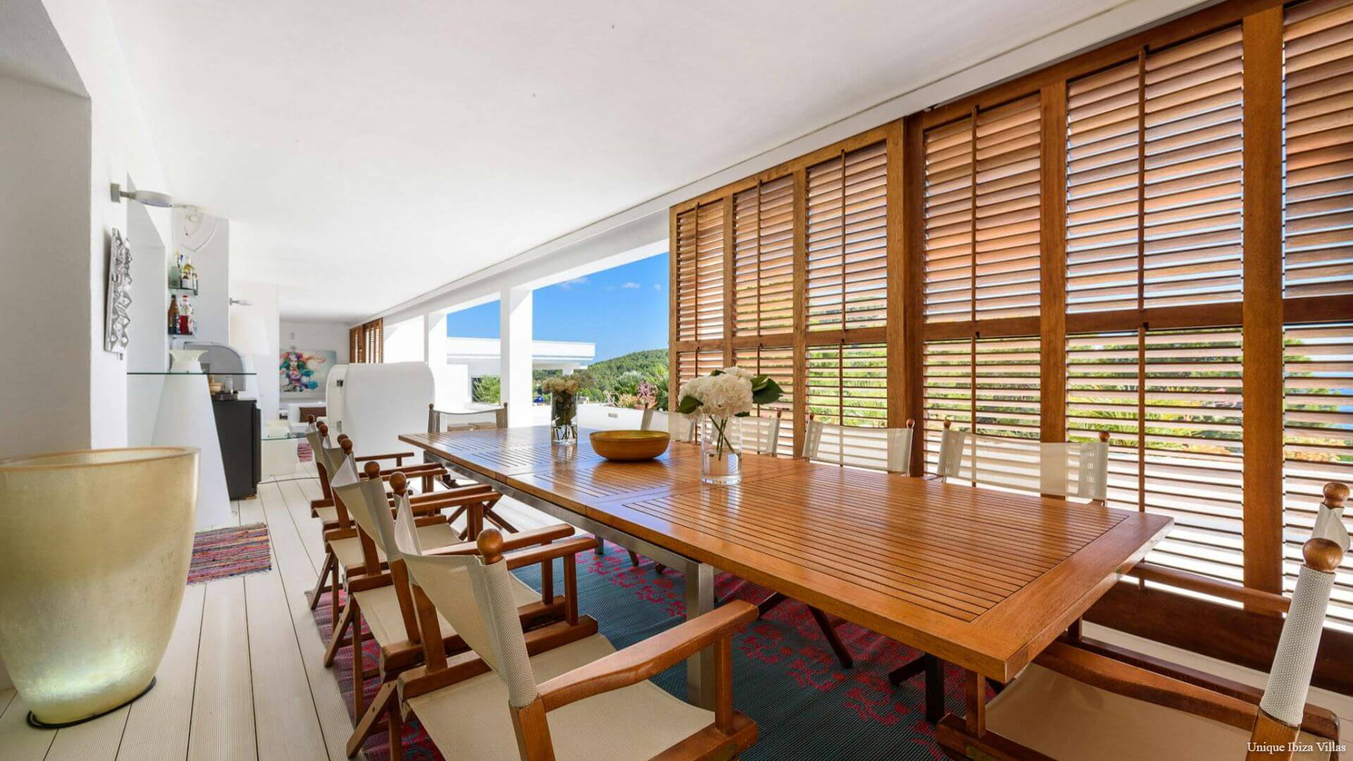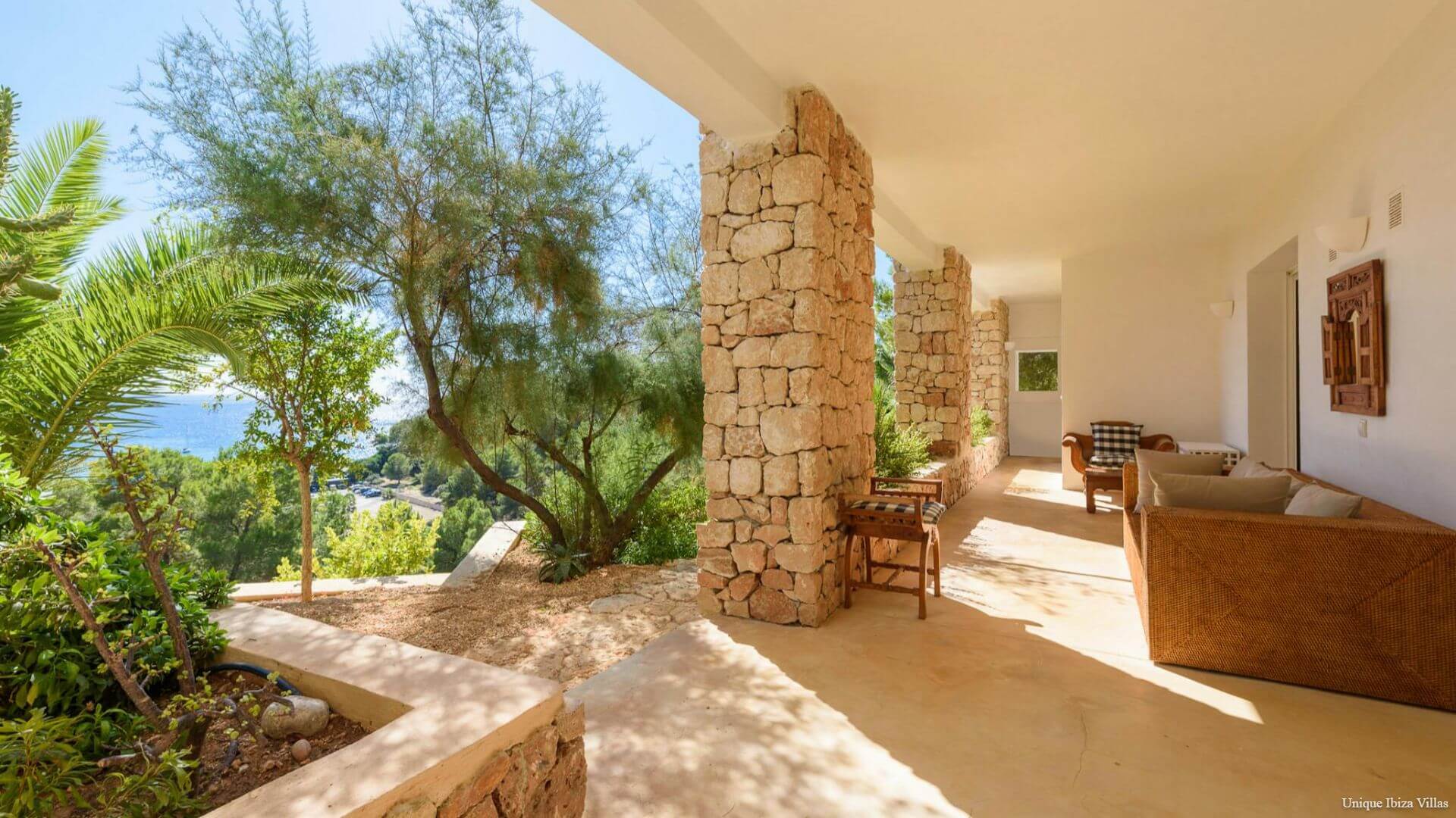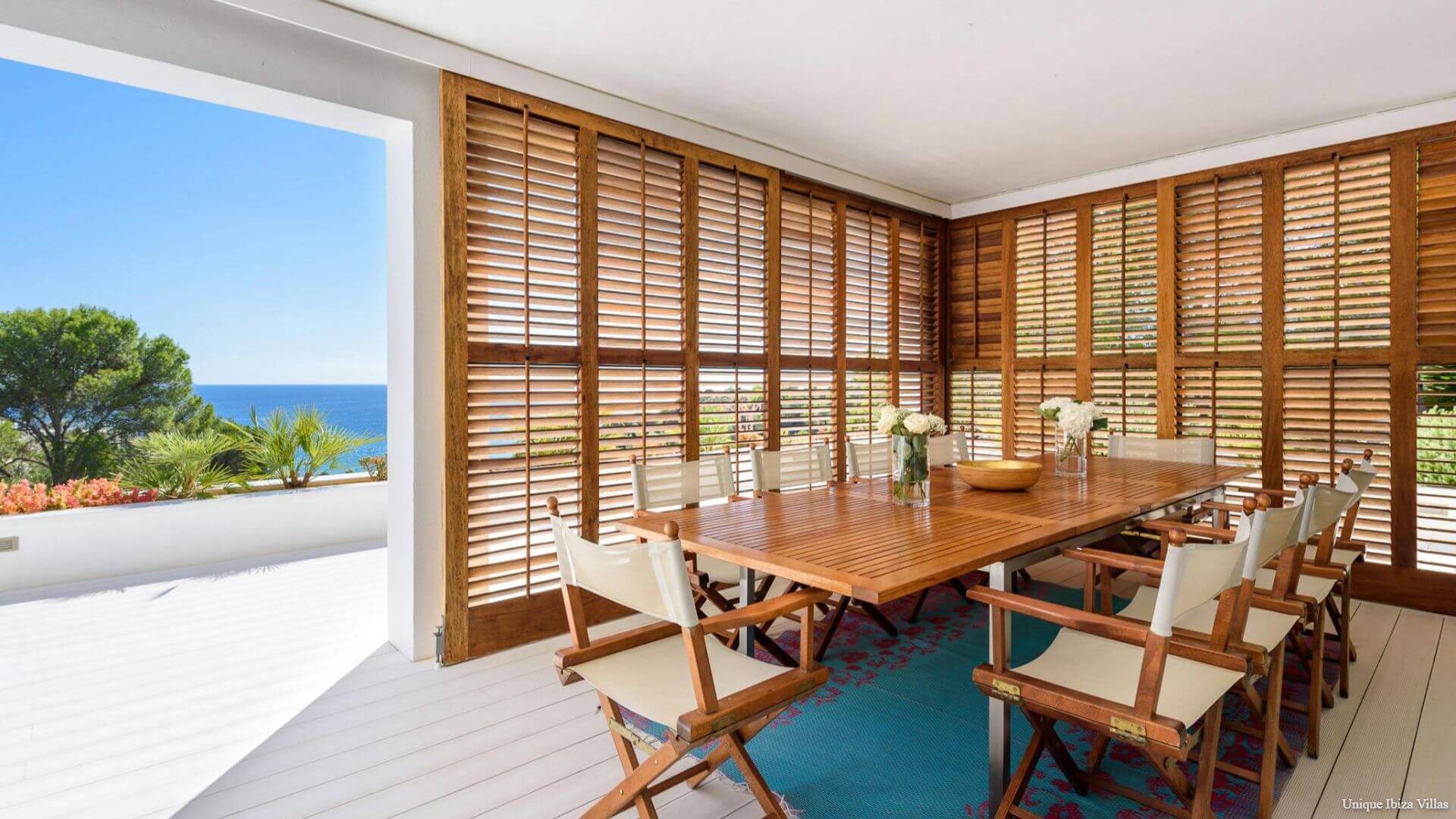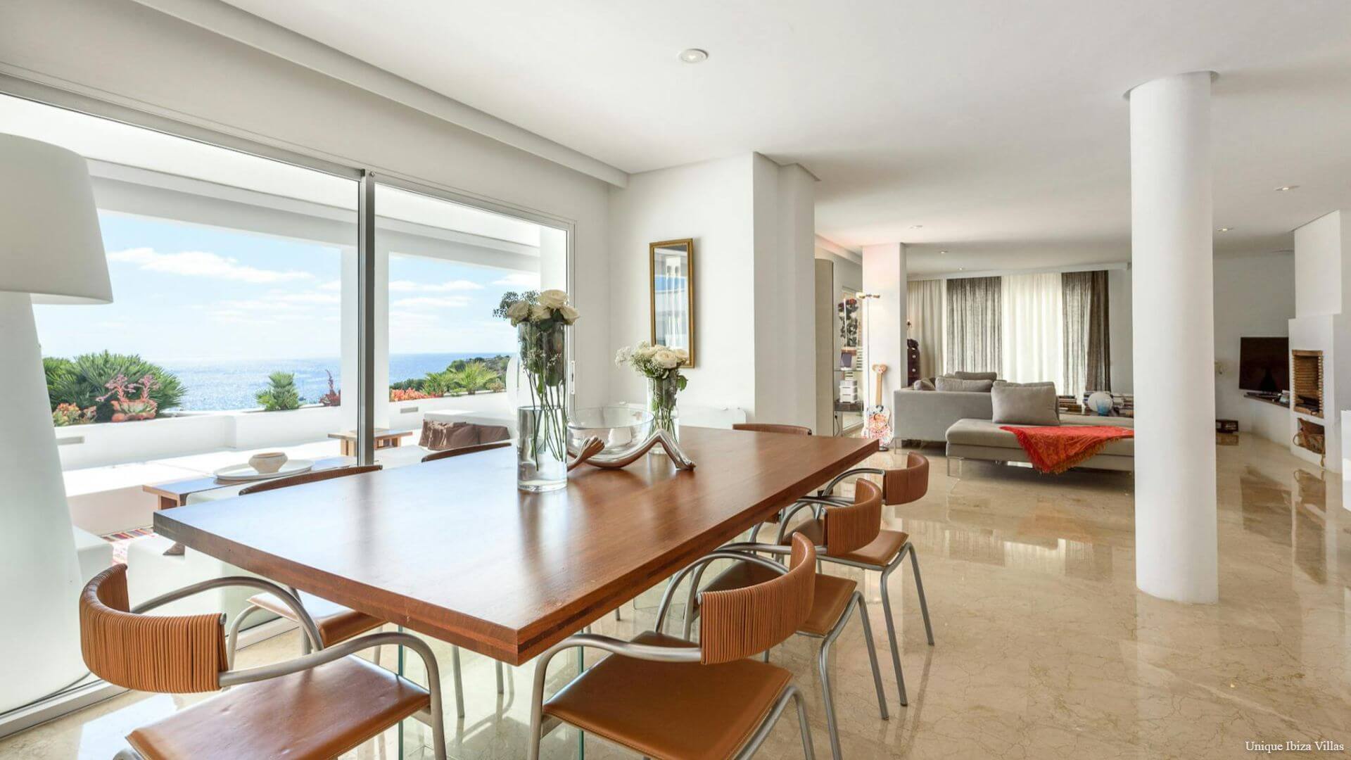 Doors lead to the terrace that runs along the front of the villa