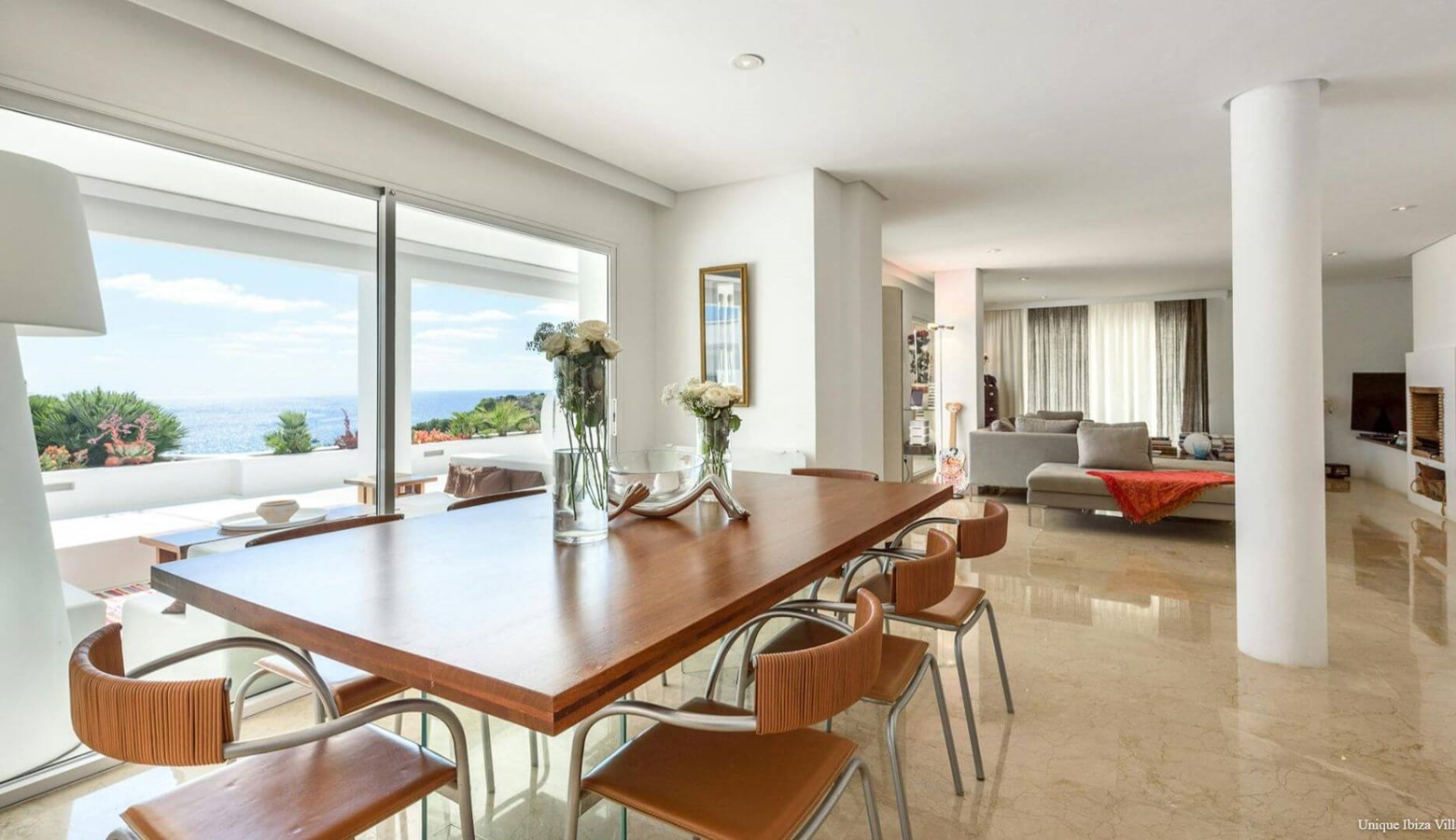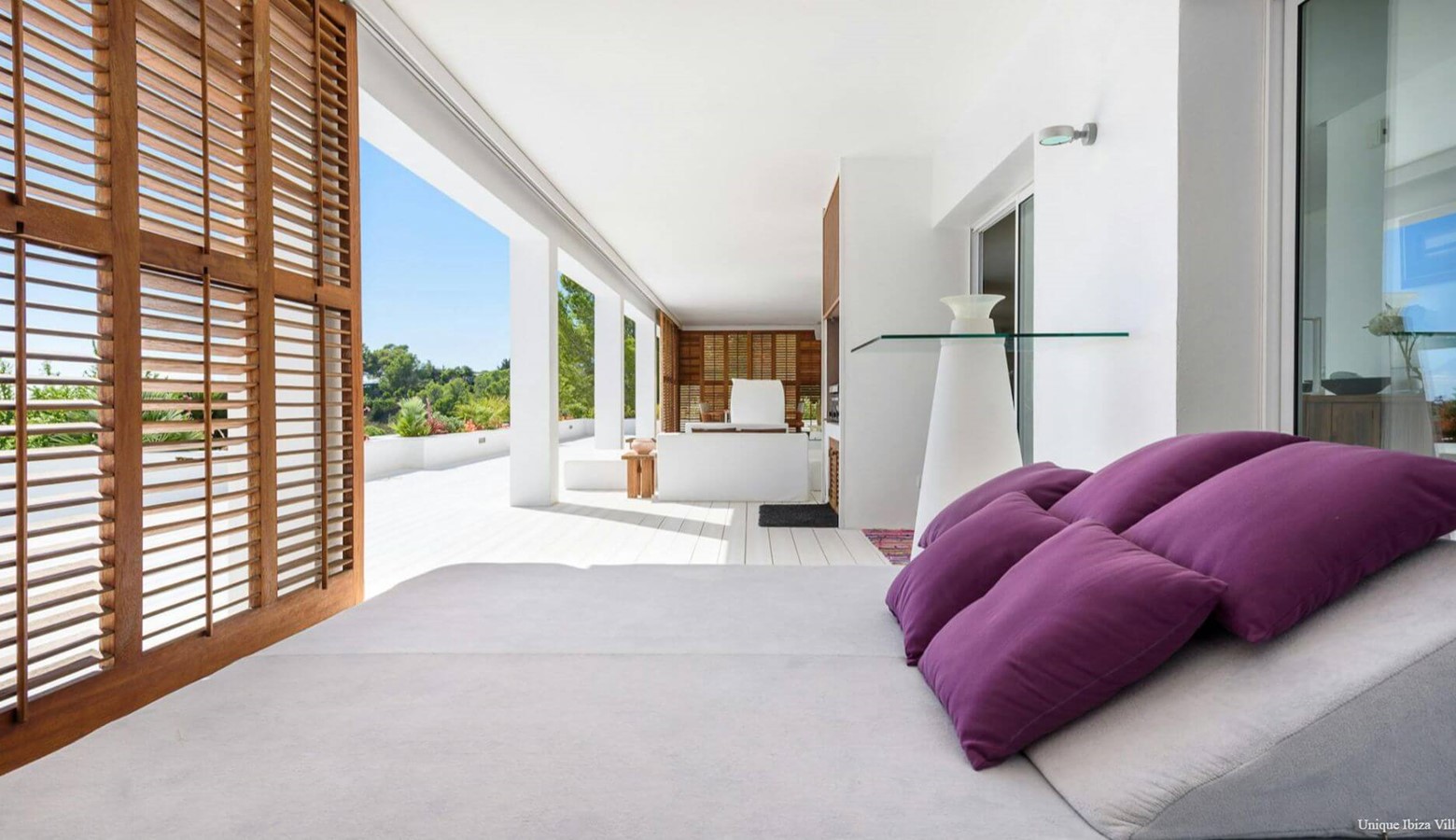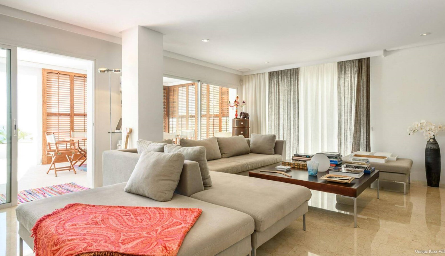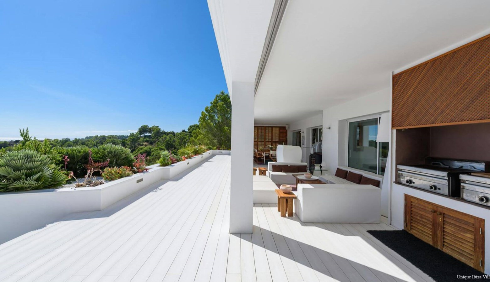 Doors lead to the terrace that runs along the front of the villa