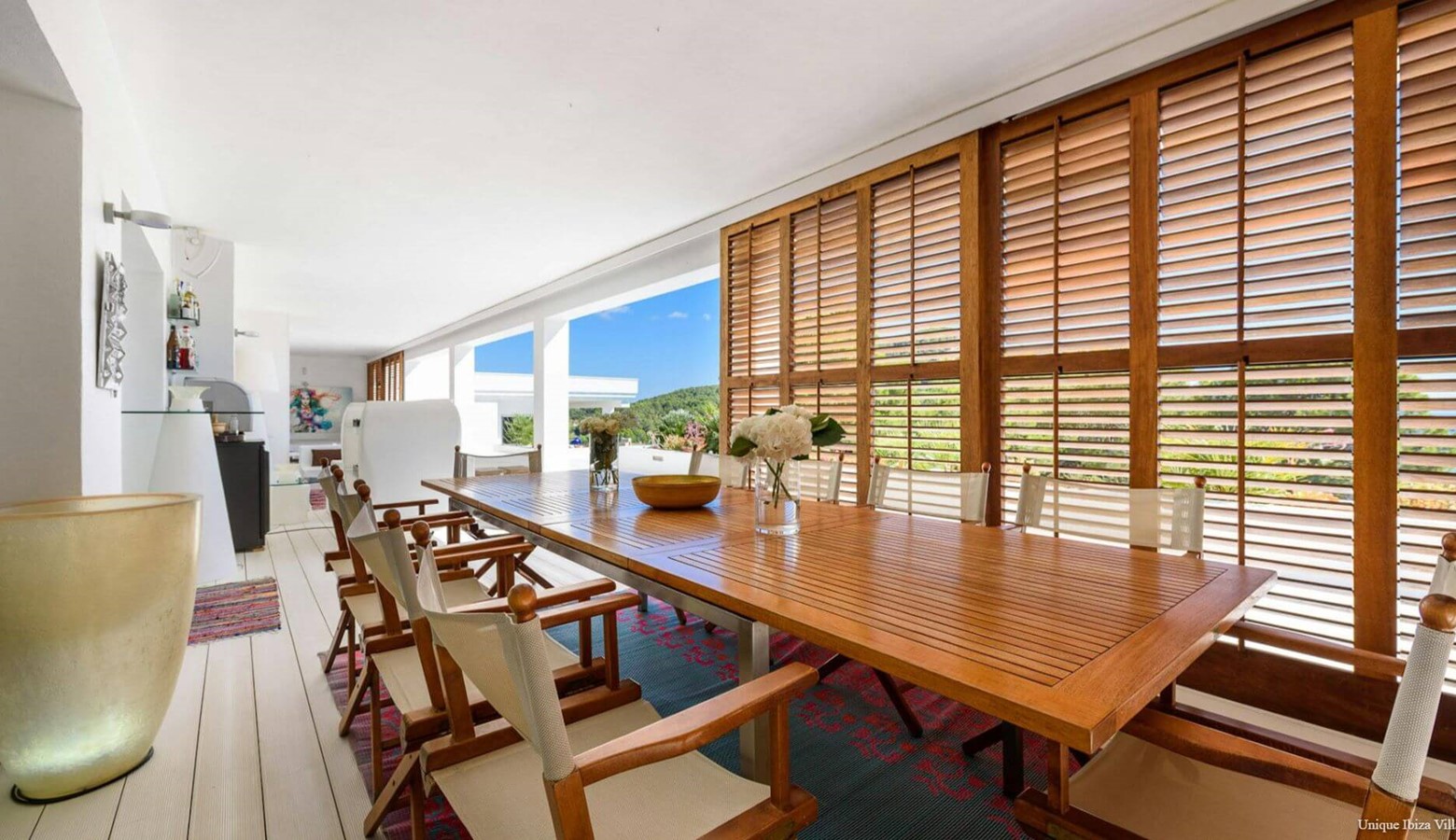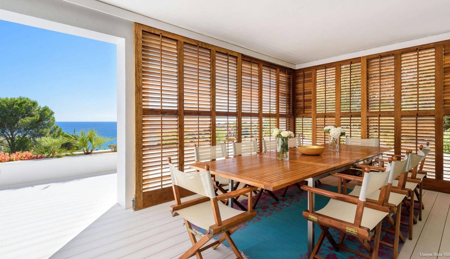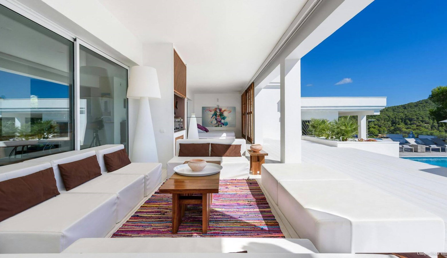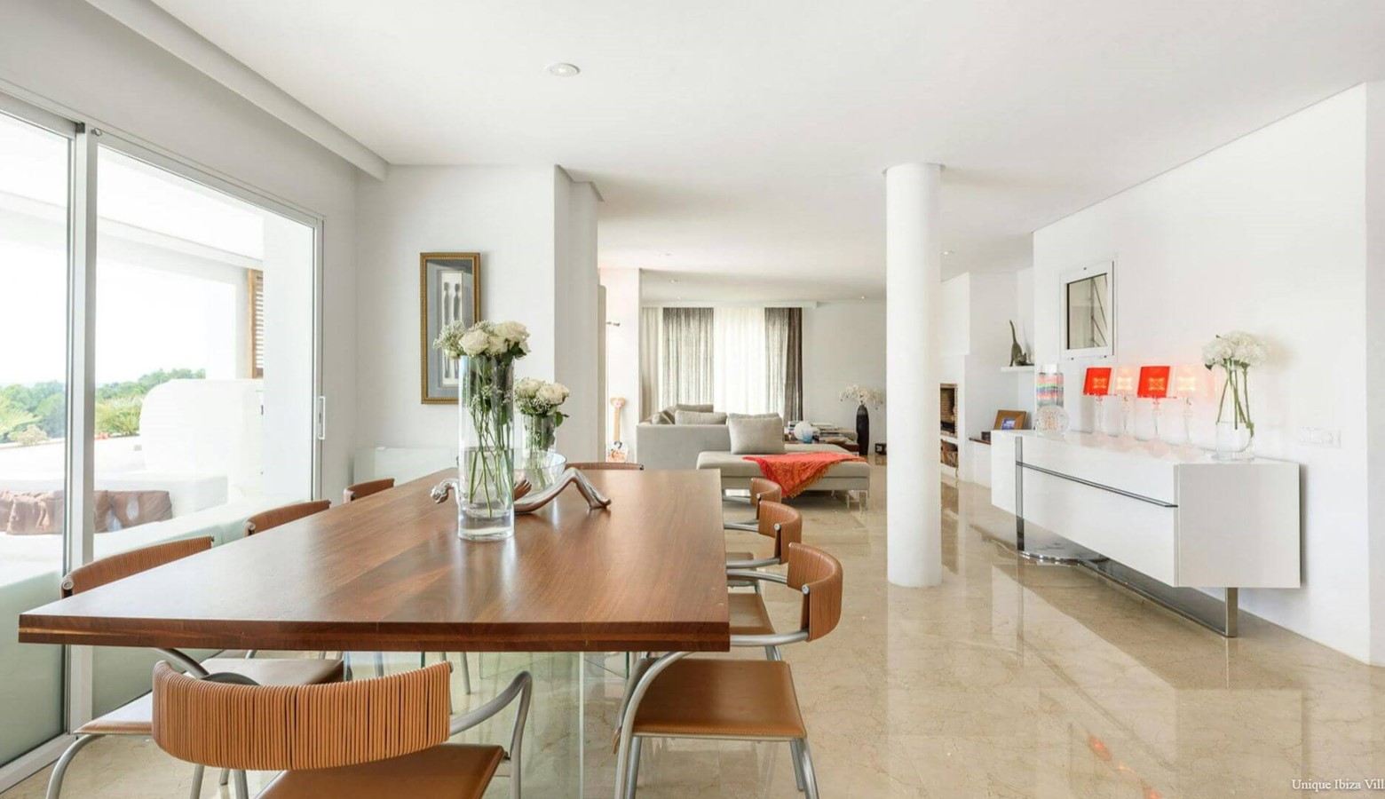 Doors lead to the terrace that runs along the front of the villa