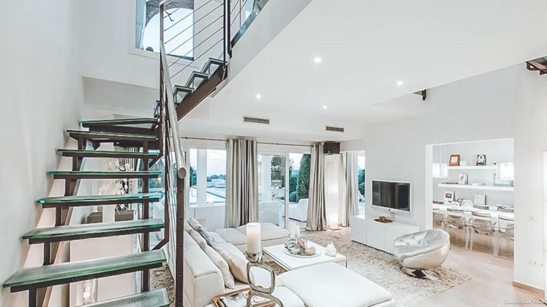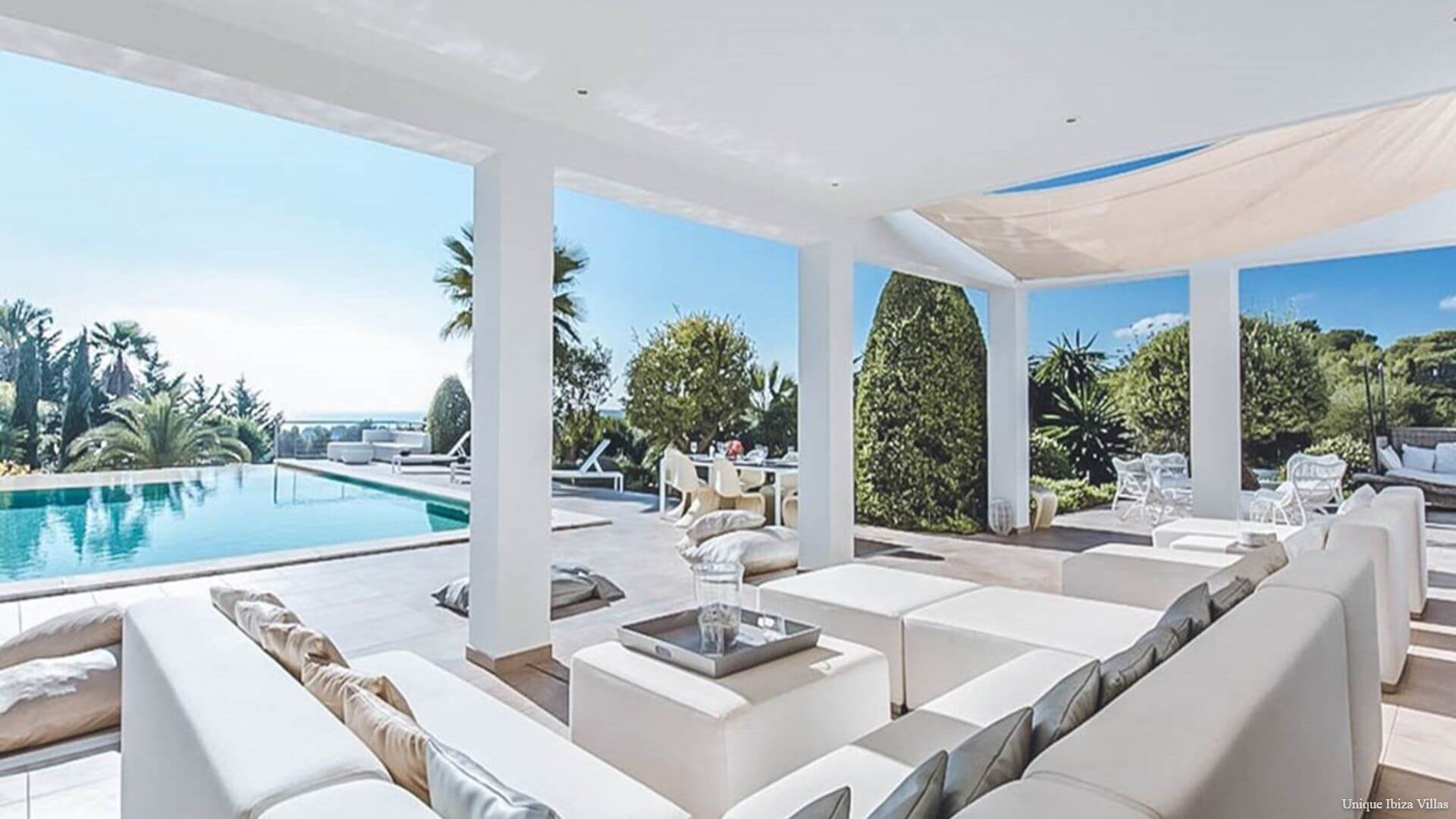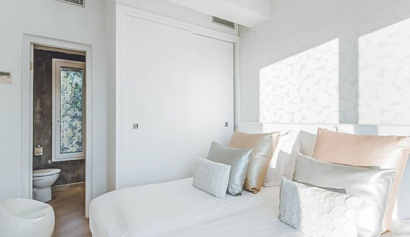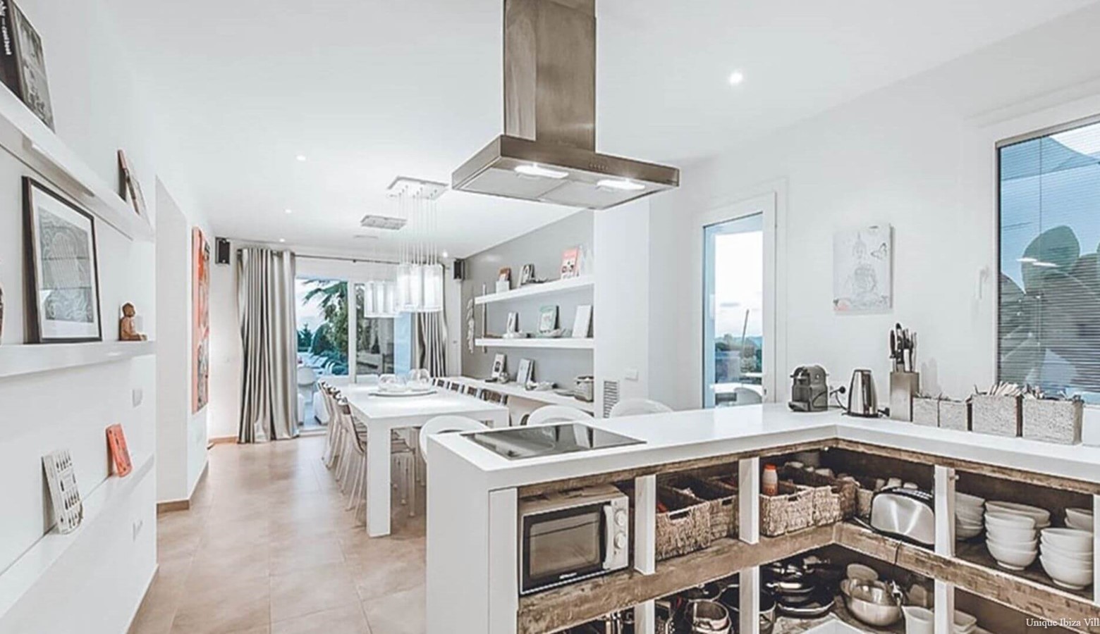 Villa Nia is a 5 bedroom modern villa with sea views and only 2 kilometres to Cala Jondal; a pebbly beach that is home to the beach clubs of Blue Marlin and Tropicana as well as 2 other restaurants that sit in the cove