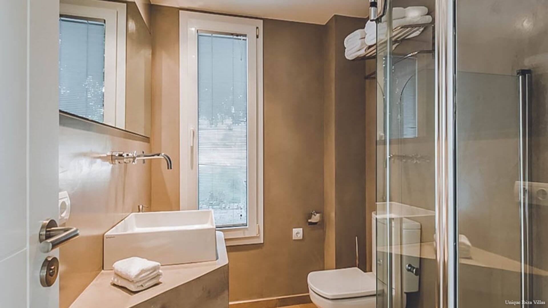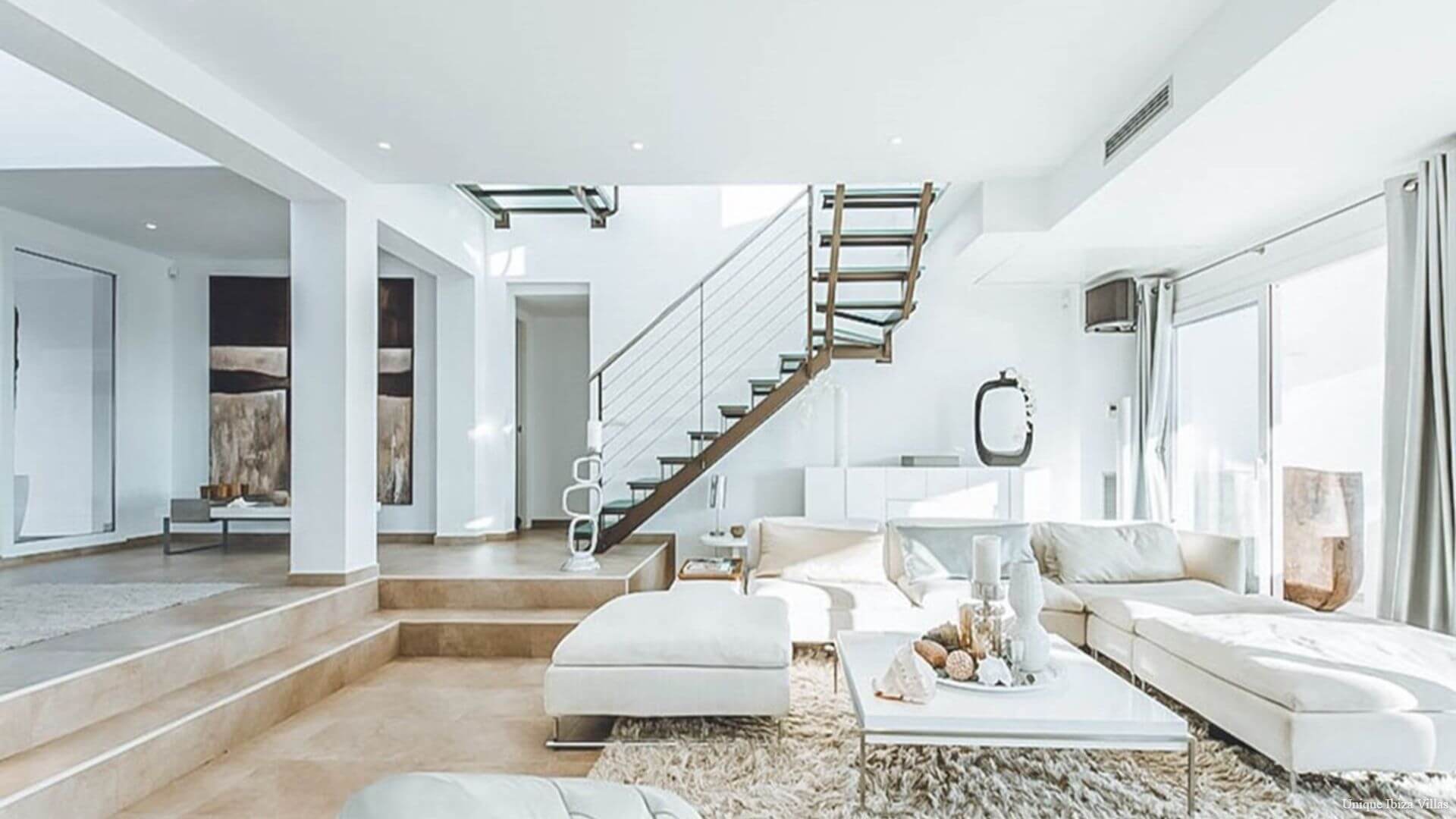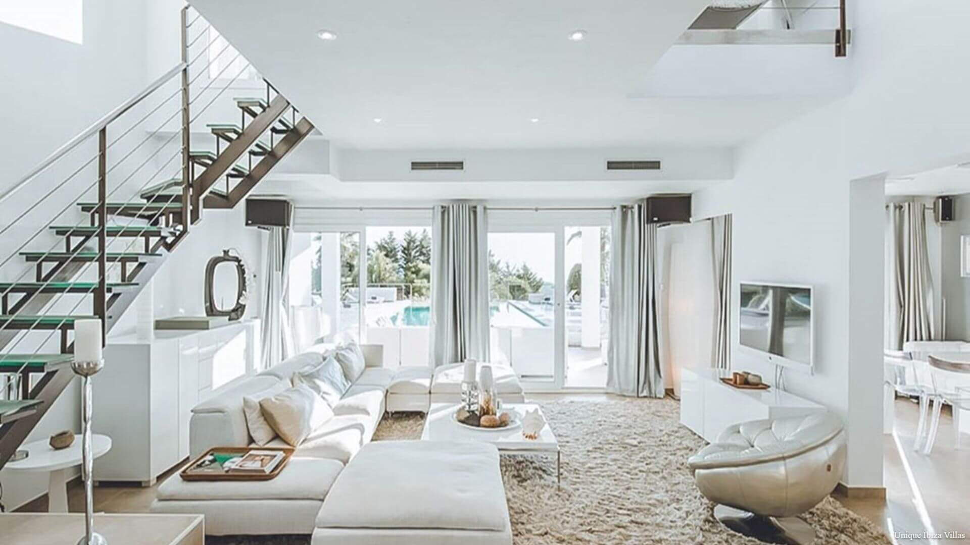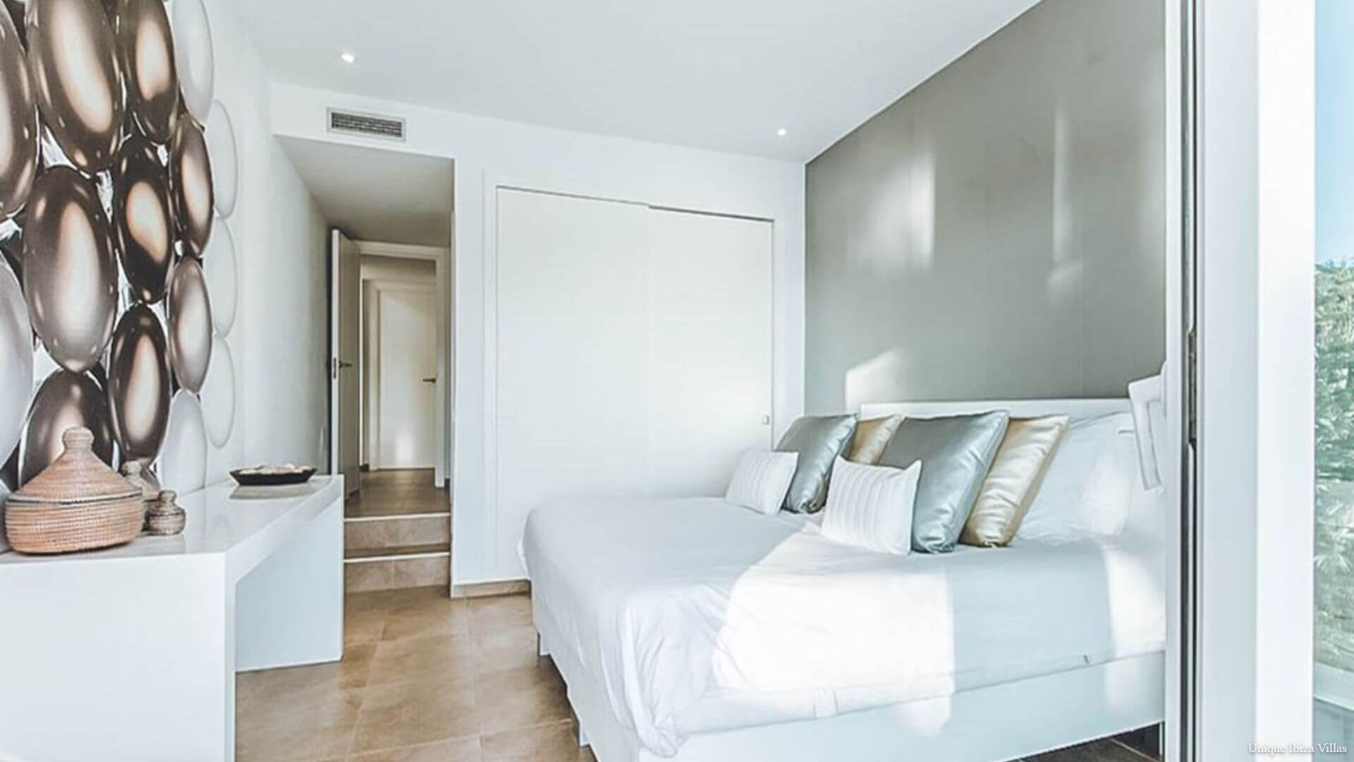 Villa Nia is a 5 bedroom modern villa with sea views and only 2 kilometres to Cala Jondal; a pebbly beach that is home to the beach clubs of Blue Marlin and Tropicana as well as 2 other restaurants that sit in the cove