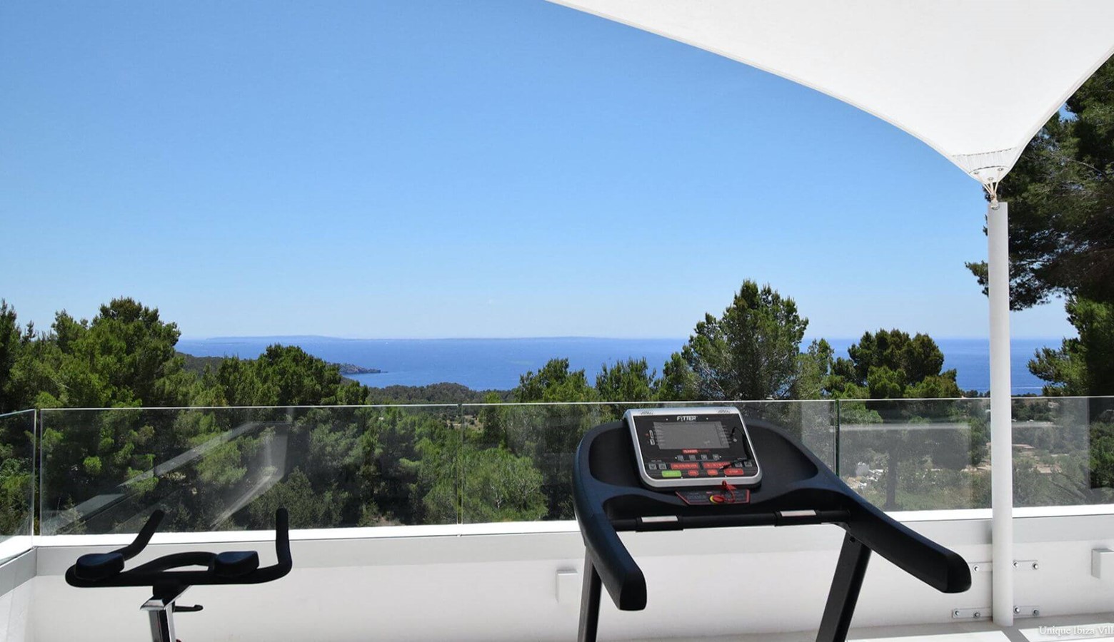 bed, air conditioning, terrace with sea views (and a treadmill),