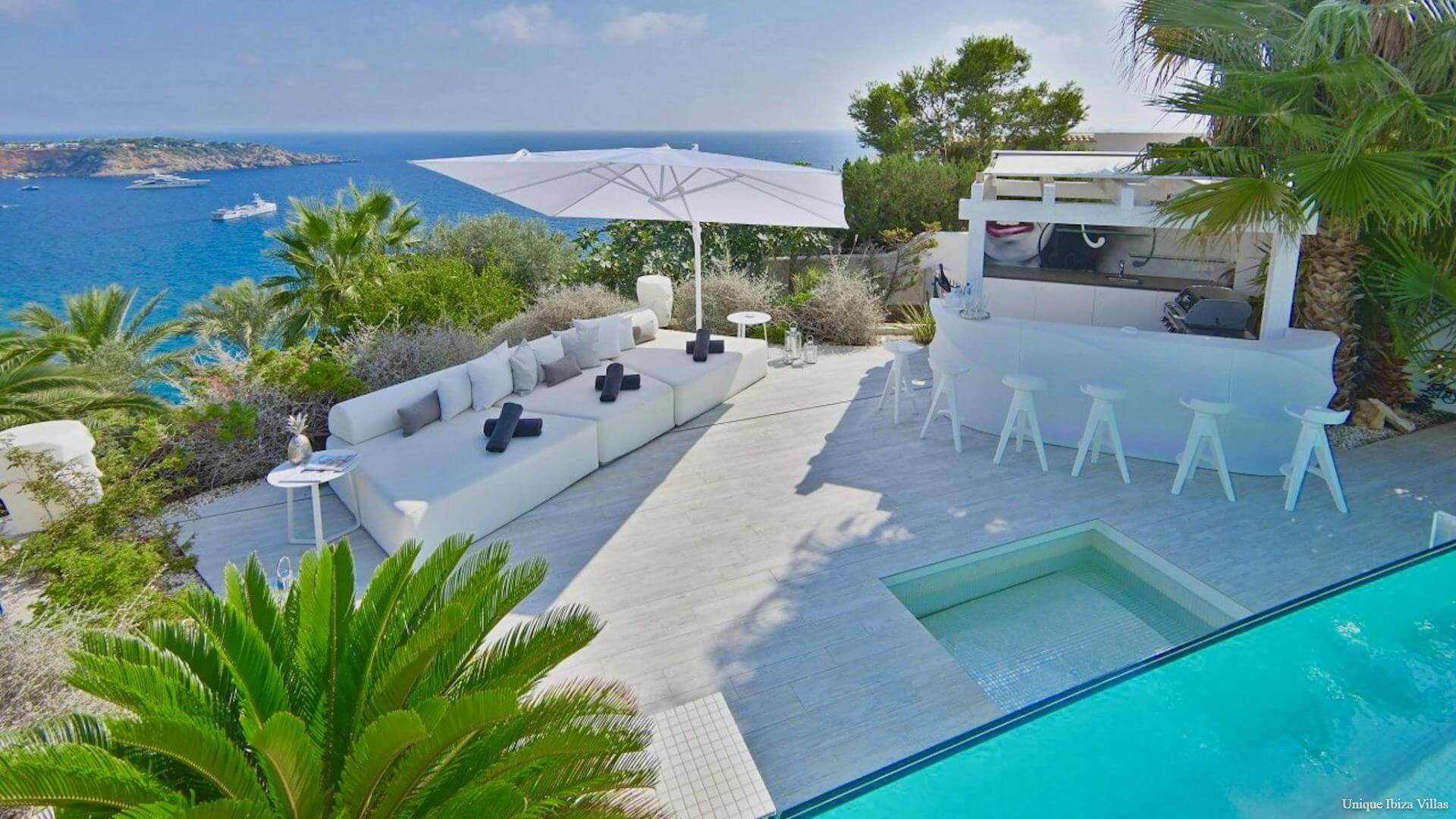 Villa Buena is a 3 bedroom high-end modern sea front villa sat on the clifftop on the south west coast within the gated community of Vista Alegre in the area of San Jose (Near the village of Sant Josep de sa Talaia)