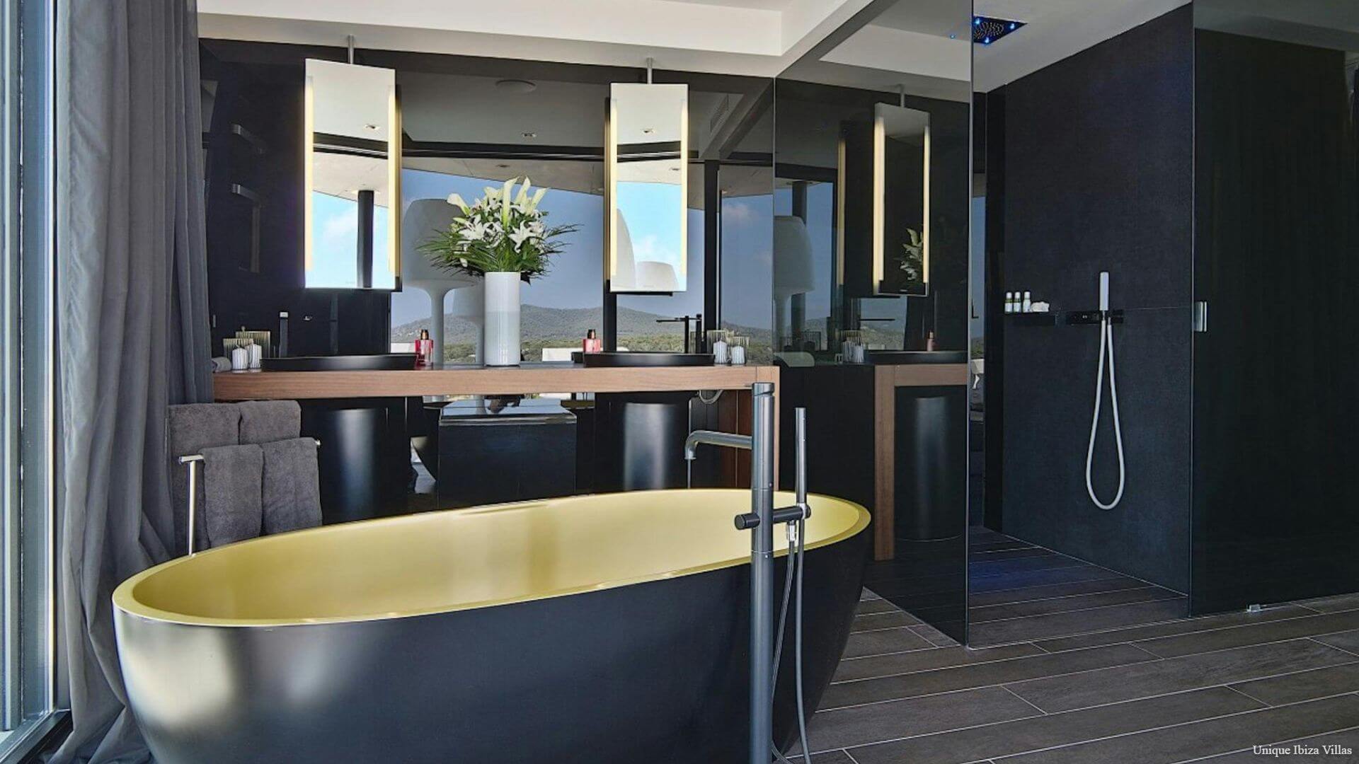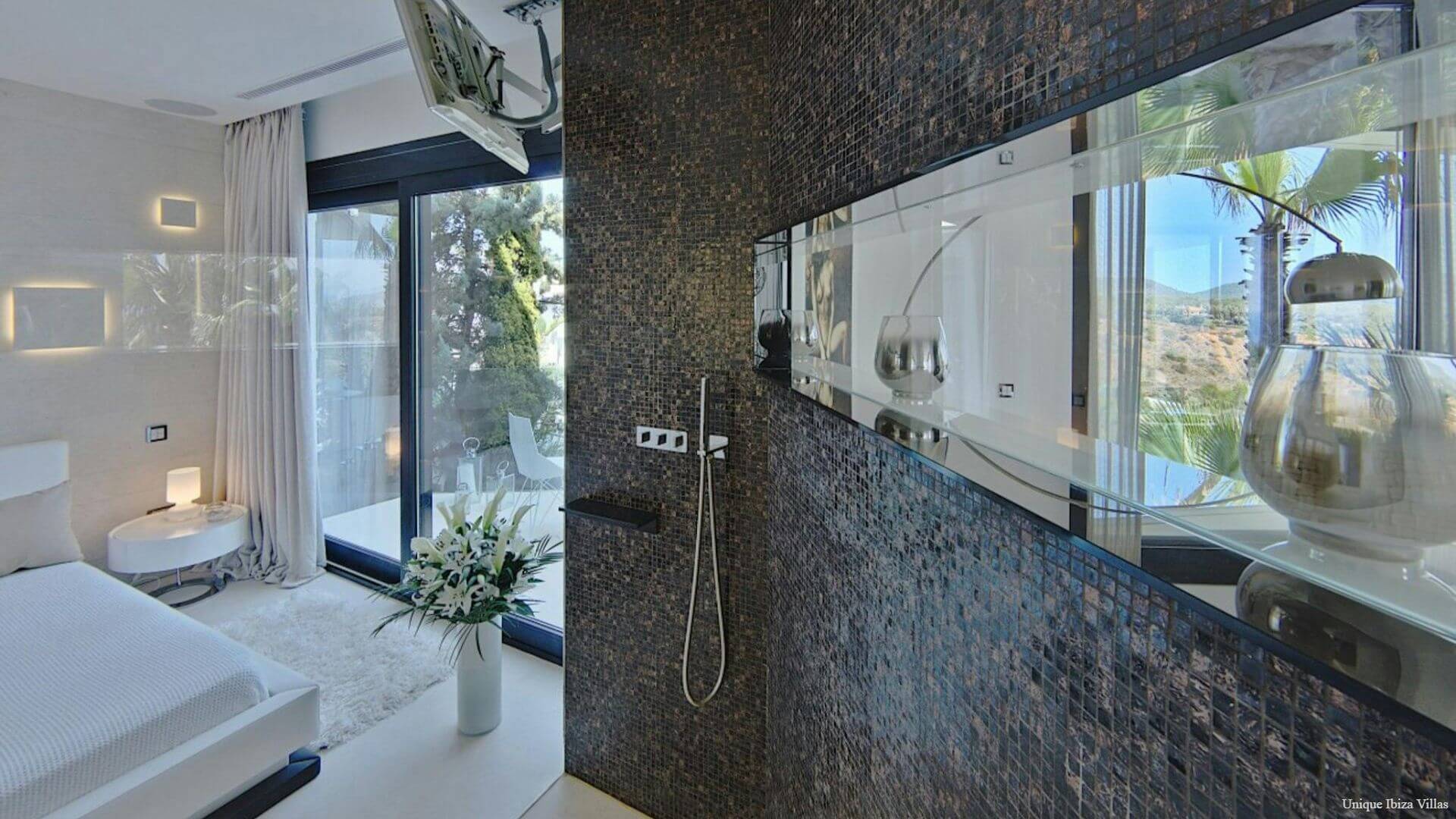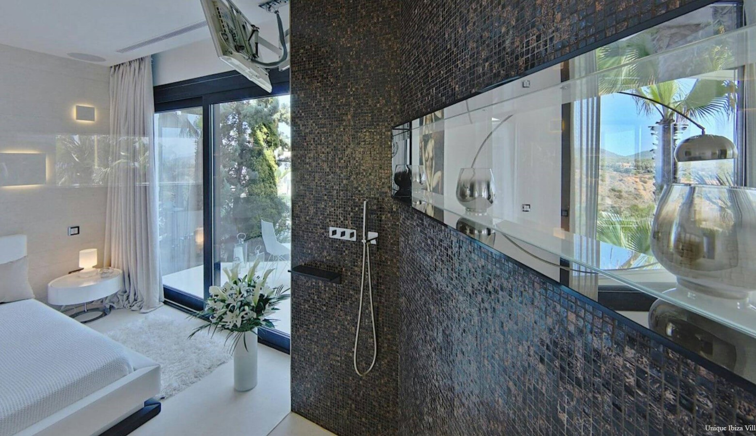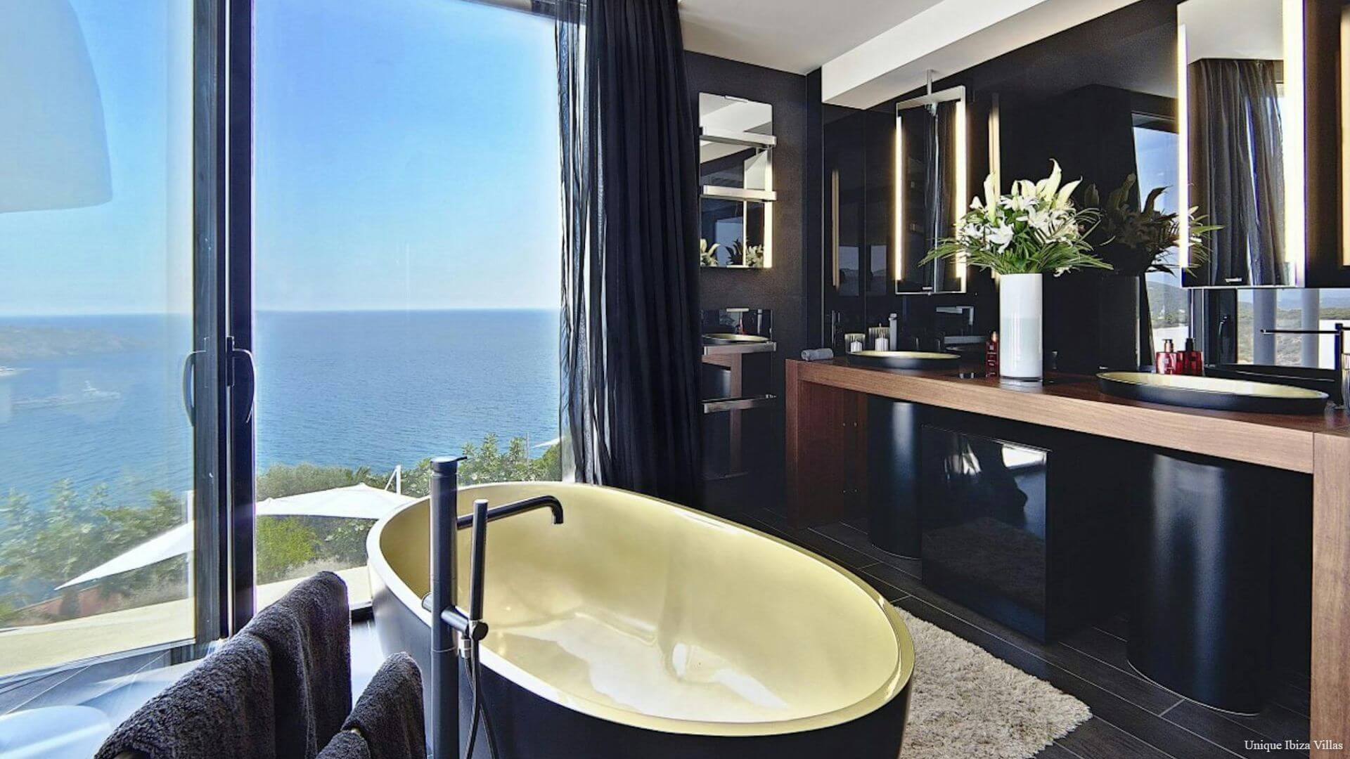 Master suite with Circular king size bed, open plan free standing bathtub, large terrace with sea views large daybeds and hot tub/jacuzzi