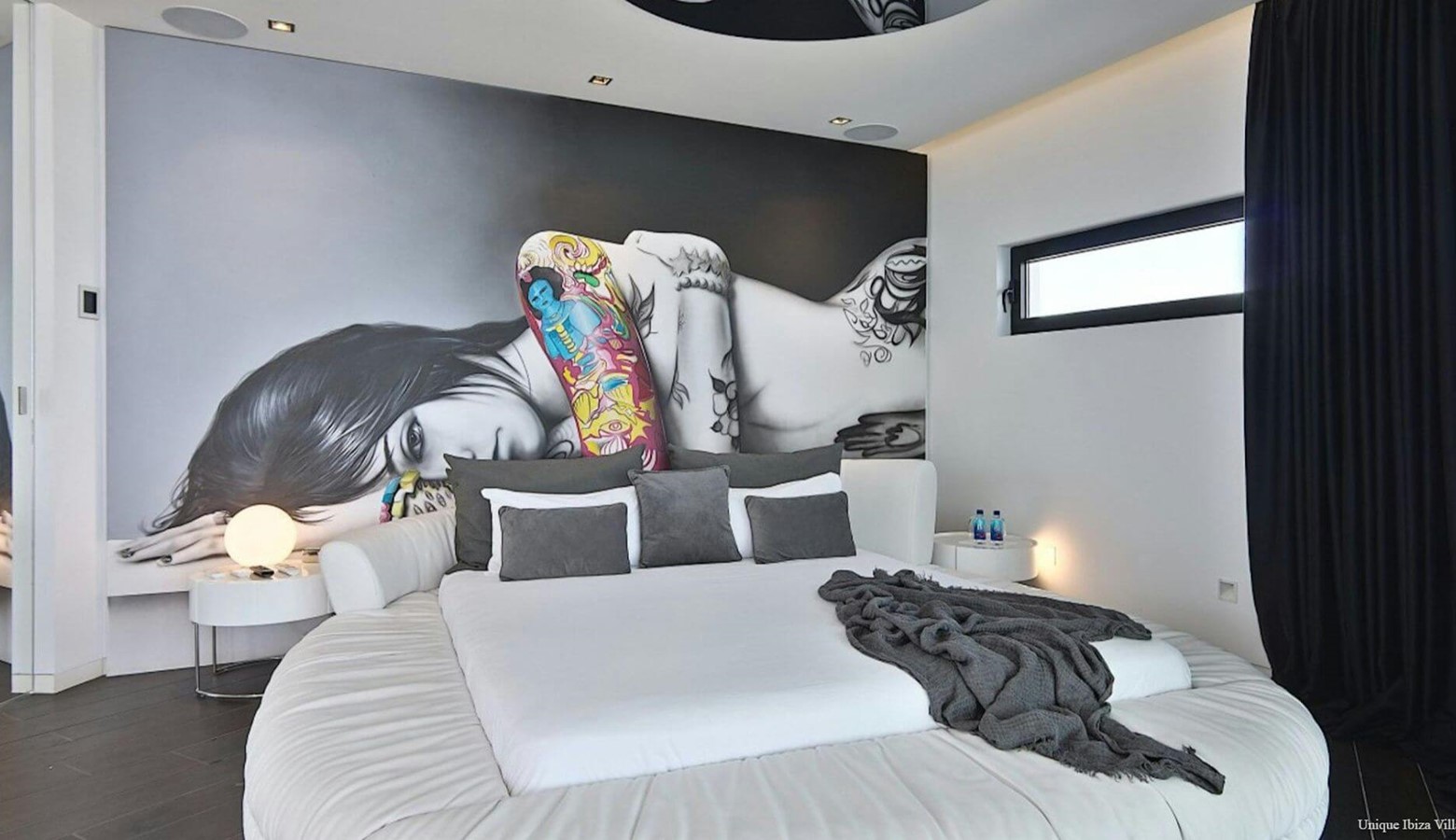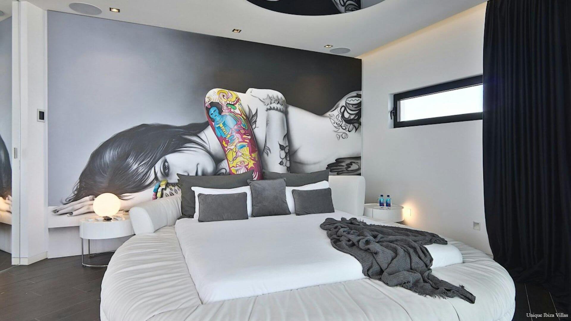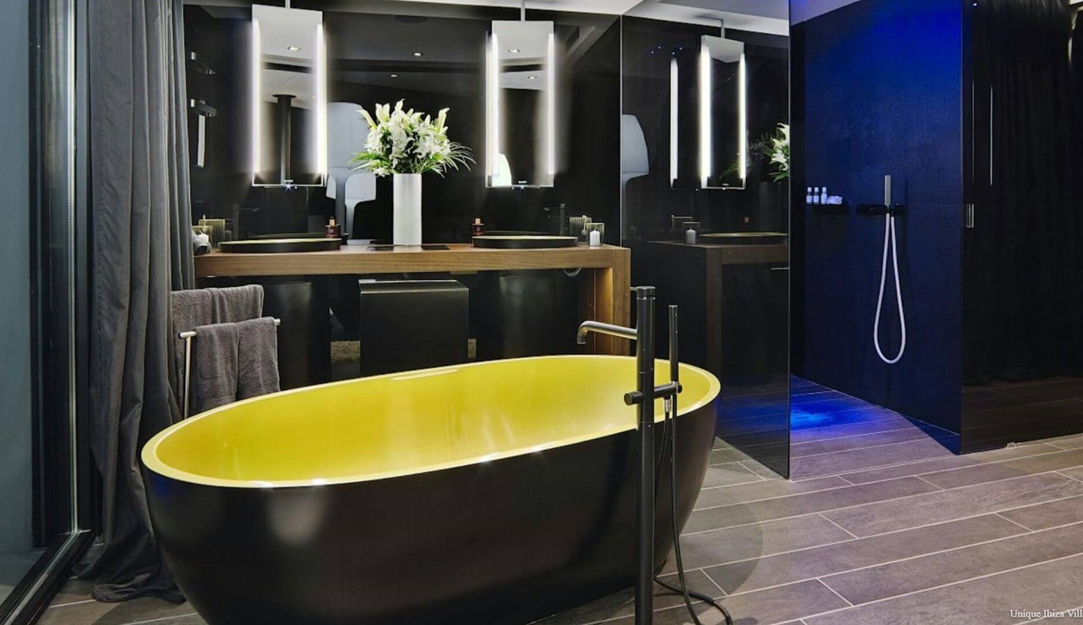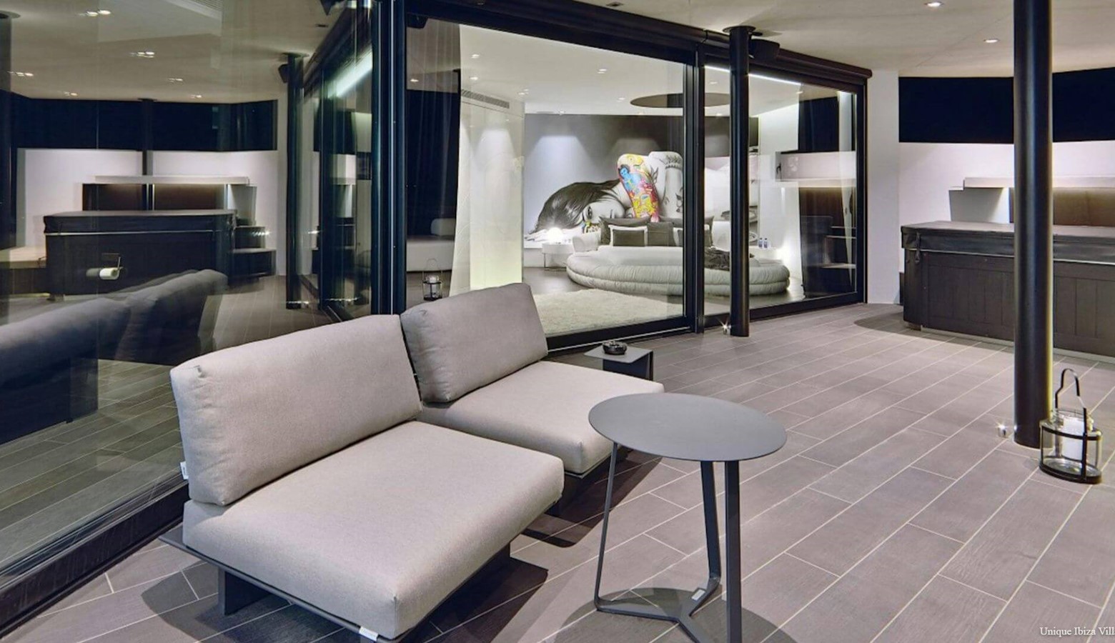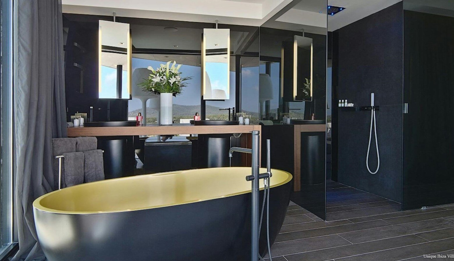 Master suite with Circular king size bed, open plan free standing bathtub, large terrace with sea views large daybeds and hot tub/jacuzzi