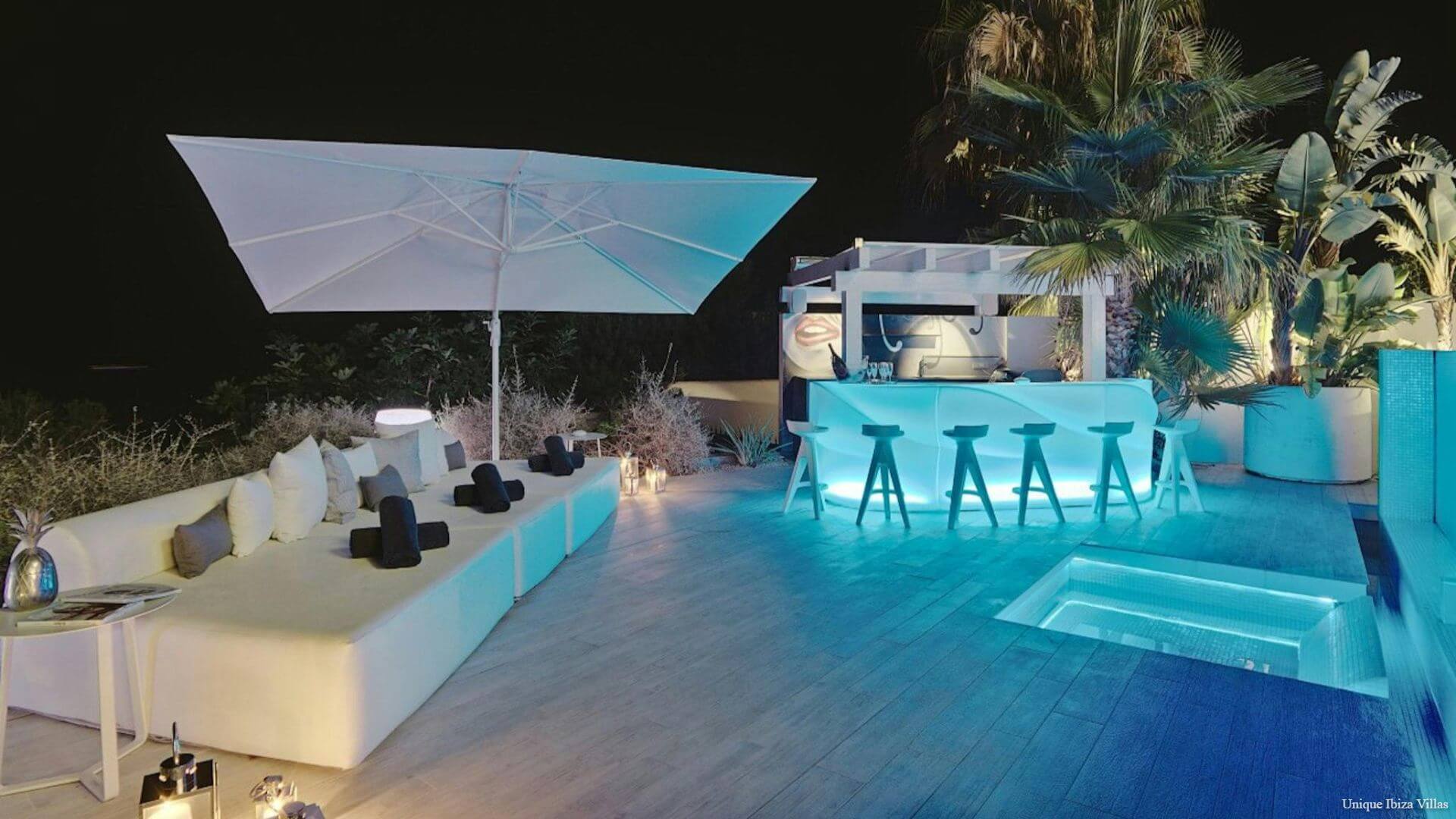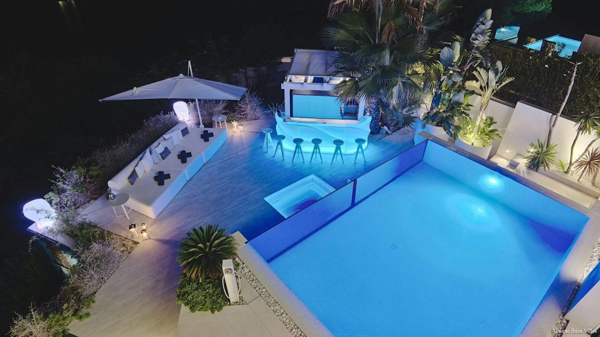 Villa Buena is located on the clifftop on the south west coast within the gated community of Vista Alegre in the area of San Jose (Near the village of Sant Josep de sa Talaia). Nearby beaches include the smaller ones of Es Torrent & Ses Boques where you will find some of the best sea food restaurants in Ibiza. The beach restaurants of Tropicana and Blue Marlin are 9 kilometres away