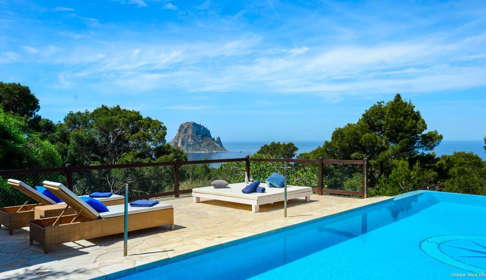 West coast Ibiza with some of the best views by day and at sunset with the imposing rock of Es Vedra providing the backdrop to your villa stay