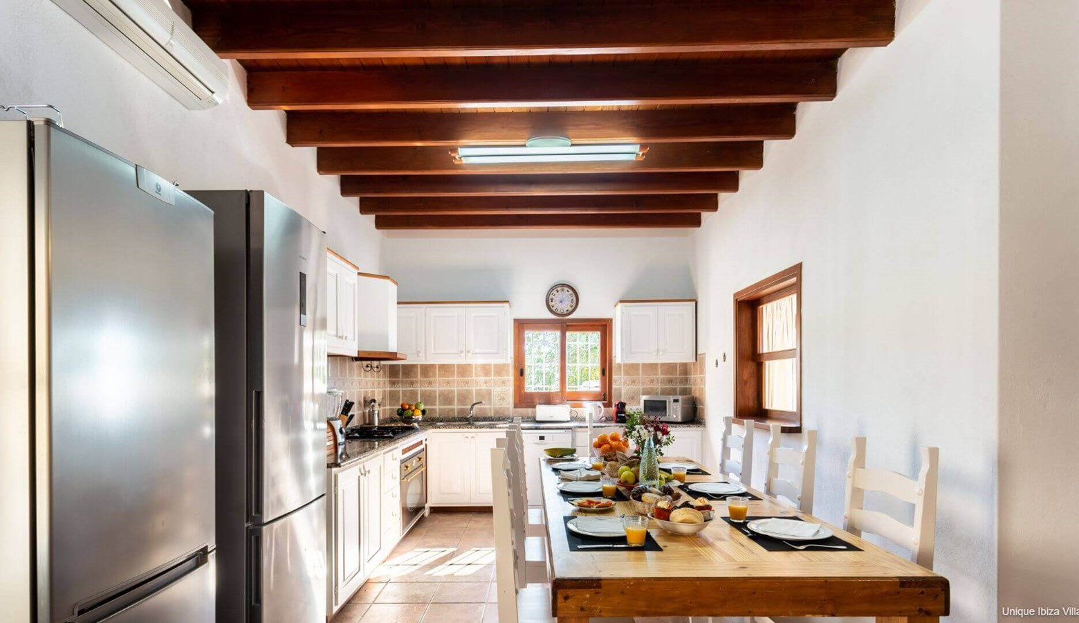 Fully equipped kitchen with high ceilings, air conditioning, 2 fridge freezers and dining table