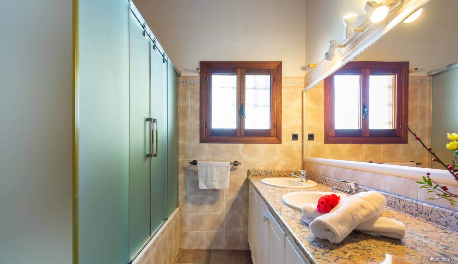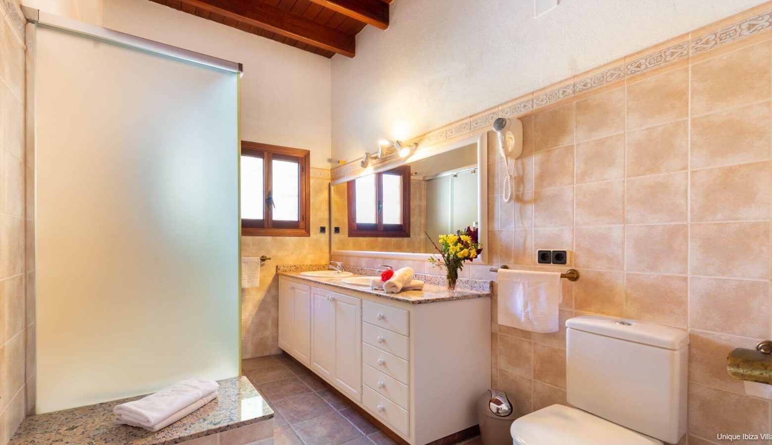 2 bathrooms with shower (plus the shower room next to the pool)