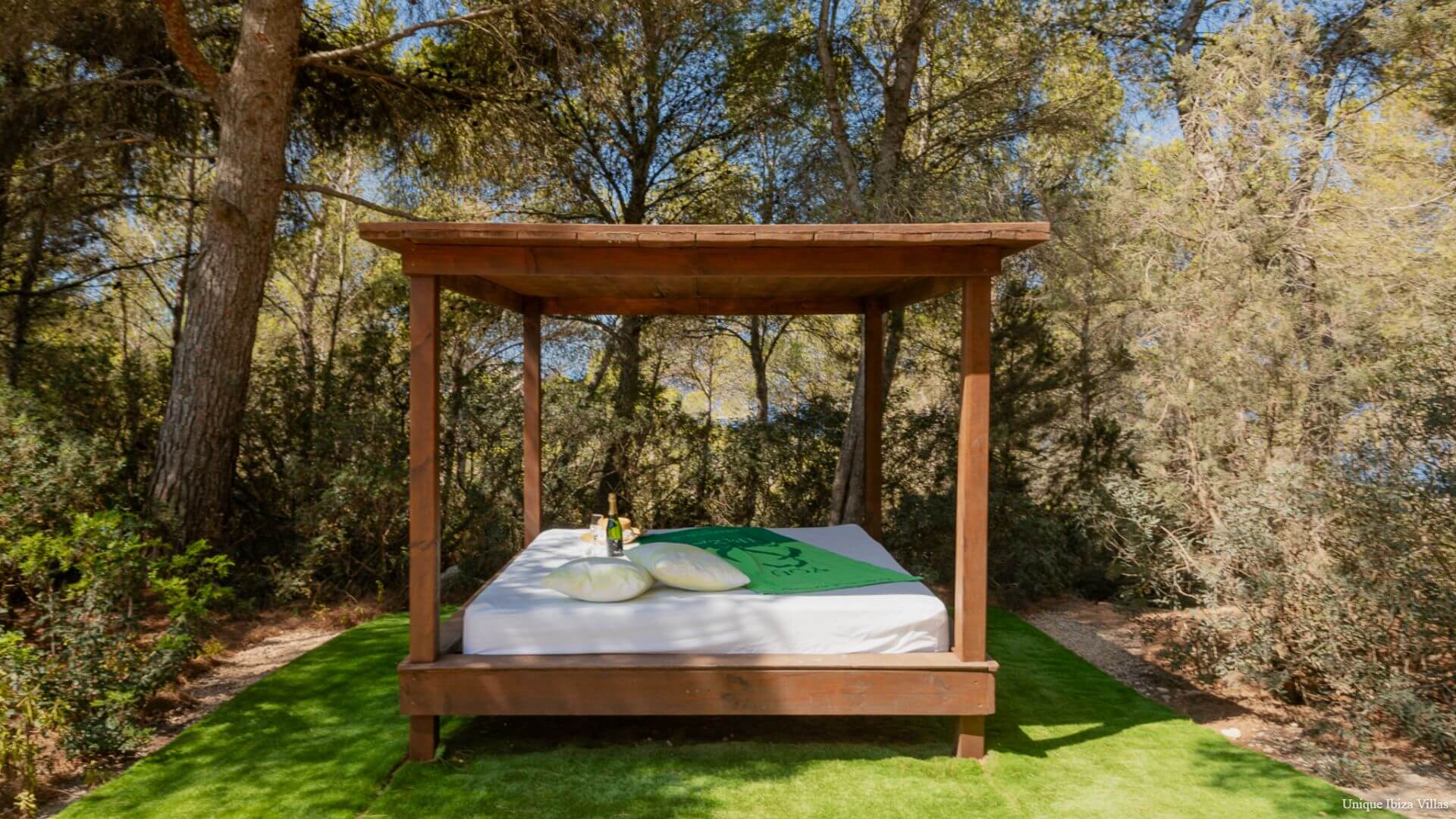 Chill out area in the trees with sea & sunset views as well as views of Es Vedra