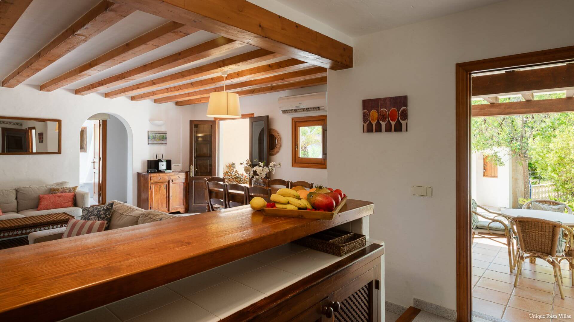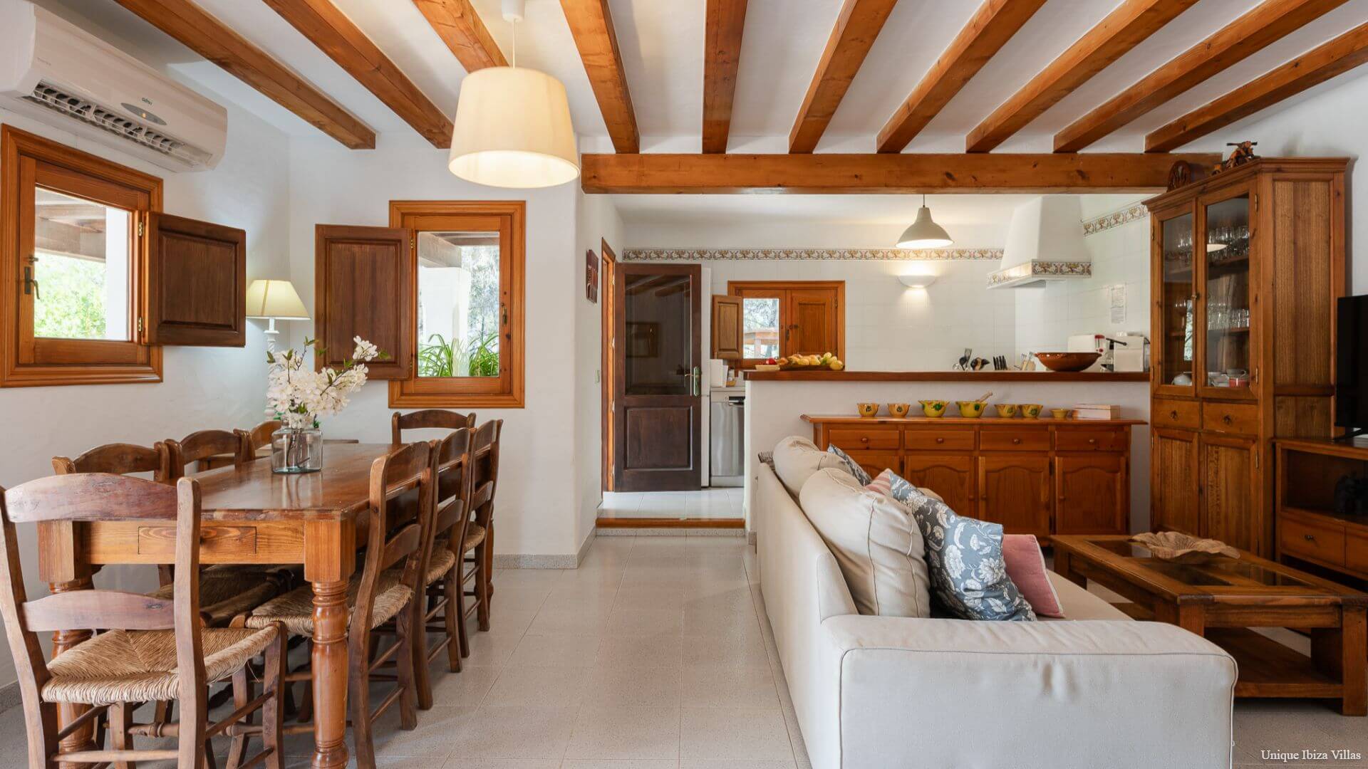 The closest beach is Cala d'Hort, just over 3 kilometres away (3.2 kms), a mostly sandy beach with views to Es Vedra, and where you will find some excellent traditional seafood restaurants including Restaurante El Carmen which is perfect for long lazy lunches over a bottle of wine or 2.