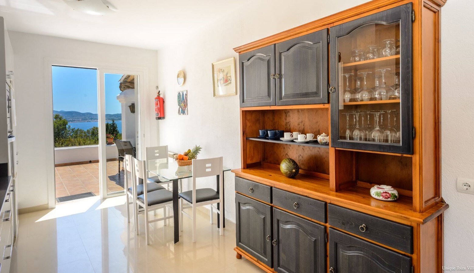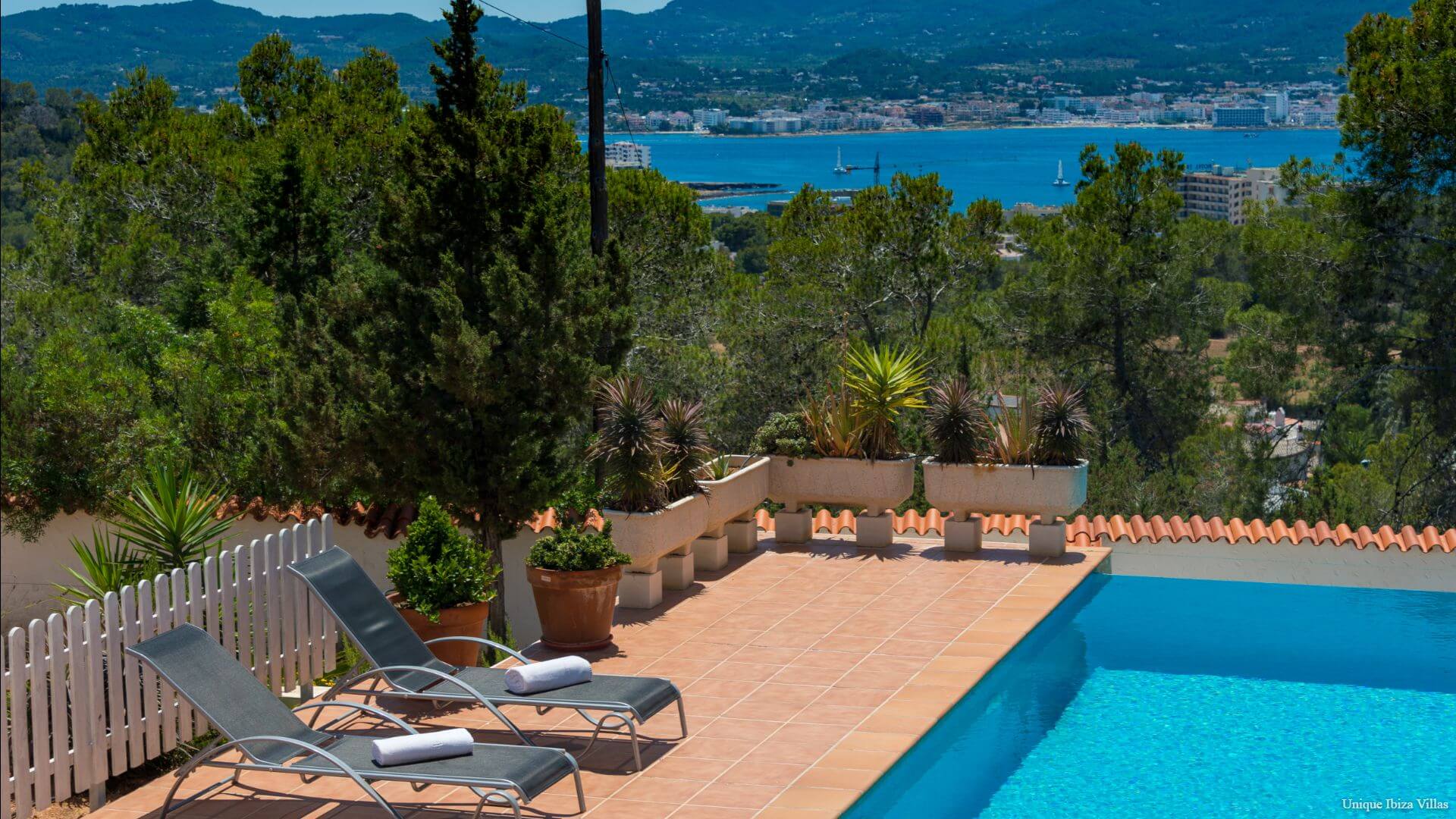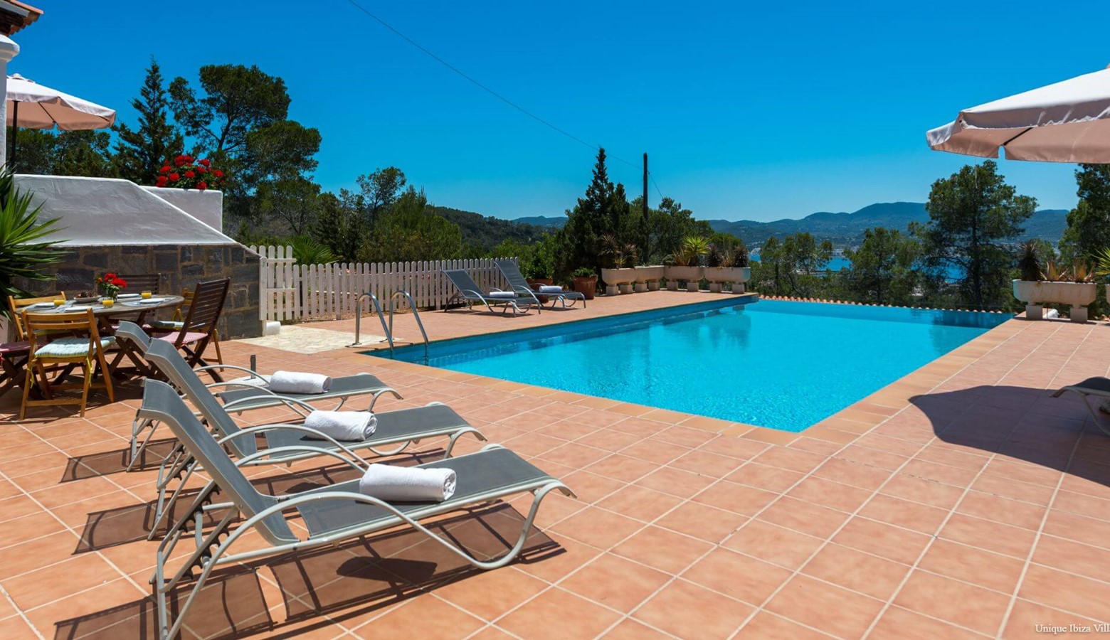 Villa Las Tres Yucas has 4 bedrooms sleeping 8 people and offers wonderful sea & sunset views. Located close to Punta Galera & Cala Gracio on the west coast of Ibiza, a few kilometres from the legendary sunset bars in San Antonio such as Café Mambo and Café del Mar. You have views towards San Antonio from the villa so as the sun goes down and the lights go up you van decide to chill at the villa and enjoy the BBQ or head out to explore the nightlife