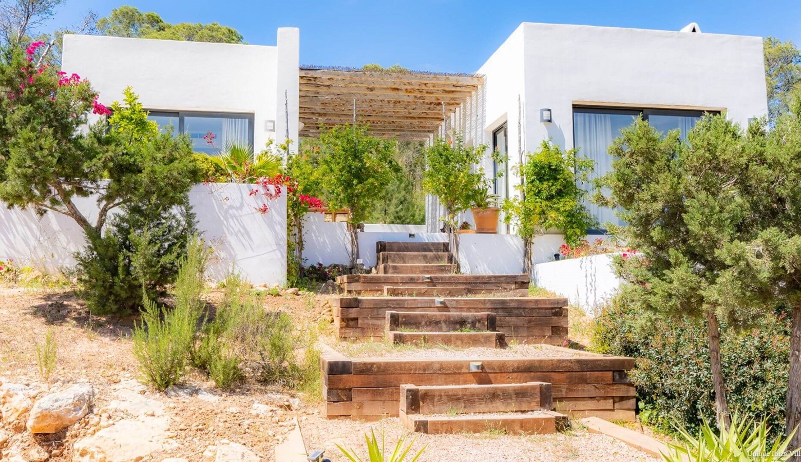 Villa Haisley is a modern villa on the west coast Of Ibiza with 6 bedrooms and 6 en suite bathrooms. Set in a plot of 97,000 m2 and positioned between Cala Tarida and Cala Moli located up in the hills surrounded by pine trees and with views to the highest point in Ibiza; Sa Talaia