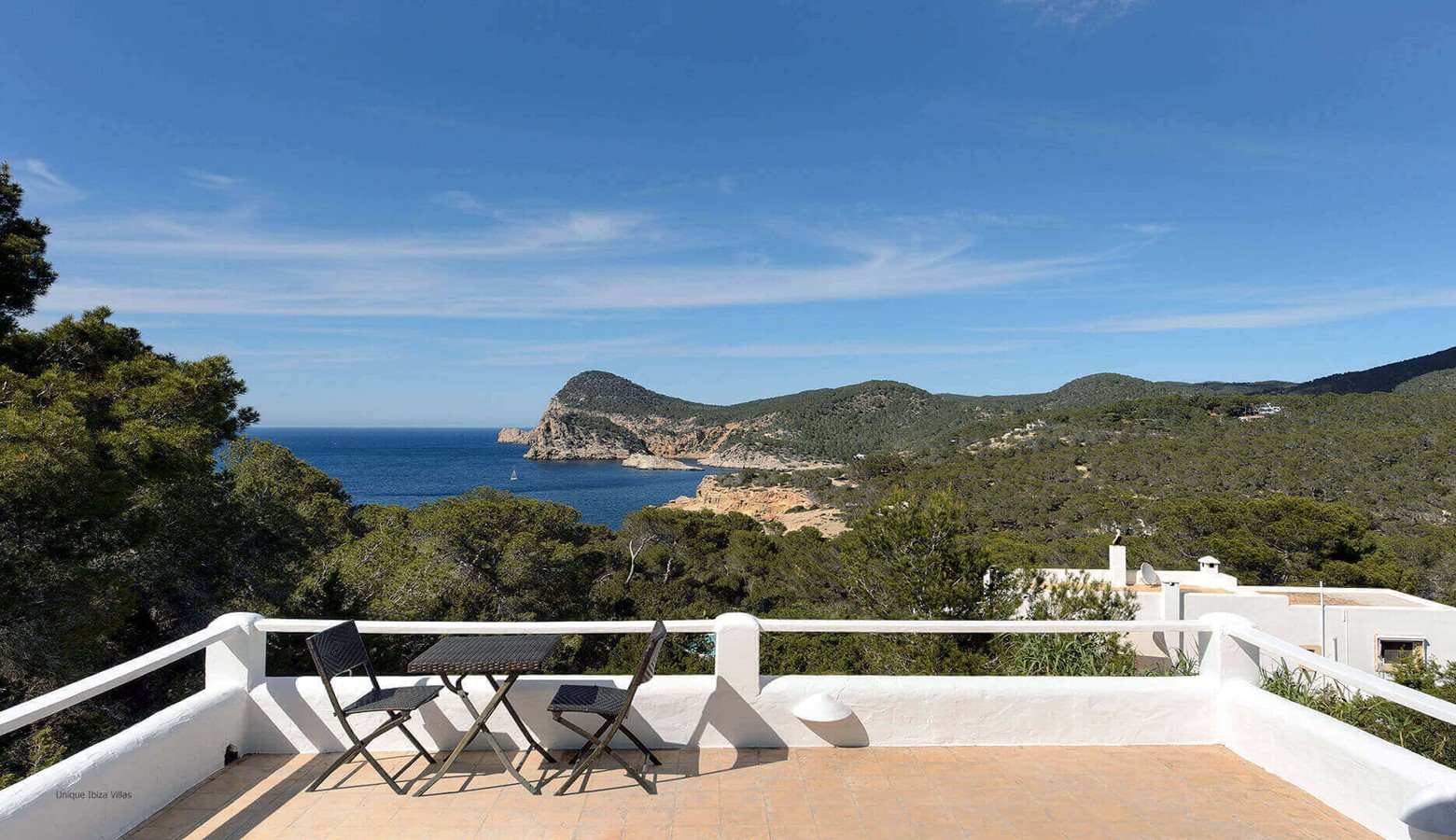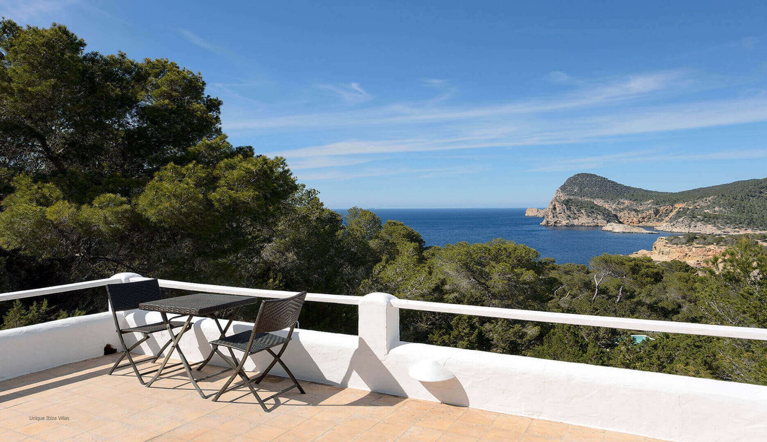 Villa Cala Salada is accessed via a rough road and is a very simple villa. It is one of the lower priced villas we offer and you can expect a house that is totally functional. However the views are simply amazing, so what you lack in facilities inside are more than compensated by the sea views and the sunset views from this villa. There is a BBQ but at certain times of the year when there has been minimal rain BBQ's are not allowed due to propensity of pine trees. This villa can feel a little remote so you will need a hire car, but a simple Fiat Panda will do the tick, you wont need a 4x4 but just take it slow as you go along the bumpy road. The balcony & wall heights are very low so this villa is not suitable for young children, but ideal for couples or families with older children looking for a good value sea view villa in Ibiza.