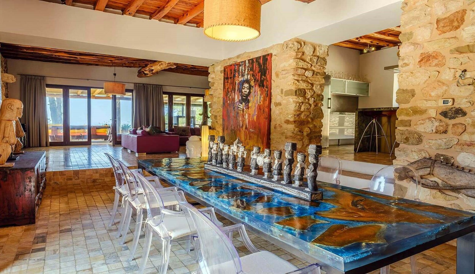 Large open plan living / dining area which leads to one of the outside chill out areas and to the gardens / pool